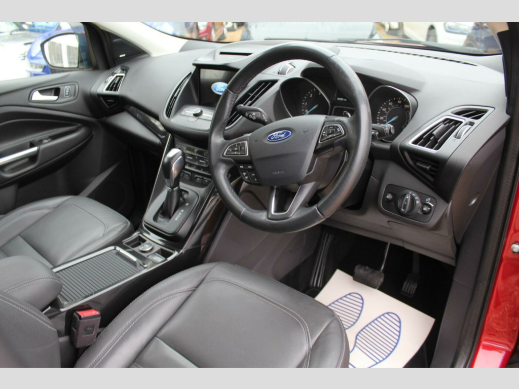This 2018 Ford Kuga TDCi Titanium X offers a compelling blend of capability and comfort, featuring a robust 2.0L Diesel engine and Four Wheel Drive for confident handling in various conditions. As a Euro 6 compliant vehicle, it also boasts low CO2 emissions, making it an environmentally conscious choice. The Titanium X trim level ensures a premium experience, enhanced by desirable features such as rear parking sensors with parking assistance, heated driver and passenger seats for those colder journeys, and keyless entry for effortless access.Further elevating this Kuga is the power opening panoramic roof, allowing you to enjoy an open and airy cabin, complemented by DEATC dual-zone electronic automatic temperature control for personalised comfort for both driver and passenger. These carefully selected features demonstrate how this Ford Kuga is designed to provide a superior driving experience compared to other vehicles in its class, offering both practicality and a touch of luxury for everyday use. ar view camera, salerno leather - charcoal black, 18in alloy wheels - 5 spoke, 6-way manual passenger seat with lumbar adjustment, accessory power socket - 12v, accessory power socket - 12v in luggage compartment, airbags - driver and front passenger, airbags - drivers knee, airbags - drivers and front passenger front side - front and rear curtain, airbags - front side impact, armrest - folding centre - rear, audible text messaging - voice control and usb connectivity, automatic dimming rear view mirror, automatic headlights - rain sensing wipers - auto dimming rear view mirror, bi-xenon headlights with dynamic bending adaptive beam shape, centre console, child locks - manually adjustable rear door locks, courtesy light - footwell illumination, courtesy light - front and rear, cruise control with active speed limiter, deatc - dual-zone electronic automatic temperature control, door lever - chrome finish, epas - electric power assisted steering, esp - electronic stability programme, electric parking brake, electric windows - front and rear with global opening-closing and one touch, flat load floor board, fog lights - front, ford dab navigation system with ford sync3, ford easy-fuel capless refuelling system, front floor mats, front lower grille - self colour, front seats - 4-way front head restraints - up-down, front seats - seat-back map pockets, front upper grille - painted black with chrome bar insert and chrome surround, gear shift indicator, heated driver and passenger seats, hill start assist, ips - intelligent protection system, keyless opening, keyless start, led daytime running lights, leather steering wheel and gear knob, locking wheel nuts, locks - remote central with double locking, mini spare wheel, multi-colour ambient interior lighting, paddle shift, power folding door mirrors with puddle lights, power opening panoramic roof, power tailgate, quickclear heated front windscreen with heated washer jets, rain sensitive windshield wipers, rear floor mats, rear parking sensors, rear seat - 60-40 split folding seat back and cushion with multi-step recline function, sync3 with 8in touchscreen dab audio system, scuff plates - front, seats - drivers 10-way power adjustment, seats - drivers lumbar support, seats - front sports, seats - isofix mounting provision for child seats - outer seats only, seats - passenger lumbar support, steering column - rake and reach adjustment, tailgate wash-wipe, thatcham category 1 alarm, tie-down hooks, tonneau cover, twin exhausts and rear diffuser, tyre pressure monitoring system