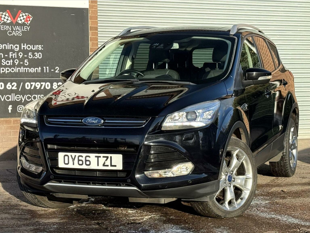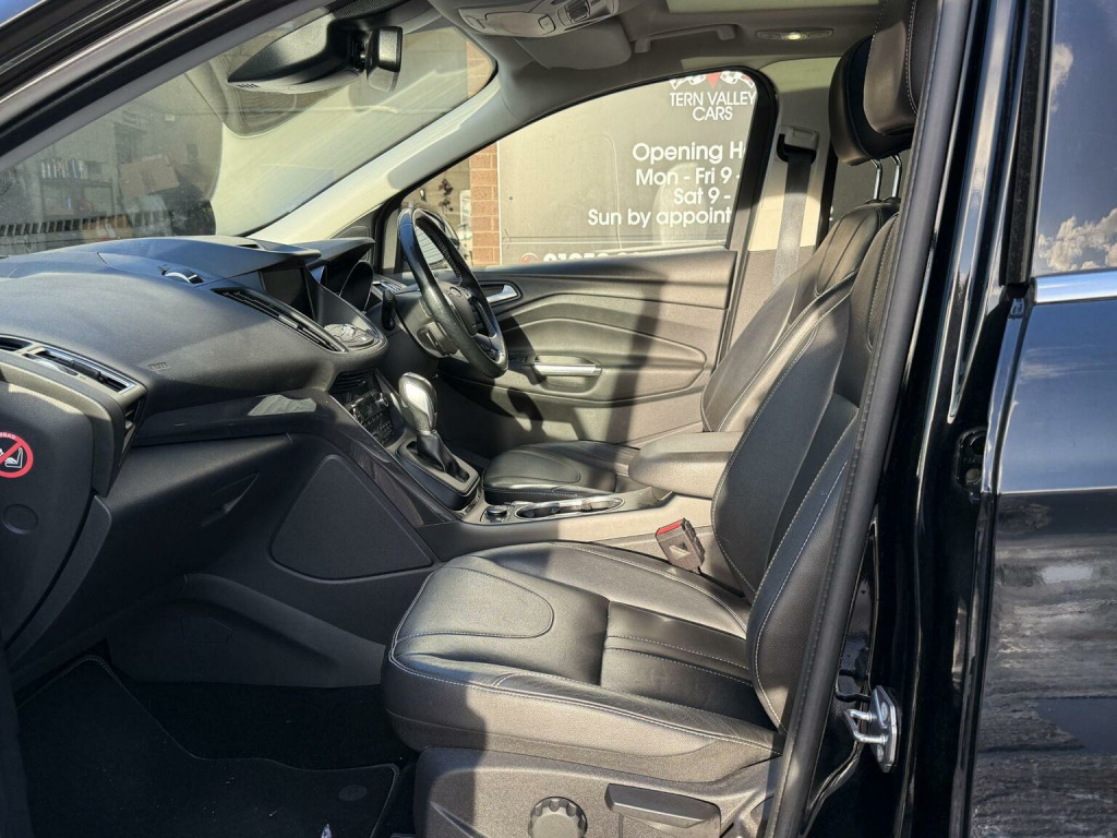 This 2016 Ford Kuga TDCi Titanium X boasts a full service history, with its last full service completed at Ford dealership on 30th May 2025 at 69,722 miles including gearbox oil/filter service, and an MOT valid until September 2026, offering excellent peace of mind. This Four Wheel Drive model is equipped with a 2.0L Diesel engine and meets Euro 6 emission standards. This Titanium X trim level has many factory upgrades, includes the Convenience Pack with front parking assistance, an Appearance Pack, and Active City Stop technology. Inside, youll find dual zone electronic automatic air conditioning for personalised comfort. Large panoramic glass tilt/slide sunroof with interior blind. Top specification and superb to drive. Full black Capretto Leather interior with electric & heated front seats. Ford sync 2 DAB radio satnav system USB & Bluetooth. Upgrade 19Y spoke alloy wheels that make the car really smart. We sell with a 6 month Warrantywise Platinum warranty, 2 x remote keys & all handbooks on this smoker free lovely car. 12 Months AA Breakdown Membership included. AA Driveaway 5 Day Insurance available - Only £44.99 NEED FINANCE? No Problem - SAF Registered. Simply click Apply for finance on our website www.ternvalleycars.co.uk. We are a FCA registered dealership. Prime or subprime finance. Excellent finance rates starting from as low as 10.9% APR (Subject to status and terms and conditions). For any further information and details to view please contact David, who has over 50 years personal Motor Trade experience. Buy with confidence. Delivery to your door is available, please ask for a quote. Just arrived & many more images when valeted. The Ford Kuga TDCi Titanium X offers impressive fuel economy, achieving up to 52 mpg, which is a significant advantage over many similar vehicles. Its low CO2 emissions further contribute to its efficiency. This vehicle also benefits from automatic headlights, ensuring optimal visibility in varying light conditions. A 6 month warranty is included, providing added confidence in your purchase.