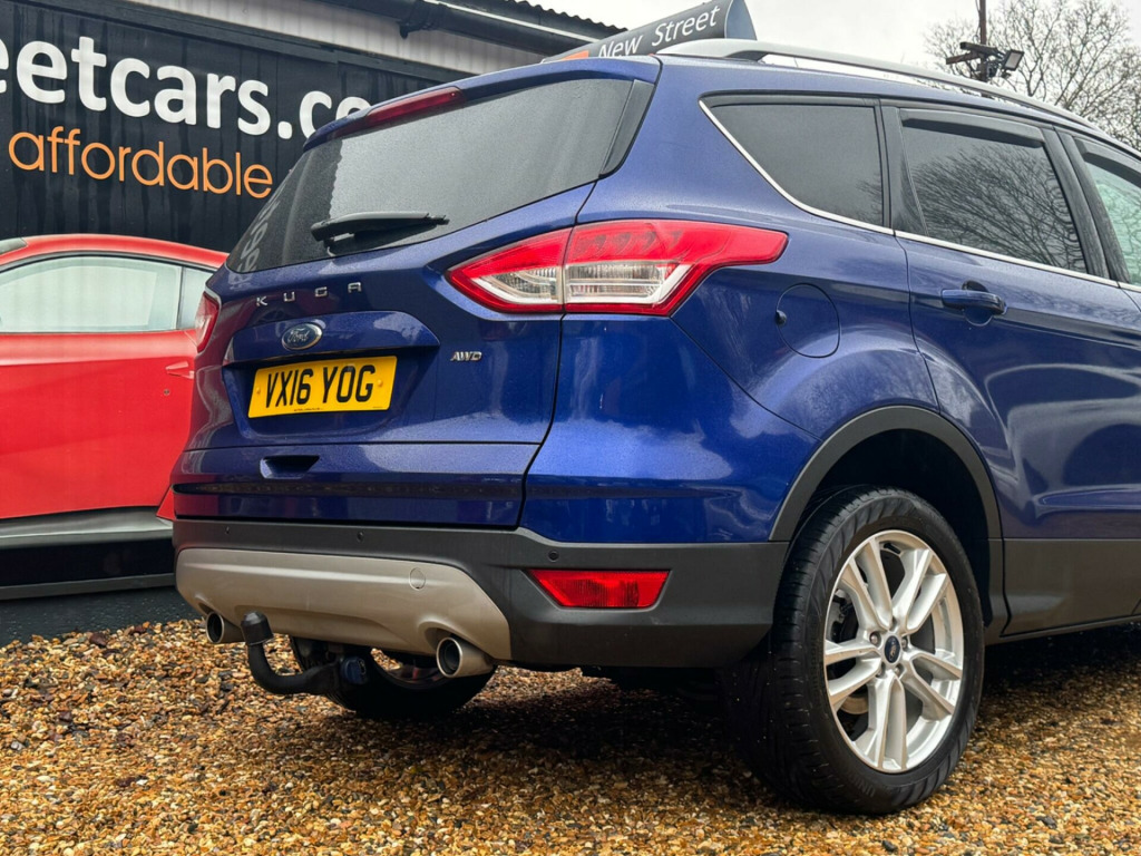 This 2016 Ford Kuga TDCi Titanium X Sport offers excellent peace of mind with a full 12 months MOT provided on purchase. This Four Wheel Drive model is powered by a 2.0L Diesel engine and meets Euro 6 emission standards. It comes equipped with Bi-Xenon headlights that automatically adjust, rear parking sensors, and a rear view camera to assist with manoeuvring. For your convenience, it also features Bluetooth hands-free phone connectivity.Experience impressive fuel economy with this Kuga, achieving a highlight of 54 mpg, which indicates it performs better than many similar vehicles in its class. Its low CO2 emissions further contribute to its efficient performance. This TDCi Titanium X Sport variant combines practicality with a comfortable driving experience, making it a well rounded choice.We are proud to present this Ford Kuga 2.0 TDCi Titanium X Sport AWD Euro 6 (s/s) 5dr that comes with a service history for added peace of mind. we have recently serviced the car . 12 months MOT included, You have the option to purchase RAC warranty with the option to extend.At New Street Car Centre we have over 25 years experience as the largest and most trusted used car dealership in Telford. We offer award winning customer service, great prices and excellent preparation standards. Each vehicle undergoes quality control inspections and a complimentary history check for your added peace of mind.we have also included additional specification but please always check the exact specification details with ourselves prior to purchase as models can vary. 19in Alloy Wheels - 5x2 Spoke, 5in Colour Screen, ABS - Anti-lock Braking System, AUX Connection, Air Conditioning - Dual Zone Electronic Automatic Temperature Control, Airbags - Drivers Knee, Airbags - Front Passenger, Airbags - Front and 2nd Row Curtain, Airbags - Side Impact, Alarm - Thatcham Category 1 with Volume Sensing and Perimeter, Appearance Pack, Armrest - Folding Centre - Rear, Audible Text Messaging, Automatic Dimming Rear View Mirror, Automatic Rain Sensing Wipers, Bi-Xenon Headlights, Bluetooth Hands-free Phone, Body Colour Side Skirts, Bounce-Back Sensors, Convenience Pack, Courtesy Light - Footwell Illumination, Courtesy Light - Front and Rear Reading Lights, Cruise Control with Speed Limiter, Door Handles - Body Colour, Door Lever - Aluminium, Door Mirrors - Puddle Lights, Drivers Airbag, Drivers Seat Lumbar Support, EBA - Emergency Brake Assist, EBD - Electronic Brakeforce Distribution, EPAS - Electric Power Assisted Steering, ESP - Electronic Stability Programme, Electric Windows - Front and Rear with One Touch, Emergency Assistance, Emergency Brake Warning, Floor Mats - Carpet - Front, Ford Easy-Fuel Capless Refuelling System, Ford Power Engine Start-Stop Button, Ford SYNC, Front Fog Lights, Front Fully Adjustable 4 Way Head Restraints, Front Parking Sensors, Front Seat - Passengers Manual Lumbar Support Adjustment, Front Silver Skid Plate, Front upper grille - High-gloss black with chrome bar, Full Body Styling Kit, Gearshift Knob - Leather, HLA - Hill Launch Assist, Headlights - Automatic, Headlights - Courtesy Delay, Headlights - Jet Wash, Headlights - Levelling System - Automatic, Heated Driver and Passenger Seats, Heated Front Windscreen, Heated Washer Jets, High Gloss Black Bumper Detailing, High Gloss Rear Diffuser, IPS - Intelligent Protection System, ISOFIX, LED Daytime Running Lights, Large Stowage Bin, Load Compartment - Tie Down Hooks, Locking Wheel Nuts, Panorama Roof, Park Assist - Active, Parking Sensor - Rear, Portable Audio Device Connector, Power Fold Door Mirrors, Power Tailgate - Button Operated, Privacy Glass, RSC - Roll Stability Control, Rear Lights - LED, Rear Parcel Tray, Rear Seat - Folding Centre Armrest with 2 Integrated Cup Holders and Flip up Storage, Rear Spoiler - Body Colour, Rear View Camera, Remote Central Locking, Scuff Plates - Front-Stainless Steel, Seats - 6 Way Adjustable Passengers, Seats - 60-40 Rear Split Back, Seats - Drivers 10-Way Adjustment, Seats - Front Sports, Silver Roof Rails, Sony CD-Radio Player-MP3 Compatibility, Sony DAB Digital Radio, Sony DAB Navigation System with Rear View Camera, Spare Wheel - Mini Steel, Speakers - x8, Speakers - x9, Steering Column - Rake and Reach Adjustment, Steering Wheel - 4 Spoke Leather Trimmed, Steering Wheel - Multifunction, Storage - Upper Instrument Panel, Stowage Pockets - Front Seatback, TSC - Trailer Stability Programme, TVC - Torque Vectoring Control, Tinted Glass - Green, Traction Control - TC, Twin Exhaust Outlet, Two 12V Power Socket, Tyre Pressure Monitoring System, USB Connection - iPod Connectivity, Variable Dimming of Instrument Cluster and Radio Screen Display, Visual AWD Monitor, Voice Control - Audio.