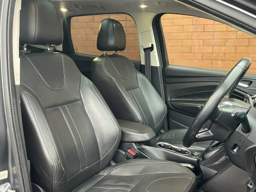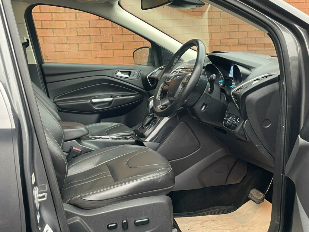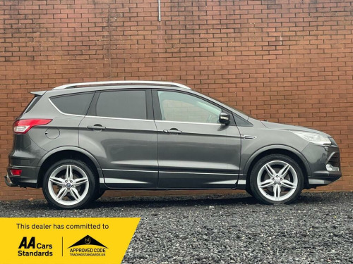 Boasting exceptionally low mileage for its age, this 2015 Ford Kuga TDCi Titanium X Sport presents a compelling proposition. This Four Wheel Drive model, powered by a 2.0L Diesel engine, meets Euro 6 emissions standards and has a clear vehicle history check. It comes equipped with a detachable towbar, keyless entry with a hands free power tailgate, and the desirable Family Pack and Driver Assistance Pack. Inside, you will find dual zone electronic automatic temperature control for comfortable journeys.The Kuga Titanium X Sport offers a fuel economy of 52 mpg, a highlight that demonstrates its efficiency compared to other vehicles in its class. With only 81840 miles on the clock, this Kuga has been driven less than average for its registration year, suggesting it has been well cared for and offers considerable life ahead. The combination of its robust specification and thoughtful features makes this Ford Kuga a practical and well appointed choice., iver assistance pack, keyless opening with hands free power tailgate, towbar - detachable, family pack, 19in alloy wheels - 5x2 spoke, 5in colour screen, abs - anti-lock braking system, aux connection, air conditioning - dual zone electronic automatic temperature control, airbags - drivers knee, airbags - front passenger, airbags - front and 2nd row curtain, airbags - side impact, alarm - thatcham category 1 with volume sensing and perimeter, appearance pack, armrest - folding centre - rear, audible text messaging, automatic dimming rear view mirror, automatic rain sensing wipers, bi-xenon headlights, bluetooth hands-free phone, body colour side skirts, bounce-back sensors, convenience pack, courtesy light - footwell illumination, courtesy light - front and rear reading lights, cruise control with speed limiter, door handles - body colour, door lever - aluminium, door mirrors - puddle lights, drivers airbag, drivers seat lumbar support, eba - emergency brake assist, ebd - electronic brakeforce distribution, epas - electric power assisted steering, esp - electronic stability programme, electric windows - front and rear with one touch, emergency assistance, emergency brake warning, floor mats - carpet - front, ford easy-fuel capless refuelling system, ford power engine start-stop button, ford sync, front fog lights, front fully adjustable 4 way head restraints, front parking sensors, front seat - passengers manual lumbar support adjustment, front silver skid plate, front upper grille - high-gloss black with chrome bar, full body styling kit, gearshift knob - leather, hla - hill launch assist, headlights - automatic, headlights - courtesy delay, headlights - jet wash, headlights - levelling system - automatic, heated driver and passenger seats, heated front windscreen, heated washer jets, high gloss black bumper detailing, high gloss rear diffuser, ips - intelligent protection system, isofix, led daytime running lights, large stowage bin, load compartment - tie down hooks, locking wheel nuts, panorama roof, park assist - active, parking sensor - rear, portable audio device connector, power fold door mirrors, power tailgate - button operated, privacy glass, rsc - roll stability control, rear lights - led, rear parcel tray, rear seat - folding centre armrest with 2 integrated cup holders and flip up storage, rear spoiler - body colour, rear view camera, remote central locking, scuff plates - front-stainless steel, seats - 6 way adjustable passengers, seats - 60-40 rear split back, seats - drivers 10-way adjustment, seats - front sports, silver roof rails, sony cd-radio player-mp3 compatibility, sony dab digital radio, sony dab navigation system with rear view camera, spare wheel - mini steel, speakers - x8, speakers - x9, steering column - rake and reach adjustment, steering wheel - 4 spoke leather trimmed, steering wheel - multifunction, storage - upper instrument panel, stowage pockets - front seatback, tsc - trailer stability programme, tvc - torque vectoring control, tinted glass - green, traction control - tc, twin exhaust outlet, two 12v power socket, tyre pressure monitoring system, usb connection - ipod connectivity, variable dimming of instrument cluster and radio screen display, visual awd monitor, voice control - audio