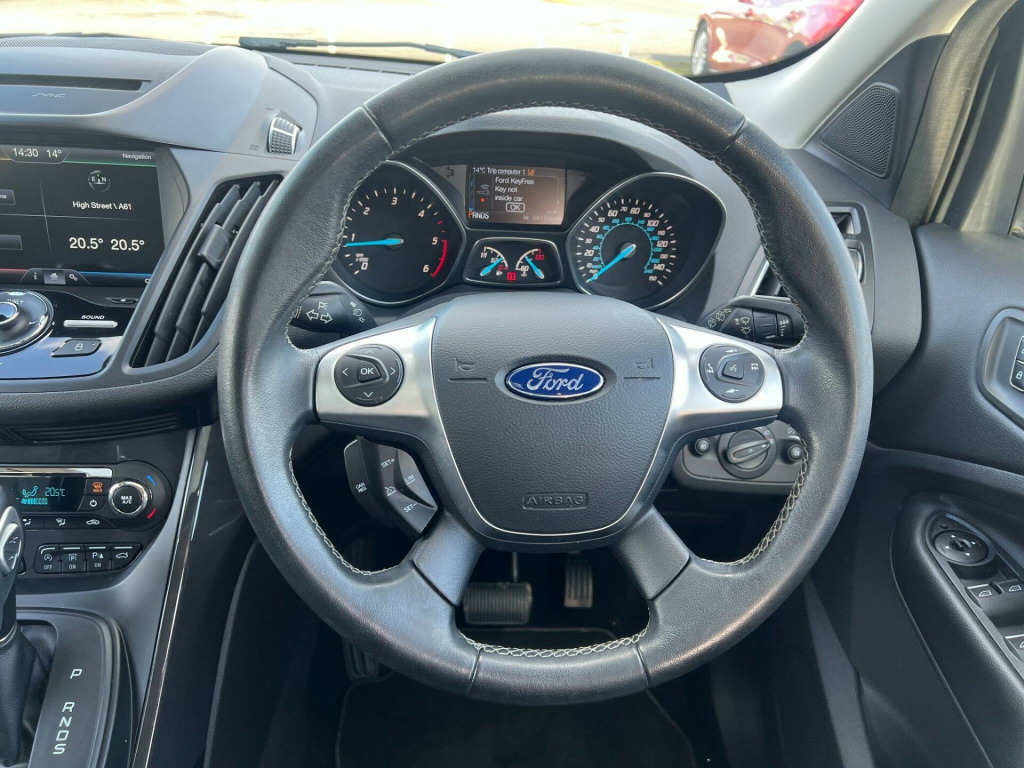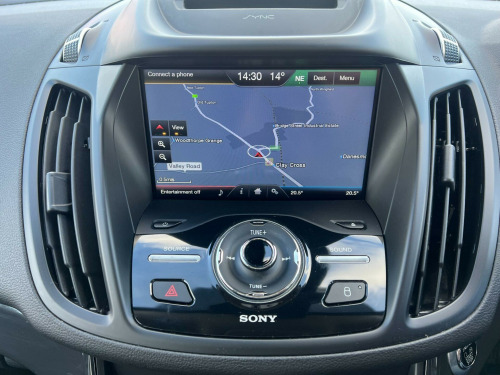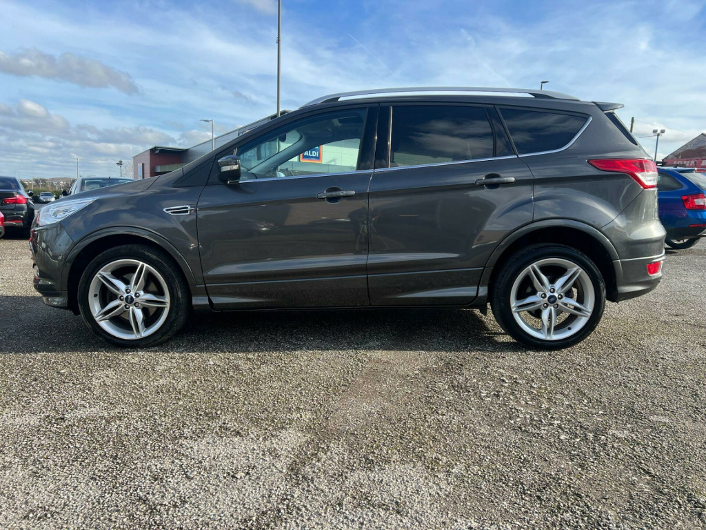 This 2016 Ford Kuga TDCi Titanium X Sport boasts a full service history, ensuring its excellent provenance. This Four Wheel Drive model features a 2.0L Diesel Engine and meets Euro 6 emissions standards. Inside, you'll find luxurious Capretto Leather in Ebony, a Panorama Roof with a panoramic sunroof, and a Sony DAB Navigation System complete with a rear view camera and parking assistance. The Driver Assistance Pack and automatic headlights further enhance the driving experience, all from only two previous owners.The Kuga TDCi Titanium X Sport offers impressive fuel economy, achieving a highlight of 52 mpg, which indicates it is more economical than many similar vehicles. Its low CO2 emissions also contribute to its appeal. This well maintained and feature rich Ford Kuga is a compelling choice for those seeking a capable and comfortable SUV.. 19in Alloy Wheels - 5x2 Spoke, 5in Colour Screen, ABS - Anti-lock Braking System, AUX Connection, Air Conditioning - Dual Zone Electronic Automatic Temperature Control, Airbags - Drivers Knee, Airbags - Front Passenger, Airbags - Front and 2nd Row Curtain, Airbags - Side Impact, Alarm - Thatcham Category 1 with Volume Sensing and Perimeter, Appearance Pack, Armrest - Folding Centre - Rear, Audible Text Messaging, Automatic Dimming Rear View Mirror, Automatic Rain Sensing Wipers, Bi-Xenon Headlights, Bluetooth Hands-free Phone, Body Colour Side Skirts, Bounce-Back Sensors, Convenience Pack, Courtesy Light - Footwell Illumination, Courtesy Light - Front and Rear Reading Lights, Cruise Control with Speed Limiter, Door Handles - Body Colour, Door Lever - Aluminium, Door Mirrors - Puddle Lights, Drivers Airbag, Drivers Seat Lumbar Support, EBA - Emergency Brake Assist, EBD - Electronic Brakeforce Distribution, EPAS - Electric Power Assisted Steering, ESP - Electronic Stability Programme, Electric Windows - Front and Rear with One Touch, Emergency Assistance, Emergency Brake Warning, Floor Mats - Carpet - Front, Ford Easy-Fuel Capless Refuelling System, Ford Power Engine Start-Stop Button, Ford SYNC, Front Fog Lights, Front Fully Adjustable 4 Way Head Restraints, Front Parking Sensors, Front Seat - Passengers Manual Lumbar Support Adjustment, Front Silver Skid Plate, Front upper grille - High-gloss black with chrome bar, Full Body Styling Kit, Gearshift Knob - Leather, HLA - Hill Launch Assist, Headlights - Automatic, Headlights - Courtesy Delay, Headlights - Jet Wash, Headlights - Levelling System - Automatic, Heated Driver and Passenger Seats, Heated Front Windscreen, Heated Washer Jets, High Gloss Black Bumper Detailing, High Gloss Rear Diffuser, IPS - Intelligent Protection System, ISOFIX, LED Daytime Running Lights, Large Stowage Bin, Load Compartment - Tie Down Hooks, Locking Wheel Nuts, Panorama Roof, Park Assist - Active, Parking Sensor - Rear, Portable Audio Device Connector, Power Fold Door Mirrors, Power Tailgate - Button Operated, Privacy Glass, RSC - Roll Stability Control, Rear Lights - LED, Rear Parcel Tray, Rear Seat - Folding Centre Armrest with 2 Integrated Cup Holders and Flip up Storage, Rear Spoiler - Body Colour, Rear View Camera, Remote Central Locking, Scuff Plates - Front-Stainless Steel, Seats - 6 Way Adjustable Passengers, Seats - 60-40 Rear Split Back, Seats - Drivers 10-Way Adjustment, Seats - Front Sports, Silver Roof Rails, Sony CD-Radio Player-MP3 Compatibility, Sony DAB Digital Radio, Sony DAB Navigation System with Rear View Camera, Spare Wheel - Mini Steel, Speakers - x8, Speakers - x9, Steering Column - Rake and Reach Adjustment, Steering Wheel - 4 Spoke Leather Trimmed, Steering Wheel - Multifunction, Storage - Upper Instrument Panel, Stowage Pockets - Front Seatback, TSC - Trailer Stability Programme, TVC - Torque Vectoring Control, Tinted Glass - Green, Traction Control - TC, Twin Exhaust Outlet, Two 12V Power Socket, Tyre Pressure Monitoring System, USB Connection - iPod Connectivity, Variable Dimming of Instrument Cluster and Radio Screen Display, Visual AWD Monitor, Voice Control - Audio, Driver Assistance Pack, Capretto Leather - Ebony. Full service history