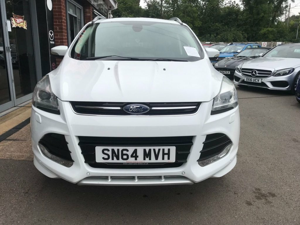 …..A Lovely, well maintained example of the spacious and economical KUGA 2.0 TDCi Titanium X Sport SUV 5dr Diesel Manual AWD Euro 6 (s/s) (180 ps) 6 SPEED MANUAL in a lovely shade of white finished off with 17' alloys. The vehicles cockpit area has been well maintained, the vehicle has stylishly full leather seating and the excellent specification includes CD/AUX/USB/DAB stereo system with Bluetooth connectivity, satnav, dual digital climate control, cruise control, remote central locking, 4 x electric windows, auto lights, Isofix, heated front and rear screens, multi function steering wheel, front and rear parking sensors, electric sunroof, heated seats, reverse camera, media connectivity, panoramic roof, air bags, to name just a few. This HPI clear vehicle with only 1 former owner will include a fresh 12 month MOT, has a service history, and she looks and drives superbly ANY TEST OR TRIAL WELCOME...…LOW RATE FINANCE AVAILABLE WITH £0 DEPOSIT.....TOP WARRANTY PACKAGES AVAILABLE......£0 ADMIN FEE CHARGED ON ALL IN HOUSE FINANCE DEALS!!! 19in Alloy Wheels - 5x2 Spoke, 5in Colour Screen, ABS - Anti-lock Braking System, Air Conditioning - Dual Zone Electronic , Airbags - Drivers Knee, Airbags - Front and 2nd Row Curtain, Airbags - Front Passenger, Airbags - Side Impact, Alarm - Thatcham Category 1 with Volume , Appearance Pack, Armrest - Folding Centre - Rear, Audible Text Messaging, Automatic Dimming Rear View Mirror, Automatic Rain Sensing Wipers, AUX Connection, Bi-Xenon Headlights, Bluetooth Hands-free Phone, Body Colour Side Skirts, Bounce-Back Sensors, Convenience Pack, Courtesy Light - Footwell Illumination, Courtesy Light - Front and Rear Reading , Cruise Control with Speed Limiter, Door Handles - Body Colour, Door Lev