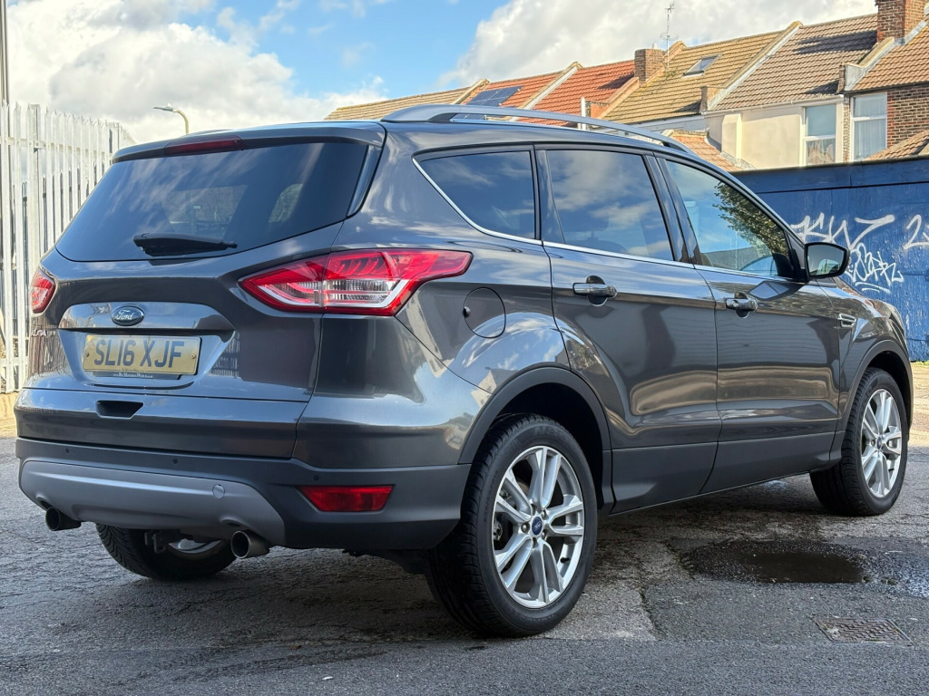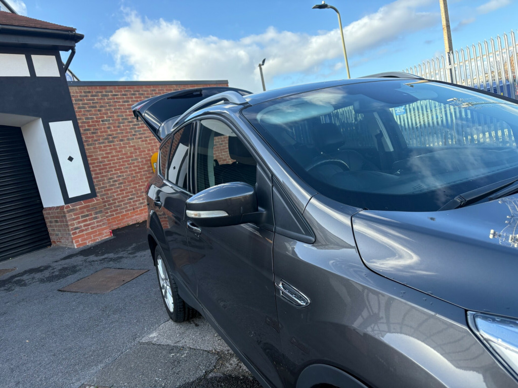 This 2016 Ford Kuga 2.0 TDCi Titanium X Sport SUV with 59960 miles on the clock is a reliable and powerful diesel vehicle that is ULEZ compliant, making it ideal for city driving. With MOT expiring on 07/09/2026, this 5-door SUV boasts a spacious interior with 5 seats, making it perfect for family outings or long drives. The manual AWD Euro 6 (s/s) engine delivers 180 ps, ensuring a smooth and efficient ride. The car also features 19-inch alloy wheels, appearance pack, body-coloured exterior mirrors, side skirts, and front skirts, adding a touch of style to its practicality. Whether you're navigating urban streets or heading off-road, this Ford Kuga is a versatile and capable vehicle that is sure to impress. in alloy wheels - 5x2 spoke, appearance pack, body colour exterior mirrors, body colour side skirts, body coloured front skirts, door handles - body colour, door mirrors - puddle lights, door mirrors with integrated indicators, electric windows - front and rear with one touch, front lower grille - black, front and rear body colour wheel arches, front upper grille - high-gloss black with chrome bar, full body styling kit, heated front windscreen, heated washer jets, high gloss black bumper detailing, high gloss black rear mesh, high gloss silver lower centre rear diffuser, large rear spoiler, locking wheel nuts, panorama roof, power fold door mirrors, privacy glass, rear side skirts and door cladding, silver roof rails, spare wheel - mini steel, twin exhaust outlet, 8in high resolution touchscreen, aux connection, audible text messaging, bluetooth hands-free phone, cd player, emergency assistance, ford sync2, mp3 compatibility, navigation - 3d building rendering and michellin guide, premium ford sync2 dab navigation system, sony dab digital radio, speakers - x9 sony premium, subwoofer, two 12v power socket, usb connection - ipod connectivity, abs - anti-lock braking system, airbags - drivers knee, airbags - front passenger, airbags - front and 2nd row curtain, airbags - side impact, alarm - thatcham category 1 with volume sensing and perimeter, drivers airbag, eba - emergency brake assist, ebd - electronic brakeforce distribution, esp - electronic stability programme, emergency brake warning, ford easy-fuel capless refuelling system, front silver skid plate, hla - hill launch assist, ips - intelligent protection system, isofix, rsc - roll stability control, remote central locking, tsc - trailer stability programme, tvc - torque vectoring control, traction control - tc, air conditioning - dual zone electronic automatic temperature control, armrest - folding centre - rear, automatic dimming rear view mirror, automatic rain sensing wipers, centre console - bottle-can holder, centre console - stowage tray, convenience pack, courtesy light - footwell illumination, drivers seat lumbar support, floor mats - front and rear - velour, ford power engine start-stop button, front fully adjustable 4 way head restraints, front seat - passengers manual lumbar support adjustment, gearshift knob - leather, heated driver and passenger seats, interior door lever - chrome finish, load compartment - tie down hooks, multi-colour ambient led lighting, pollen filter, power tailgate - button operated, rear parcel tray, remote boot release, scuff plates - front-stainless steel, seats - 6 way adjustable passengers, seats - 60-40 rear split back, seats - drivers 10-way adjustment, seats - drivers manual height and fore-aft adjustment, seats - front sports, steering column - rake and reach adjustment, steering wheel - 4 spoke leather trimmed, steering wheel - multifunction, steering wheel - silver accents and grey stitching, stowage pockets - front seatback, tonneau cover, tray tables - 2nd row, variable dimming of instrument cluster and radio screen display, bi-xenon headlights, front fog lights, headlights - automatic, headlights - jet wash, headlights - levelling system - automatic, led daytime running lights, rear lights - led, cruise control with speed limiter, epas - electric power assisted steering, front parking sensors, gear shift indicator, park assist - active, parking sensor - rear, rear view camera, tyre pressure monitoring system, voice control - audio, voice control - climate control, voice control - emergency assistance, voice control - navigation