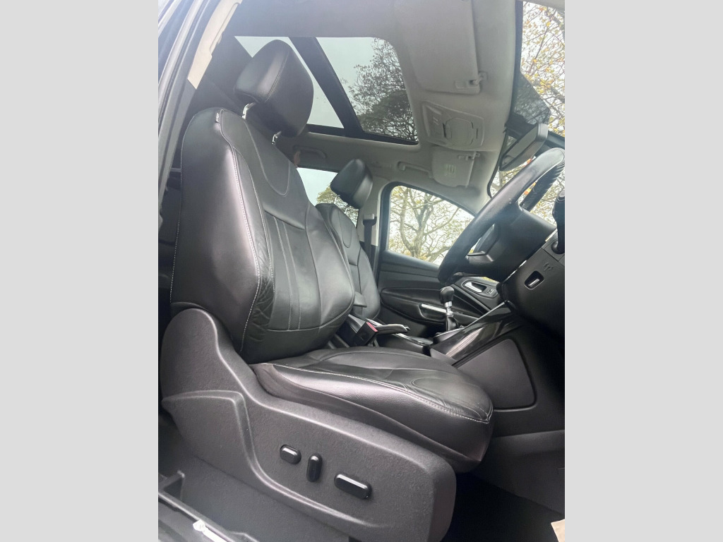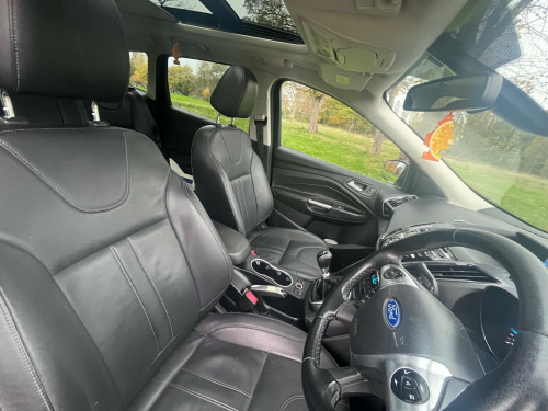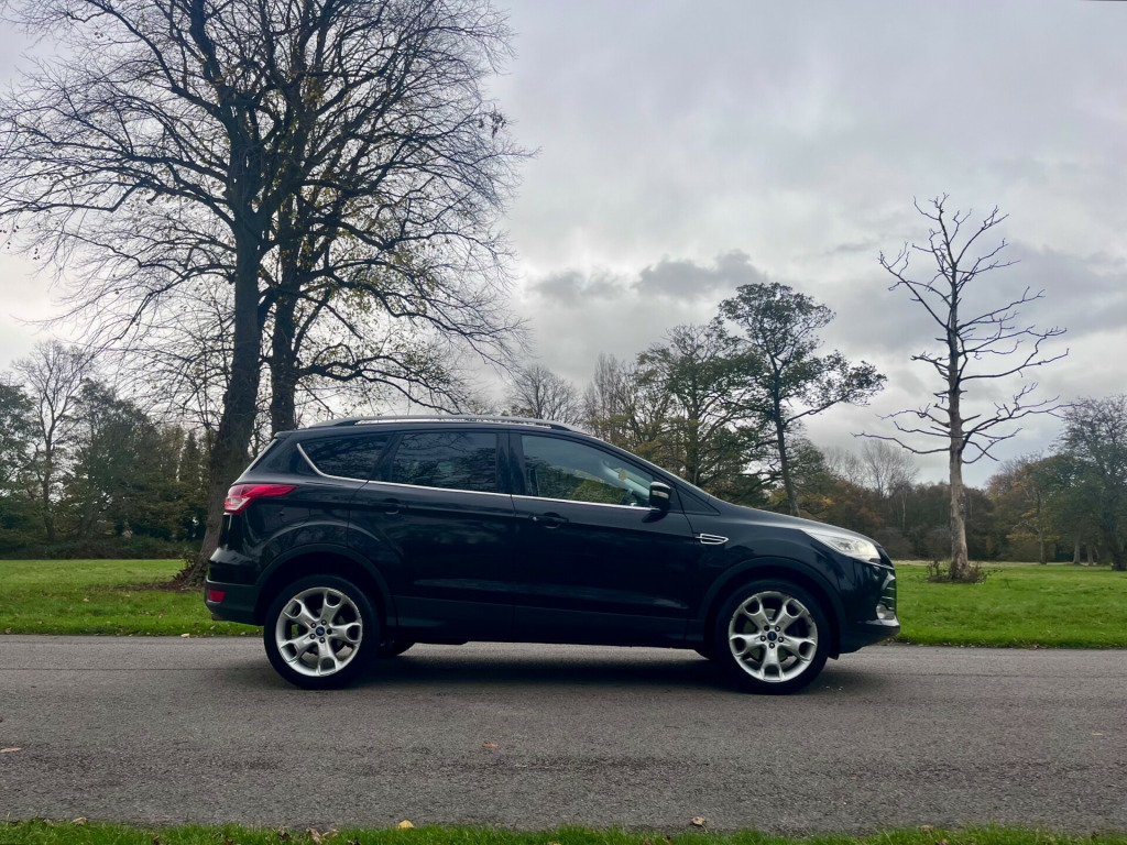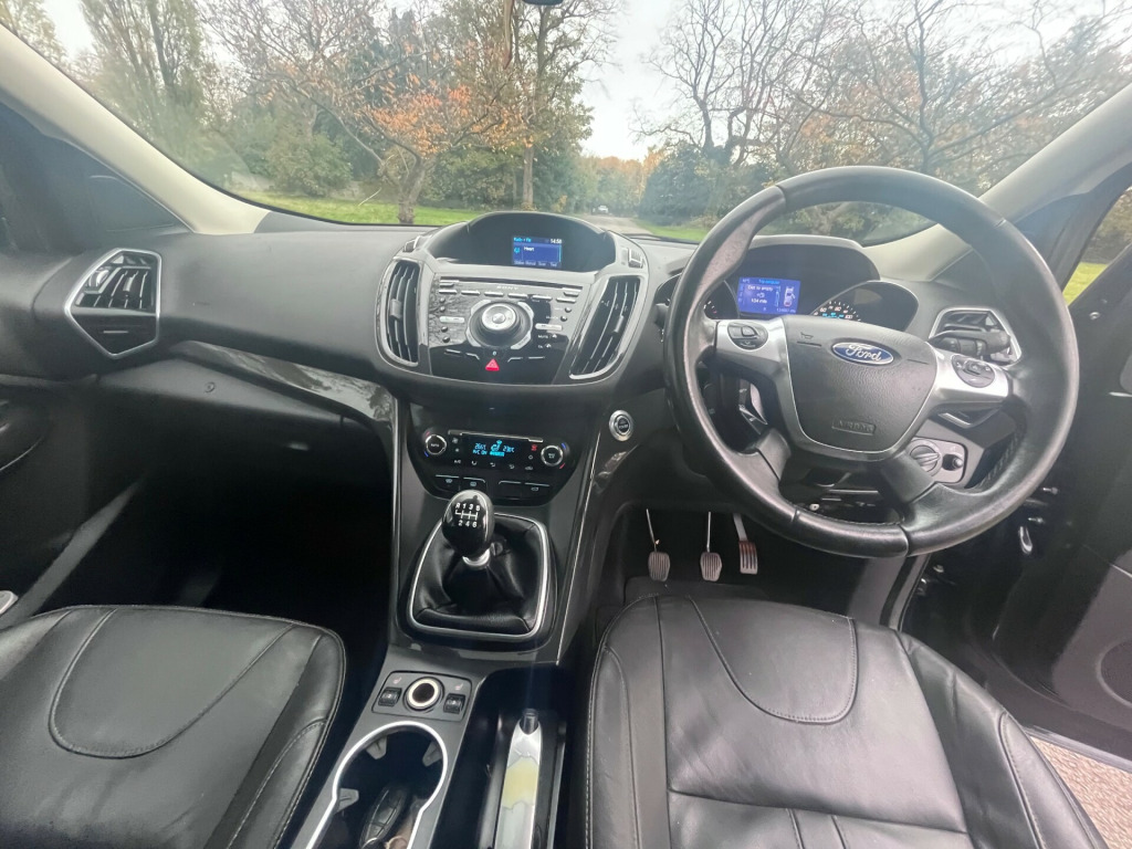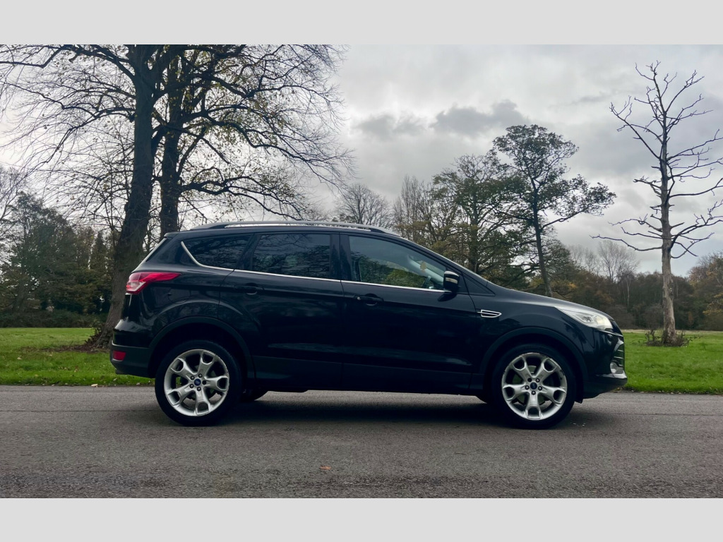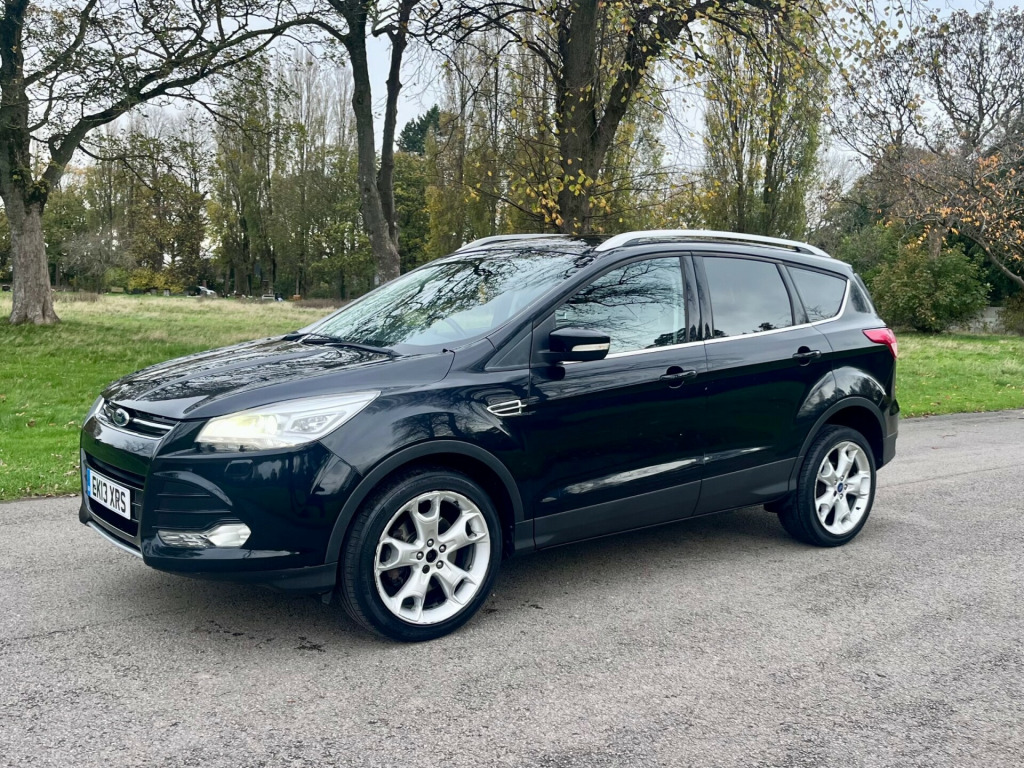 TITANIUM X !!! TOP SPEC!!!METALLIC PANTHER BLACK!FULL BLACK LEATHER!PANORAMIC ROOF!18'' ALLOYSBLUETOOTHSONY RADIO/DABPARKING SENSORSCRUISE CONTROLThis 2013 Ford Kuga 2.0 TDCi Titanium X SUV with 124000 miles on the clock is a reliable and efficient Diesel vehicle, with MOT expiration on 03/01/2026. This spacious SUV comes with 5 seats and 5 doors, making it perfect for families or anyone in need of extra space. The car boasts premium features including a glass panoramic roof, Capretto Premium Leather in Charcoal Black, Adaptive Cruise Control, Parking Sensor at the rear, and an Appearance Pack. With its Euro 5 engine producing 140 PS, this manual 2WD vehicle offers a smooth and comfortable ride, making it an excellent choice for those seeking a high-quality, well-equipped SUV., in alloy wheels, body colour exterior mirrors, door handles - body colour, door lever - aluminium, door mirrors - electrically operated and heated, door mirrors - puddle lights, door mirrors with integrated indicators, electric windows - front and rear with one touch, front lower grille - moondust silver colour surround, front upper grille - high-gloss black with chrome bar, heated front windscreen, heated washer jets, locking wheel nuts, panorama roof, rear spoiler - body colour, scuff plates - front moondust silver colour, spare wheel - mini steel, tinted glass - green, twin exhaust outlet, abs - anti-lock braking system, airbags - drivers knee, airbags - front passenger, airbags - front and 2nd row curtain, airbags - side impact, alarm - thatcham category 1 with volume sensing and perimeter, bounce-back sensors, drivers airbag, eba - emergency brake assist, ebd - electronic brakeforce distribution, esp - electronic stability programme, emergency brake warning, ford easy-fuel capless refuelling system, hla - hill launch assist, ips - intelligent protection system, isofix, rsc - roll stability control, remote central locking, tsc - trailer stability programme, tvc - torque vectoring control, traction control - tc, air conditioning - dual zone electronic automatic temperature control, automatic dimming rear view mirror, automatic rain sensing wipers, centre console - sliding armrest, courtesy light - footwell illumination, courtesy light - front and rear reading lights, courtesy light - led overhead with theatre style dimming ambient lighting, drivers seat lumbar support, floor mats - carpet - front, ford power engine start-stop button, front seat - passengers manual fore-aft adjustment, front seat - passengers manual lumbar support adjustment, gearshift knob - leather, heated driver and passenger seats, large stowage bin, rear seat - folding centre armrest with 2 integrated cup holders and flip up storage, seats - 60-40 rear split back, seats - drivers manual height and fore-aft adjustment, seats - front sports, steering column - rake and reach adjustment, steering wheel - 4 spoke leather trimmed, steering wheel - multifunction, storage - upper instrument panel, stowage pockets - front seatback, variable dimming of instrument cluster and radio screen display, bi-xenon headlights, front fog lights, headlights - automatic, headlights - courtesy delay, headlights - jet wash, headlights - levelling system - automatic, led daytime running lights, rear lights - led, bluetooth handsfree and voice control, centre console - additional 12v power socket, emergency assistance, ford sync, mp3 compatibility, portable audio device connector, sony dab digital radio, sony radio cd with 8 speakers - mp3 compatible, speakers - x8, tft display screen, cruise control with speed limiter, dds - deflation detection system, epas - electric power assisted steering, front suspension - independent with macpherson struts, rear suspension - independent control blade multi-link system and anti-roll bar, variable sensitivity adjustment