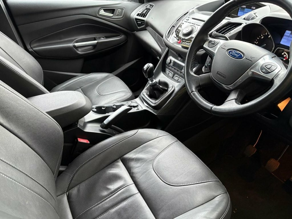 Ford Kuga TDCI Titanium X in metallic grey, has service history with 7 services. Comes with 18" alloy wheels, air conditioning, electric windows in the front and rear, electric mirrors, keyless start, rear parking sensors, cruise control, full leather trim with heated electric seats, glass panoramic roof with electric blind, a heated front screen, auto lights, its a 6 speed, has bluetooth, voice command, a dab radio cd, aux port, usb, multifunction steering wheel with 2 remote keys. THE CAR WILL HAVE A SERVICE AND 12 MONTHS MOT / PART EXCHANGE IS ALWAYS WELCOME / FREE 12 MONTH AA ROADSIDE RECOVERY INCLUDED / FINANCE IS AVAILABLE VIA OUR WEBSITE LINK / THE CAR HAS BEEN HPI AND MILEAGE CHECKED, ALL OK / WE ARE A FAMILY RUN BUSINESS AND HAVE BEEN TRADING FOR OVER 30 YEARS, WE OFFER DELIVERY IN MAINLAND UK (Please ask for details), WE ARE HERE TO HELP YOU! PLEASE CONTACT US WITH ANY QUESTIONS 18in Alloy Wheels - 5x2 Spoke, 4.2in TFT Display, ABS - Anti-lock Braking System, Air Conditioning - Dual Zone Electronic , Airbags - Drivers Knee, Airbags - Front and 2nd Row Curtain, Airbags - Front Passenger, Airbags - Side Impact, Alarm - Thatcham Category 1 with Volume , Automatic Dimming Rear View Mirror, Automatic Rain Sensing Wipers, AUX Connection, Bi-Xenon Headlights, Bluetooth Handsfree and Voice Control, Body Colour Exterior Mirrors, Bounce-Back Sensors, Courtesy Light - Footwell Illumination, Courtesy Light - Front and Rear Reading , Cruise Control with Speed Limiter, DDS - Deflation Detection System, Door Handles - Body Colour, Door Lever - Aluminium, Door Mirrors - Electricall