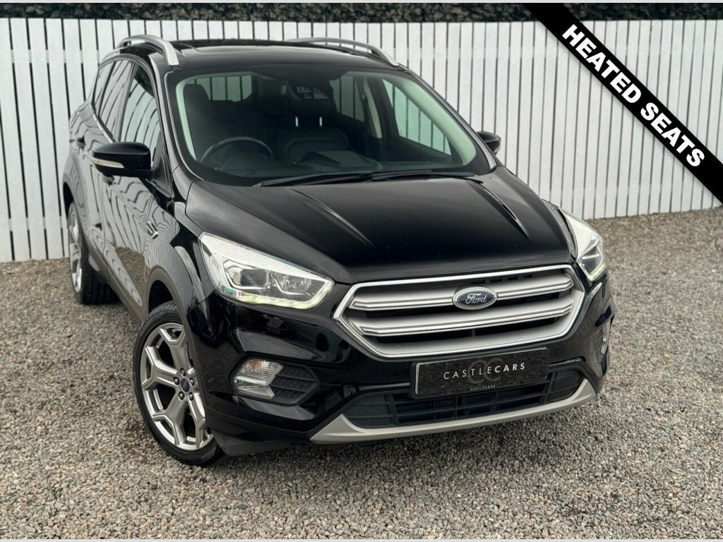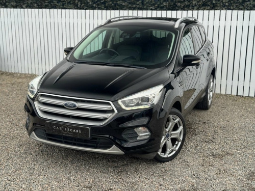 This 2017/67 Ford Kuga Titanium X has covered 69798 Miles.  Here we have a reliable SUV from Ford with a 2.0L Diesel engine producing 150BHP. The vehicle comes with the following features - Heated leather seats, Panoramic sunroof, Bluetooth and DAB radio, Cruise control, SATNAV and Reversing parking sensors with reversing camera, Multifunction steering wheel and Electric power steering. This vehicle comes with MOT, Service, Warranty, Vehicle Security Check & Road test completed. PX Welcome. Finance available through our website www.castlecarsonline.co.uk 12V Power Socket - Load Compartment, 18in Alloy Wheels - 5 Spoke, 6-Way Manual Passenger Seat with Lumbar , Airbags - Driver and Front Passenger, Airbags - Drivers Knee, Airbags - Front Side Impact, Airbags - Front and Rear Side Curtain, Anti-Lock Braking System - ABS with Elec, Armrest - Folding Centre - Rear, Audible Text Messaging - Voice Control a, Automatic Dimming Rear View Mirror, Bi-Xenon Headlights with Dynamic Bending, Centre Console, Child Locks - Manual on Rear Doors, Courtesy Lights - Front and Rear, Cruise Control with Active Speed Limiter, DEATC - Dual-Zone Electronic Automatic T, Door Lever - Chrome Finish, EBA - Emergency Brake Assist, EPAS - Electric Power Assisted Steering