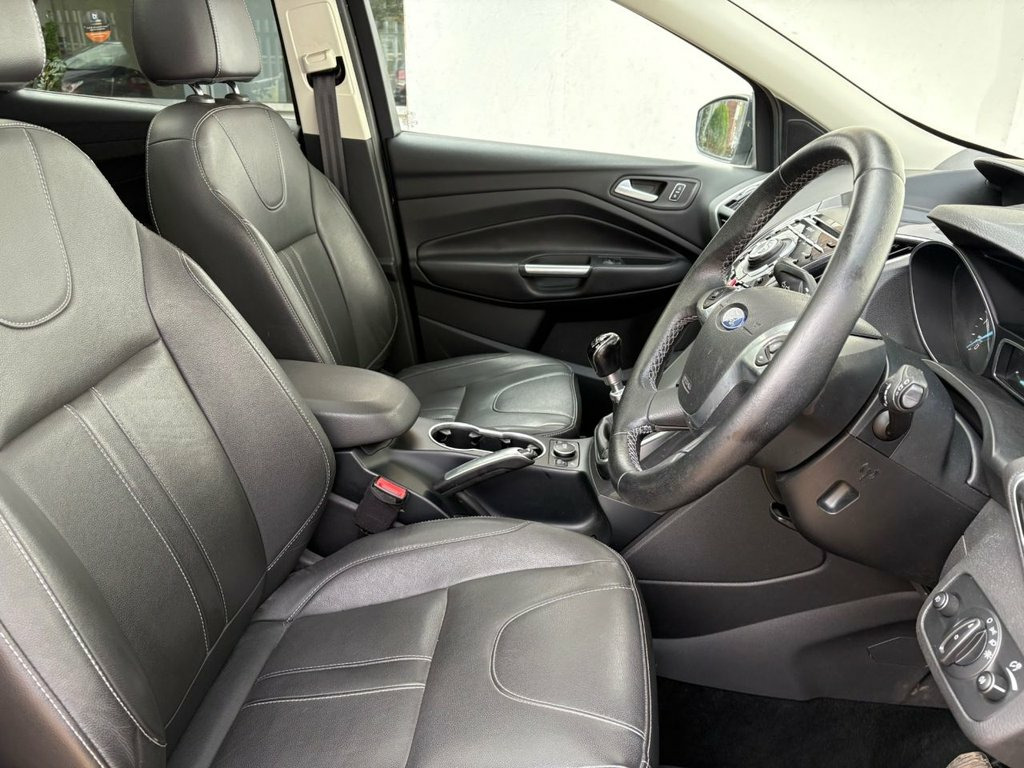 THIS WELL PRESENTED, LOW MILEAGE FORD KUGA TITANIUM X FINISHED IN METALLIC BLACK. COMES WITH 2 KEYS, SERVICE HISTORY AND A BRAND NEW CAM BELT KIT. COMES WITH FEATURES INCLUDING, HEATED FRONT WINDSCREEN, DUAL CLIMATE CONTROL WITH AIR CONDITIONING, BLUETOOTH HANDS-FREE, FULL BLACK LEATHER TRIM, PANORAMIC GLASS ROOF, HEATED FRONT SEATS, FRONT AND REAR PARKING SENSORS, PARK ASSIST, RADIO/CD PLAYER WITH AUX AND USB POINT, MULTI FUNCTION LEATHER STEERING WHEEL, CRUISE CONTROL, AUTO LIGHT, AUTO WIPERS, REAR PRIVACY GLASS, 4 X ELECTRIC WINDOWS, ELECTRIC POWER FOLD MIRRORS, LED DRIVING LIGHTS, 6 SPEED MANUAL GEARBOX, REMOTE CENTRAL LOCKING AND 18" ALLOY WHEELS. *** EXACT MILEAGE - 54,186 *** 18in Alloy Wheels - 5x2 Spoke, 4.2in TFT Display, ABS - Anti-lock Braking System, AUX Connection, Air Conditioning - Dual Zone Electronic , Airbags - Drivers Knee, Airbags - Front Passenger, Airbags - Front and 2nd Row Curtain, Airbags - Side Impact, Alarm - Thatcham Category 1 with Volume , Automatic Dimming Rear View Mirror, Automatic Rain Sensing Wipers, Bi-Xenon Headlights, Bluetooth Handsfree and Voice Control, Body Colour Exterior Mirrors, Bounce-Back Sensors, Courtesy Light - Footwell Illumination, Courtesy Light - Front and Rear Reading , Cruise Control with Speed Limiter, DDS - Deflation Detection System, Door Handles - Body Colour, Door Lever - Aluminium, Door Mirrors - Electricall