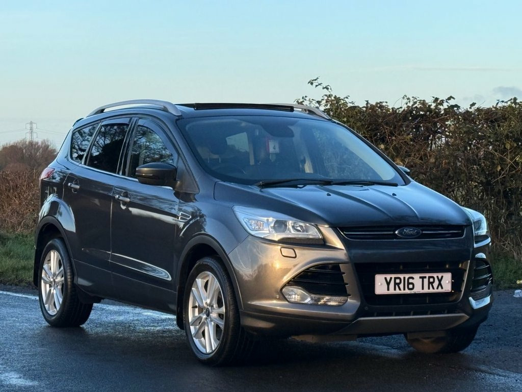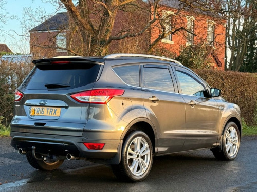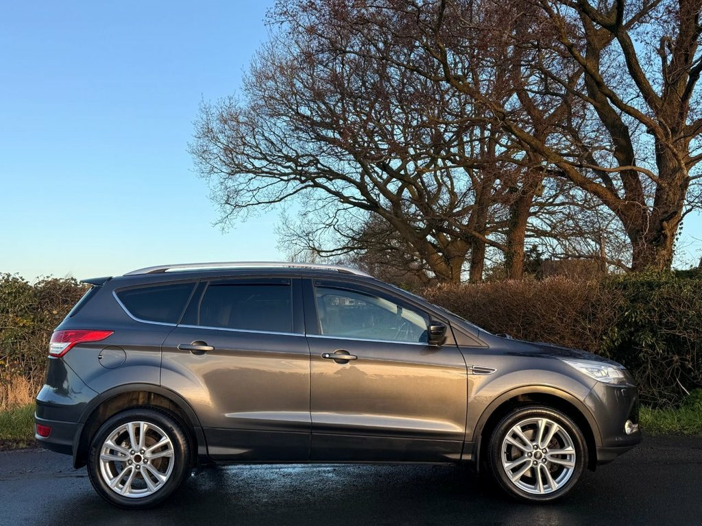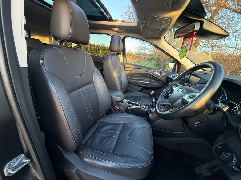 Delighted to offer this Ford Kuga 2.0 TDCI Titanium Euro 6 model , previously sold by ourselves and just taken back in part exchange from a regular customer , it has excellent service history and has been keep in fantastic condition by our customer . it has had 9 services and timing belt changed a year ago at 91930 miles. Spec includes opening panoramic sunroof/ full leather seats/ heated front seats/ DAB radio / BT for calls and audio / voice activated/ power tailgate/ front + rear park sensors/ privacy glass/ multi function steering wheel with cruise control/ heated front screen/ climate control/ electric folding door mirrors/ electric front drivers seat/ auto lights/ . and outstanding example of this well maintained family SUV. supplied with a full MOT pre delivery inspection serviced and warranty.. Magnetic, Capretto Leather - Ebony, Towbar - Detachable, 18in Alloy Wheels - 5x2 Spoke, 8in High Resolution Touchscreen, ABS - Anti-lock Braking System, AUX Connection, Air Conditioning - Dual Zone Electronic , Airbags - Drivers Knee, Airbags - Front Passenger, Airbags - Front and 2nd Row Curtain, Airbags - Side Impact, Alarm - Thatcham Category 1 with Volume , Armrest - Folding Centre - Rear, Audible Text Messaging, Automatic Dimming Rear View Mirror, Automatic Rain Sensing Wipers, Bi-Xenon Headlights, Bluetooth Hands-free Phone, Body Colour Exterior Mirrors, CD Player, Centre Console - Bottle-Can Holder, Centre Console - Stowage Tray, Courtesy Light - Footwell Illumination, Cruise Control
