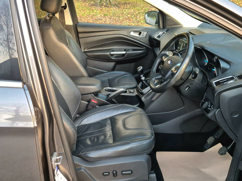 This 2015 Ford Kuga TDCi Titanium X presents a compelling proposition with its remarkably low mileage of just 71,500 miles, especially for a vehicle of its age, and a history of only two owners. This Four Wheel Drive model, powered by a 2.0L Diesel engine, boasts a clear vehicle history check, offering peace of mind. The Titanium X trim level is enhanced by the desirable Convenience Pack, which includes front parking assistance, and the Sony DAB Navigation System complete with a rear view camera and rear parking sensors. Further enhancing its appeal are the Appearance Pack and a fixed Panorama Roof, adding a touch of luxury and style.The Kuga TDCi Titanium X stands out with its thoughtful features that elevate the driving experience. The inclusion of both front and rear parking assistance, along with a rear view camera, makes manoeuvring in tight spaces significantly easier. The integrated Sony DAB Navigation System ensures you reach your destination with ease, while the Panorama Roof floods the cabin with natural light, creating a more open and airy feel. Furthermore, this model benefits from low CO2 emissions, indicating a more environmentally conscious choice compared to many similar vehicles. Service history was done at 10934 in 2016, 24478 in 2017, 30084 in 2017, 43228 in 2018, 46765 in 2019, 50494 in 2020, 53508 in 2021, 59319 in 2022, 63880 in 2023, 67359 in 2024, 71227 in 2025., in alloy wheels - 5x2 spoke, 5in colour screen, abs - anti-lock braking system, aux connection, air conditioning - dual zone electronic automatic temperature control, airbags - drivers knee, airbags - front passenger, airbags - front and 2nd row curtain, airbags - side impact, alarm - thatcham category 1 with volume sensing and perimeter, armrest - folding centre - rear, audible text messaging, automatic dimming rear view mirror, automatic rain sensing wipers, bi-xenon headlights, bluetooth hands-free phone, body colour side skirts, bounce-back sensors, courtesy light - footwell illumination, courtesy light - front and rear reading lights, cruise control with speed limiter, door handles - body colour, door lever - aluminium, door mirrors - puddle lights, drivers airbag, drivers seat lumbar support, eba - emergency brake assist, ebd - electronic brakeforce distribution, epas - electric power assisted steering, esp - electronic stability programme, electric windows - front and rear with one touch, emergency assistance, emergency brake warning, floor mats - carpet - front, ford easy-fuel capless refuelling system, ford power engine start-stop button, ford sync, front fog lights, front fully adjustable 4 way head restraints, front parking sensors, front seat - passengers manual lumbar support adjustment, front silver skid plate, front upper grille - high-gloss black with chrome bar, full body styling kit, gearshift knob - leather, hla - hill launch assist, headlights - automatic, headlights - courtesy delay, headlights - jet wash, headlights - levelling system - automatic, heated driver and passenger seats, heated front windscreen, heated washer jets, high gloss black bumper detailing, high gloss rear diffuser, ips - intelligent protection system, isofix, led daytime running lights, large stowage bin, load compartment - tie down hooks, locking wheel nuts, panorama roof, park assist - active, portable audio device connector, power fold door mirrors, power tailgate - button operated, privacy glass, rsc - roll stability control, rear lights - led, rear parcel tray, rear seat - folding centre armrest with 2 integrated cup holders and flip up storage, rear spoiler - body colour, rear view camera, remote central locking, scuff plates - front-stainless steel, seats - 6 way adjustable passengers, seats - 60-40 rear split back, seats - drivers 10-way adjustment, seats - front sports, silver roof rails, sony cd-radio player-mp3 compatibility, sony dab digital radio, spare wheel - mini steel, speakers - x8, speakers - x9, steering column - rake and reach adjustment, steering wheel - 4 spoke leather trimmed, steering wheel - multifunction, storage - upper instrument panel, stowage pockets - front seatback, tsc - trailer stability programme, tvc - torque vectoring control, tinted glass - green, traction control - tc, twin exhaust outlet, two 12v power socket, tyre pressure monitoring system, usb connection - ipod connectivity, variable dimming of instrument cluster and radio screen display, visual awd monitor, voice control - audio, appearance pack, convenience pack, parking sensor - rear, sony dab navigation system with rear view camera, keyless opening with hands free power tailgate, ford sync2 dab navigation system, parking sensor - rear, premium ford sync2 dab navigation system, driver assistance pack, appearance pack, convenience pack