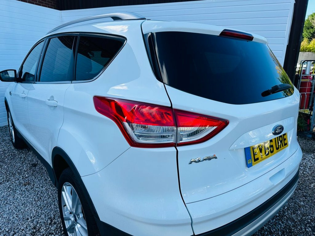 This 2016 Ford Kuga TDCi Titanium X offers an exceptional blend of capability and efficiency, boasting a remarkable 52 miles per gallon. This Four Wheel Drive model is equipped with a robust 2.0 litre diesel engine and meets the Euro 6 emission standards, making it a sensible choice for the environmentally conscious driver. The Titanium X trim ensures a high level of comfort and technology, providing a refined driving experience for all journeys. The Ford Kuga TDCi Titanium X stands out with its impressive fuel economy, indicating a more economical performance compared to similar vehicles. Its low CO2 emissions further highlight its efficiency, contributing to lower running costs and a reduced environmental impact. This combination of practical features and economic advantages makes this Kuga a compelling option for those seeking a versatile and cost effective SUV. 18in Alloy Wheels - 5x2 Spoke, 8in High Resolution Touchscreen, ABS - Anti-lock Braking System, AUX Connection, Air Conditioning - Dual Zone Electronic , Airbags - Drivers Knee, Airbags - Front Passenger, Airbags - Front and 2nd Row Curtain, Airbags - Side Impact, Alarm - Thatcham Category 1 with Volume , Armrest - Folding Centre - Rear, Audible Text Messaging, Automatic Dimming Rear View Mirror, Automatic Rain Sensing Wipers, Bi-Xenon Headlights, Bluetooth Hands-free Phone, Body Colour Exterior Mirrors, CD Player, Centre Console - Bottle-Can Holder, Centre Console - Stowage Tray, Courtesy Light - Footwell Illumination, Cruise Control with Speed Limiter, Door Handles - Body Colour, Door Mirr