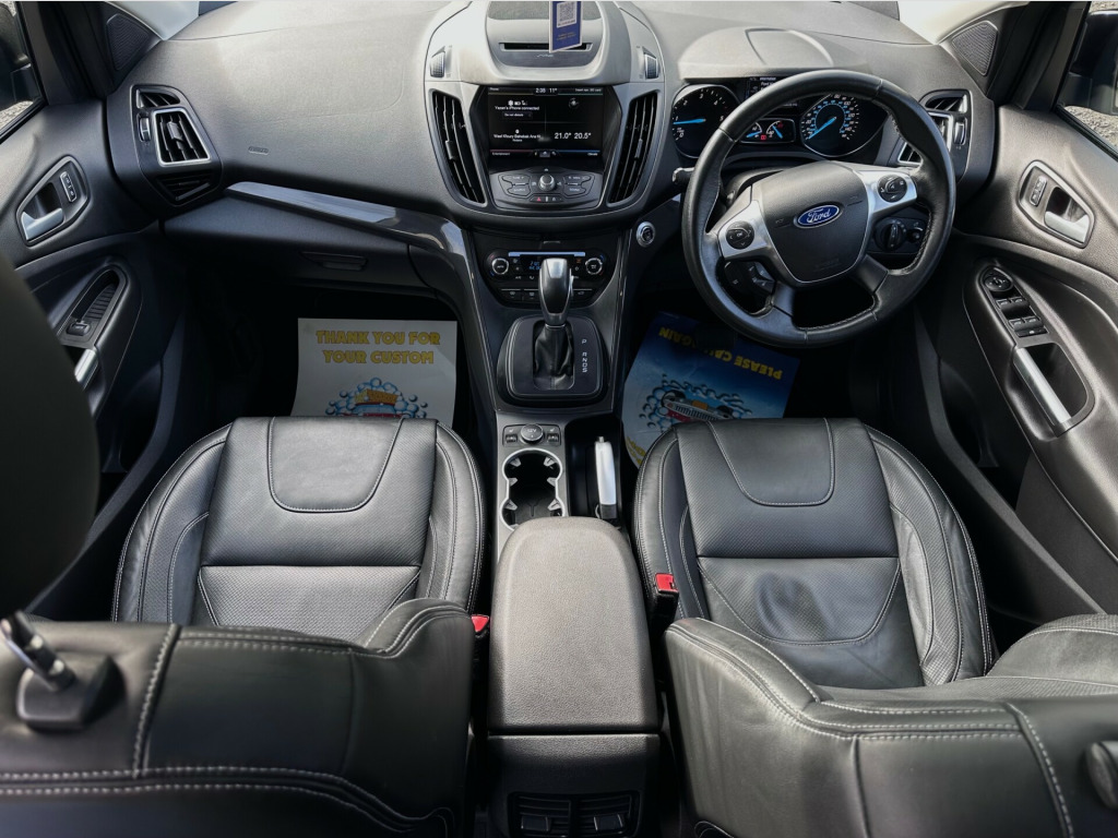 This British 2015 Ford Kuga SUV, with a mileage of 63000, is a Diesel-fueled, 5-door, 5-seat vehicle that is ULEZ compliant. The 2.0 TDCi Titanium X SUV 5dr model boasts a powerful 180 ps engine and includes features such as Air Conditioning, Bluetooth connection, Climate Control, Colour SatNav, and electrically foldable door mirrors. With its reliable Diesel Powershift AWD Euro 6 (s/s) engine, this spacious and versatile SUV is the perfect choice for both city driving and long road trips, offering comfort and convenience for the driver and passengers alike., r conditioning, bluetooth connection, climate control, colour satnav, comms pack, door mirrors electrically foldable, full leather, keyless go, panoramic sunroof, rain-sensing wipers, adjustable steering column, blind spot information, cruise control, esp, front parking sensor, head up display, multi-function steering wheel, parking sensors, power steering, traction control, abs, air bag, brake assist, child locks, curtain airbags, multiple airbags, passenger airbag, pedestrian airbag, rear airbags, side air bags, tyre pressure monitor, alarm, central locking, immobiliser, privacy glass, electric front windows, electric mirrors, electric tailgate, electric windows, power hood, cd player, digital radio, radio, radio/cd, front armrest, heated seats, rear armrest, rear headrests, seat-back tables, 3 zone climate control, push button start, alloy wheels, auto lighting, body coloured bumpers, front fog lights, full size spare wheel, spare wheel, towbar - fixed