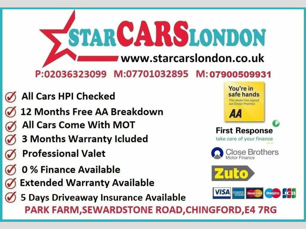 Receive a complimentary 12 months of AA Breakdown Cover with any car purchase. Our commitment to quality includes ensuring that all our cars come with a minimum of 6 months MOT. In the rare instance where a car has less than 6 months MOT at the time of sale, rest assured that we will conduct a fresh MOT unless explicitly stated otherwise in a special note. Your peace of mind is our priority, For More Clear View of the Car Have a Look Video of the car just go to YouTube by just entering the registration number of the car,NEXT MOT IS DUE 16/04/2027,THIS CAR COMES WITH SERVICE HISTORY,PLENTY OF MOT HISTORY,THIS CAR IS FULLY HPI CLEAR ALSO COMES WITH OUR 3 MONTHS WARRANTY FOR ADDED PIECE OF MIND,5 DAYS DRIVEAWAY INSURANCE AVAILABLE, EXTENDED WARRANTY AVAILABLE, HOME DELIVERY AVAILABLE, WE DO HALAL FINANCE, CREDIT AND DEBIT CARDS ACCEPTED, FINANCE AVAILABLE, WE ARE OPENS 7 DAYS MONDAY TO SATURDAY 10 TILL 7 SUNDAY 11 TILL 7