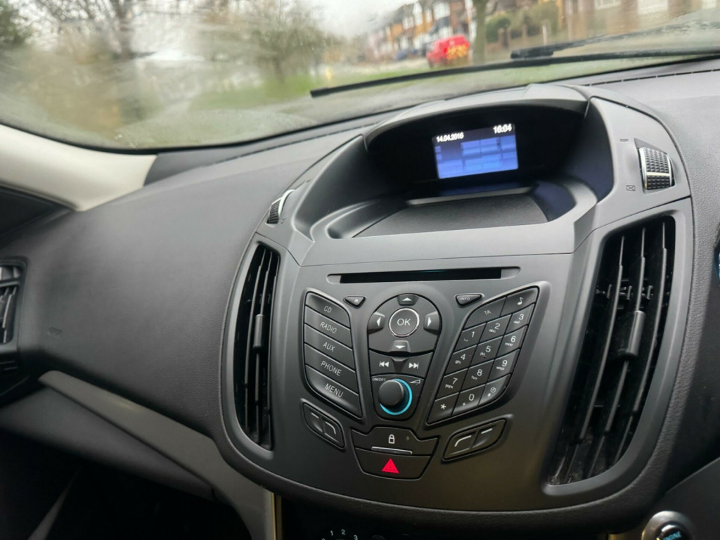This 2016 Ford Kuga TDCi Zetec offers an impressive fuel economy of 54 miles per gallon, making it a highly economical choice for your motoring needs. This Four Wheel Drive model is equipped with a 2.0 litre diesel engine and meets Euro 6 emission standards. Inside, you will find convenient features such as Bluetooth hands free phone connectivity and manual air conditioning, ensuring a comfortable and connected driving experience.The Ford Kuga TDCi Zetec stands out with its low CO2 emissions and low insurance group, indicating that it is more cost effective to run and insure compared to many other vehicles in its class. This combination of efficiency, practicality, and affordability makes this Kuga a sensible and appealing option.. 17in Alloy Wheels - 5 Spoke, ABS - Anti-lock Braking System, AUX Connection, Air Conditioning - Manual, Airbags - Drivers Knee, Airbags - Front Passenger, Airbags - Front and 2nd Row Curtain, Airbags - Side Impact, Alarm - Thatcham Category 1 with Volume Sensing and Perimeter, Audible Text Messaging, Bluetooth Hands-free Phone, Body Colour Exterior Mirrors, Bounce-Back Sensors, Courtesy Light - Footwell Illumination, Courtesy Light - Front and Rear Reading Lights, Cruise Control with Speed Limiter, DAB Digital Radio, Daytime Running Lamps, Door Handles - Body Colour, Door Lever - Aluminium, Door Mirrors - Electrically Operated and Heated, Door Mirrors - Puddle Lights, Door Mirrors with Integrated Indicators, Drivers Airbag, Drivers Seat Lumbar Support, EBA - Emergency Brake Assist, EBD - Electronic Brakeforce Distribution, EPAS - Electric Power Assisted Steering, ESP - Electronic Stability Programme, Electric Windows - Front and Rear with One Touch, Emergency Assistance, Emergency Brake Warning, Ford AM-FM CD Audio System, Ford Easy-Fuel Capless Refuelling System, Ford Power Engine Start-Stop Button, Ford SYNC, Front Fog Lights, Front Fully Adjustable 4 Way Head Restraints, Front Seat - Passengers Manual Fore-Aft Adjustment, Front Upper Grille - Chrome, HLA - Hill Launch Assist, Headlights - Courtesy Delay, Heated Front Windscreen, IPS - Intelligent Protection System, ISOFIX, Large Stowage Bin, Load Compartment - Tie Down Hooks, Locking Wheel Nuts, Portable Audio Device Connector, Rear Spoiler - Body Colour, Remote Central Locking, Scuff Plates - Front-Stainless Steel, Seats - 60-40 Rear Split Back, Seats - Drivers Manual Height and Fore-Aft Adjustment, Seats - Front Sports, Spare Wheel - Mini Steel, Speakers - x6, Steering Column - Rake and Reach Adjustment, Steering Wheel - 4 Spoke Leather Trimmed, Steering Wheel - Multifunction, Storage - Upper Instrument Panel, Stowage Pockets - Front Seatback, TSC - Trailer Stability Programme, TVC - Torque Vectoring Control, Tinted Glass - Green, Tonneau Cover, Traction Control - TC, Twin Exhaust Outlet, Two 12V Power Socket, Tyre Pressure Monitoring System, USB Connection - iPod Connectivity, Variable Dimming of Instrument Cluster and Radio Screen Display, Visual AWD Monitor, Voice Control - Audio.