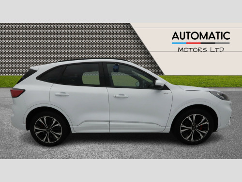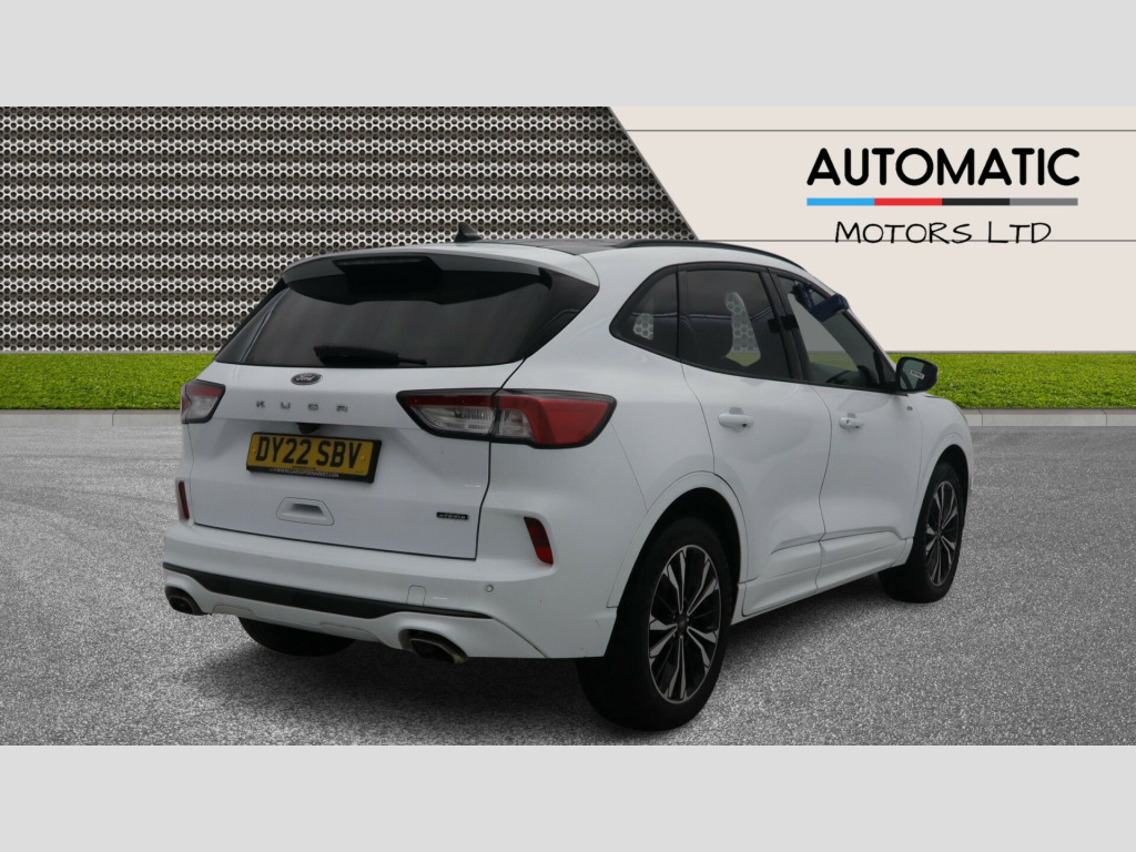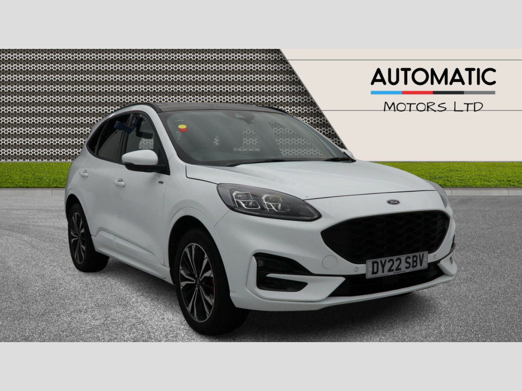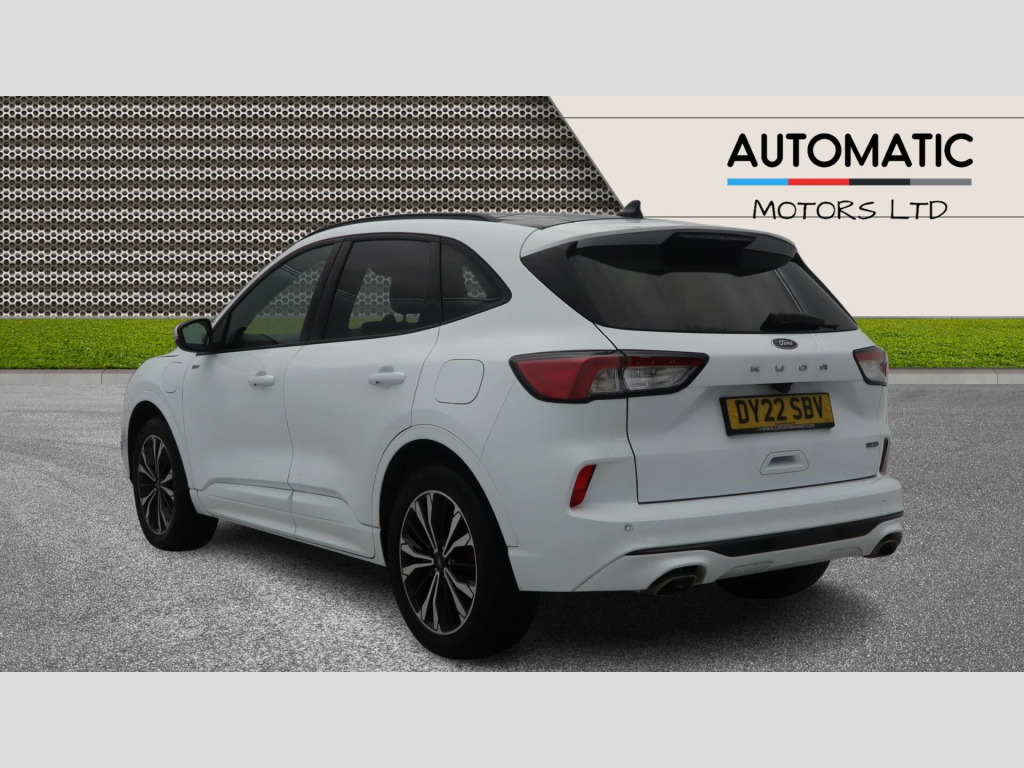 ULEZ FREE, FRESH SERVICE, TOTAL OF 3 SERVICES, MOT DUE 21/12/2026, SATNAV, PARKING SENSORS, CLIMATE CONTROL, HALF LEATHER TRIM, 19'' ALLOY WHEELS, TYRE INFLATION KIT, PRIVACY GLASS, PANORAMIC ROOFThis 2022 Ford Kuga SUV, with only 23000 miles on the clock, is a sleek and efficient petrol plug-in hybrid, perfect for both urban and long-distance driving. With MOT valid until 21/12/2026, this 5-seater, 5-door vehicle is not only ULEZ-compliant but also comes with a powerful 2.5 Duratec 14.4kWh engine, ensuring a smooth and responsive drive every time. The stylish Frozen White exterior is complemented by the luxurious Partial Sensico-Rapton Cloth interior in Ebony with Red Stitching, with additional features including a 10-way power-adjustable driver's seat, 2nd row sliding seats, and an 8-way manual passenger seat with lumbar support and height adjust. Whether it's a daily commute or a weekend adventure, this Ford Kuga ST-Line X Edition offers both comfort and performance in equal measure. -way power adjustable drivers seat, 2nd row sliding seats, 8-way manual passenger seat including lumbar support and height adjust, air conditioning - electronic automatic temperature control - eatc, aluminium foot pedals - st-line design, ambient lighting, auto dimming rear view mirror, auto wipers, centre console with electronic parking brake, driver and passengers sun visor with illumination, electrical charging point in second row, front seats - 2-way manual height adjust passive head restraints, front seats - drivers and passengers seatback map pockets, front and rear floor mats with red stitching, full digital 12.3in instrument cluster, geo awareness - providing details of ulez within the satellite navigation, gearshift - automatic - electronic rotary gearshift dial, glovebox lights, handsfree power tailgate, headliner - sports dark, heated driver and passenger seats, heated rear seats, heated steering wheel, load compartment - lights, load compartment - tie down hooks, load compartment carpet, lower door frame beltline - black, mini overhead console with sunglasses holder bin, mykey, rear duct on b-pillar, rear seat - 60-40 split folding seats, rear seat centre head restraint, rear seats - 2-way head restraint up-down, rear seats - folding centre armrest with integrated cup holder, rear seats - sliding seat adjust tracks - fore-aft, remote tailgate release, removable package tray, single rear fog light, sports seats, steering column - rake and reach adjustment, steering wheel - st-line sports-style perforated sensico-trimmed with red stitching, upper door frame beltline - black, winter pack, 12v power point in floor console, 12v power point in cargo area, 12v socket - voltage regulator, ford sync3 dab navigation system, ecall, 19in alloy wheels - 5x2 spoke - high gloss - machined, aluminium - finish front scuff plates with st-line script, black roof rails, dual exhaust tailpipes with unique brushed stainless steel finish, exterior door handles - body coloured, front lower grille - ebony black mesh, front upper grille - carbon black honeycombe mesh and high-gloss black surround, front windows - laminated glass, front and rear bumper - sporty body colour with rear ebony high-gloss insert, heated and power folding door mirrors with puddle lights, kuga badge, large rear spoiler, locking wheel nuts, lower bodyside moulding - body colour, power opening panoramic roof, privacy glass, quickclear heated windscreen, red brake calipers, rocker panel mouldings - body colour - st-line design, st-line badge on left and right side wings, st-line bodystyling kit, st-line front and rear bumper moulding - body colour, tailgate badge - phev - plug-in-hybrid, tailgate handle - body colour, tow hooks - front and rear, tyre inflation kit, windows - power front and rear with global closing, abs - anti-lock braking system with enhanced electronic stability control - esc with traction control - emergency brake assist - eba - hill start assist - trailer sway control, airbag - driver and front passenger side, airbag - front passenger deactivation switch, airbags - driver and front passenger, airbags - front and rear side curtain, automatic door relocking, electric childproof locks on rear doors, electric parking brake with auto hold, engine immobiliser - securilock, ford easy fuel system, ford keyfree system - keyless entry with ford power starter button, lane keeping aid with lane departure warning, power door deadlocks - double locking, power door locks, seat belt - drivers - front passenger and rear seat belt reminder alert, seat belts - front 3-point seatbelts with load limiter, seat belts - front height adjustable, seat belts - rear retractable rear belt - 3-point all positions, seats - isofix mounting provision for child seats - outer seats only, steering column - locking electric, tether anchorage - two rear seat top tether anchorage restraints, thatcham category 1 perimeter and volume sensing alarm, wiper - intermittent rear window wiper, wrong way alert, acoustic vehicle alert system - avas, cruise control with intelligent speed limiter, epas - electric power assisted steering, front and rear parking sensors, pre-collision assist with autonomous emergency braking - camera detection, rear view camera, selectable drive modes, standard home charging cable - 3-pin domestic socket 230v, suspension - sports, trip computer, tyre pressure monitoring system, automatic headlights with auto high-low beam, full led headlamps, headlights - automatic follow me home lighting, headlights - levelling system - manual, headlights - unique bending, high-mounted brake light, led daytime running lights, led fog lights - front, rear lights - led