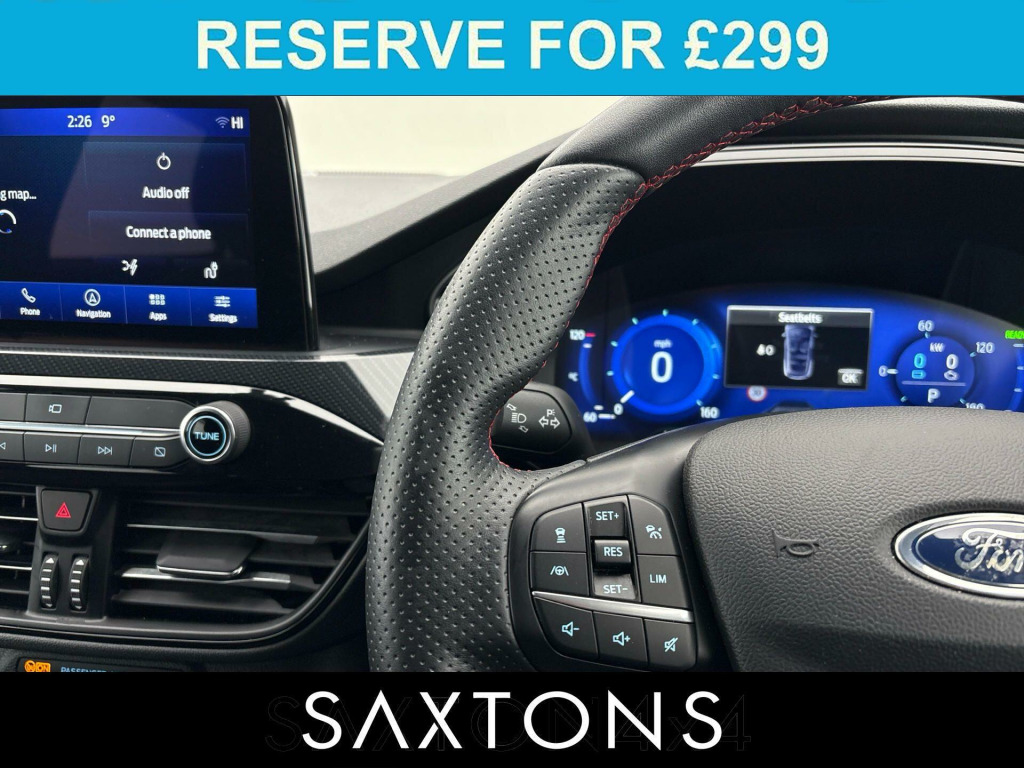 . 12V Power Socket - Load Compartment, 2nd Row Sliding Seats, ABS - Anti-lock Braking System, Airbags - Driver and Front Passenger, Airbags - Drivers Knee, Airbags - Front and Rear Side Curtain, Alloy Foot Pedals, Ambient Lighting, Auto Dimming Rear View Mirror, Auto Lights, Auto Start-Stop System, Black Roof Rails, Centre Console, Courtesy Light - Front and Rear Centre, Dark Headliner and Pillars, DEATC - Dual-Zone Electronic Automatic Temperature Control, Door Lever - Chrome Finish, Driver Impairment Monitor, EBA - Emergency Brake Assist, EcoCoach, Electric Parking Brake, Engine Immobiliser, EPAS - Electric Power Assisted Steering, ESC - Electronic Stability Control, Flat Bottom Leather Steering Wheel, Floor Mats - Front and Rear - ST-Line, Ford DAB Audio System, Ford Easy Fuel System, Ford Key Free System - Keyless Entry with Keyless Start, Ford Power Starter Button, Ford SYNC3 Navigation System, FordPass Connect, Front and Rear Parking Sensors, Front LED Fog Lights with Cornering Function, Front Suspension - Independent with MacPherson Struts and Anti-Roll Bar, Full Digital 12.3in Instrument Cluster, Full LED Headlamps and LED Daytime Running Lights, Headlights - Automatic On-Off, Heated and Power Folding Door Mirrors with Puddle Lights, HLA - Hill Launch Assist, Instrument Cluster - 6.5in Colour TFT Display, Intelligent Speed Assistance, Interior-Exterior ST-Line Badges, IPS - Intelligent Protection System, Large Rear Spoiler, LED Daytime Running Lights, Locking Wheel Nuts, MyKey Gen II, Post Collision Braking, Power Converter 230V, Powered Child Proof Rear Door Locks with Global Closing, Pre-Collision Assist with AEB, Privacy Glass, Quickclear Heated Windscreen, Rain Sensitive Windshield Wipers, Rear Lights - LED, Rear Suspension - Independent Control Blade Multi-Link System and Anti-Roll Bar, Red Brake Calipers, Remote Power Central Double Locking Doors, Seats - Drivers 8-Way Adjustment, Seats - ISOFIX Mounting Provision for Child Seats - Outer Seats Only, Seats - Passengers 4-Way Adjustment, Selectable Drive Modes, Sports Seats, Sports Suspension, ST-Line Bodystyling Kit, ST-Line Front Scuff Plates, Steering Column - Rake and Reach Adjustment, Thatcham Category 1 Alarm, Tie-Down Hooks, Tonneau Cover, Tyre Inflation Kit, Tyre Pressure Monitoring System, Windows - Electrically Operated Front and Rear with One Touch Lowering-Closing on Drivers Side and Global Closing, Wireless Charging, 18in Alloy Wheels - 10 Spoke - Rock Metallic, Bang and Olufsen Premium Audio System, Cruise Control with Adjustable Speed Limiter, Lane Keeping Aid with Lane Departure Warning, 18in Alloy Wheels - 10 Spoke - Rock Metallic, Bang and Olufsen Premium Audio System, Cruise Control with Adjustable Speed Limiter, Lane Keeping Aid with Lane Departure Warning, Salerno Leather - Rapton Cloth - Ebony with Red Stitching.