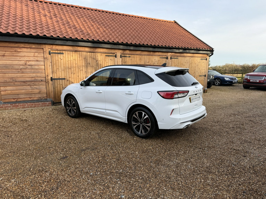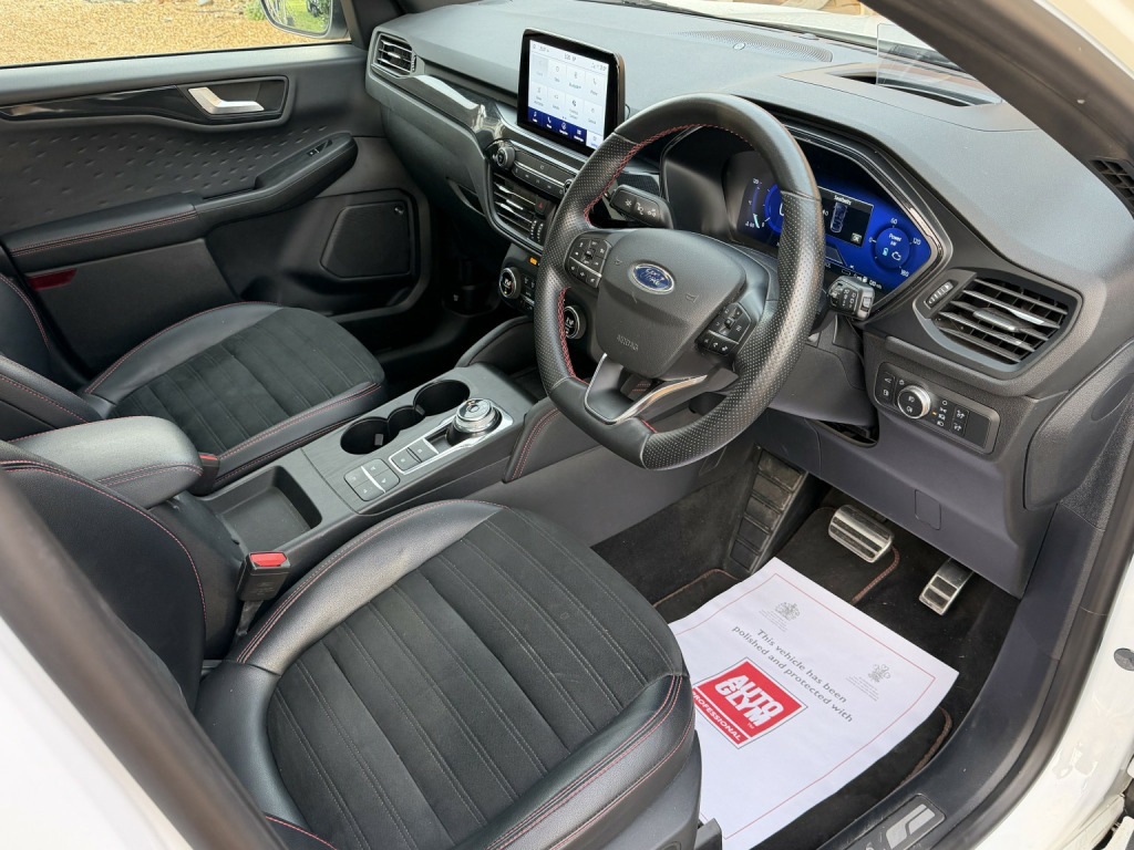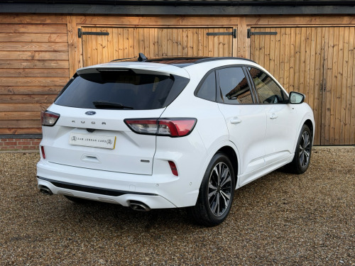 Sam Jordan is pleased to offer this 2020 Ford Kuga 2.5 Duratec ST-Line X Automatic, finished in Frozen White with Ebony Salerno Leather and Rapton Cloth upholstery with red stitching. This car has had just one private owner from new, a local gentleman, and was supplied and exclusively serviced by the original Ford main dealer, with a full Ford service history from new. , Being the ST-Line X model, it already comes superbly equipped with a high level of specification including a panoramic glass sunroof, heated front seats, Bang & Olufsen premium sound system, touchscreen media/navigation, cruise control, privacy glass, and 19 alloy wheels. On top of this, the vehicle also benefits from some desirable factory options including the Technology Pack with Head-Up Display, Driver Assistance Pack, and a retractable, electrically deployable towbar. , With just 66,000 miles, the vehicle remains in excellent condition and is ULEZ compliant, offering 222 BHP from its petrol plug-in hybrid powertrain for a refined and efficient drive. Optional extras total over £2,300, underlining this cars impressive value and desirability. , This particular Kuga presents in truly outstanding condition throughout, a testament to its single private owner who has clearly cherished the vehicle from new. The bodywork is exceptionally clean and free from any noticeable marks, the 19 alloys are unmarked, and the interior is equally pristine, with minimal signs of wear and an overall appearance that belies its mileage, , Supplied with a clear HPI report, two remote keys, and the original owners manuals and wallet. , Established since 2005, Sam Jordan Cars specialise in excellent quality, high-specification vehicles with full service histories. All cars are HPI clear and supplied with a minimum of 6 months MOT, alongside a comprehensive 6-month warranty, with extended warranties available up to 3 years. , Please visit www.samjordancars.com, for full details including online finance quotations. Viewings are by appointment, so please contact us in advance to arrange a viewing or request further information.