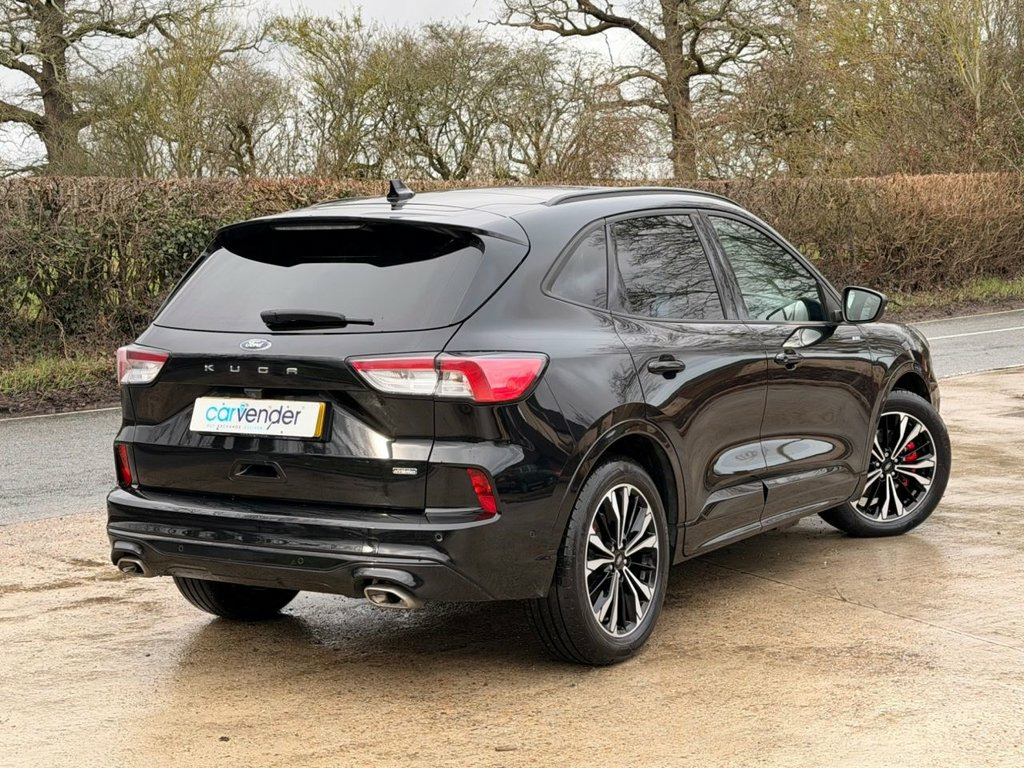 At Carvender we are presenting The 2021 Ford Kuga 2.5 Ecoboost Duratec 14.4kWh ST-Line X Plug-In Hybrid 5dr. The 2021 Ford Kuga is a perfect SUV which combines robust performance with sophisticated design and advanced technology. This Kuga is equipped with a 2.5 litre EcoBoost engine and Plug-in Hyubrid battery that delivers an impressive 225 brake horsepower. The Ford Kuga stands out with its bold and athletic exterior. The sleek lines, prominent grille and stylish alloy wheels give it a commanding road presence. This Kuga comes with the advanced features including Adaptive Cruise Control, Lane Keeping Assist, Rear & Front Parking Sensors with Assist, Reversing Camera, Half Leather Heated Seats, Auto Parking, A User Friendly Touchscreen, Navigation System, Bluetooth connectivity and much more. Please refer to advert photos for more features. This Kuga has been very well maintained . We have 2 services in the file which have been carried out at the mileages of Services have been carried out at millages of 33091 and 45720 on 20/02/2026. Do not miss on the opportunity to own this beautiful desirable car. Contact us today to schedule a test drive or visit our website for home delivery with 14 days money back guaranty. 12V Power Socket - Load Compartment, 19in Alloy Wheels - 5x2 Spoke - Black Eb, 2nd Row Sliding Seats, ABS - Anti-lock Braking System, Airbags - Driver and Front Passenger, Airbags - Drivers Knee, Airbags - Front and Rear Side Curtain, Alloy Foot Pedals, Auto Dimming Rear View Mirror, Auto Start-Stop System, Bang and Olufsen Premium Audio System, Black Roof Rails, Centre Console, Cruise Control with Adjustable Speed Lim, DEATC - Dual-Zone Electronic Automatic T, Dark Headliner and Pillars, Door Lever - Chrome Finish, Driver Impairment Monitor, Drivers Seat - 10-Way Power Adjustment, EBA - Emergency Brake Assist, EPAS - Electric Power Assisted Steering, ESC - Electronic Stability Control, Elec