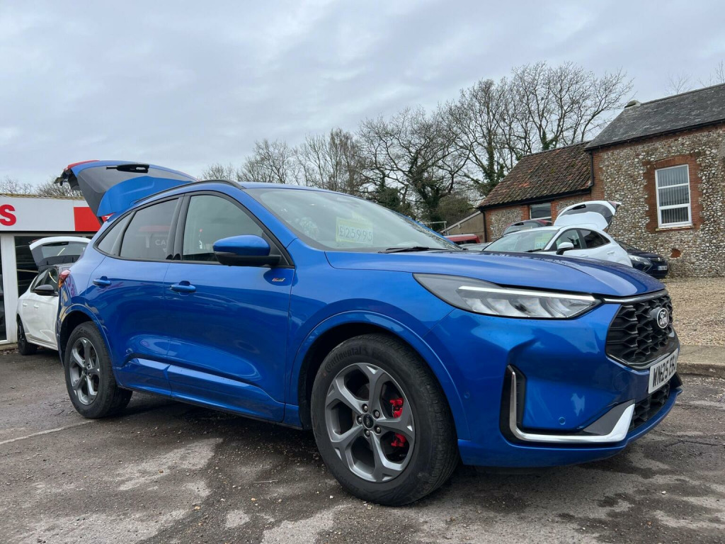 This 2025 Ford Kuga 2.5h Duratec ST-Line CVT Euro 6 (s/s) 5dr SUV is currently available for £25,995 in Thetford Norfolk with P/Electric engine and Auto Clutch Manual gearbox. For more information or to arrange a viewing, click here to send us an email using form below.