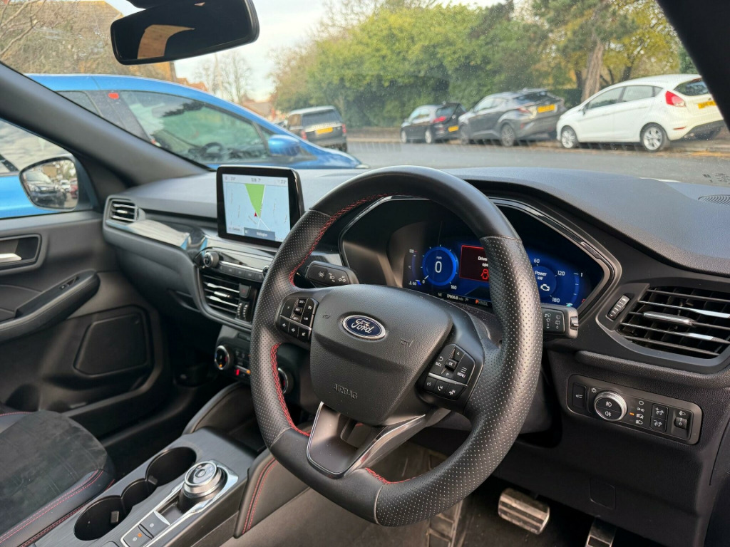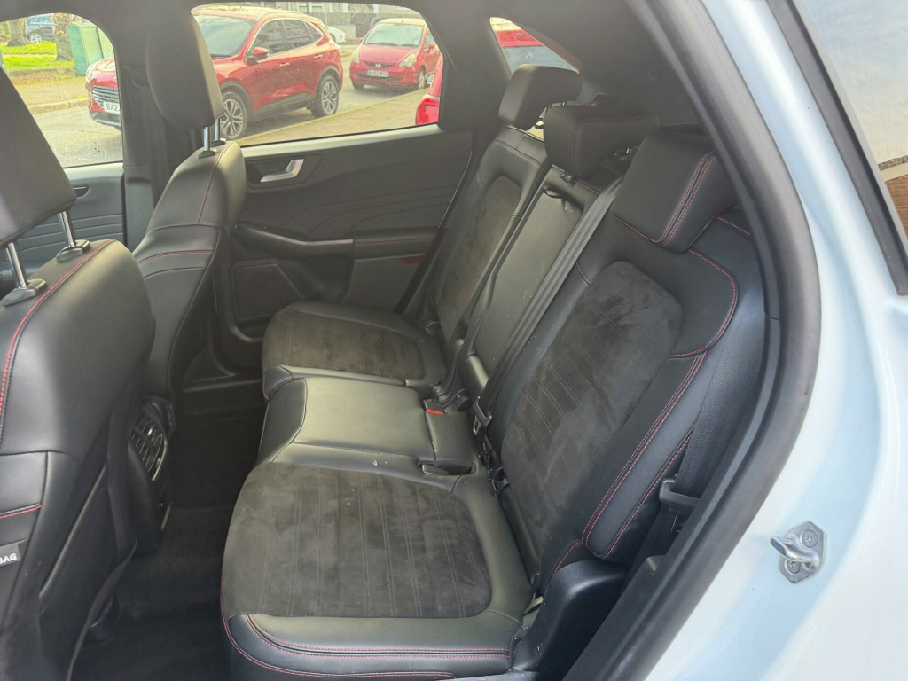 This 2023 Ford Kuga ST Line Edition offers an exceptional ownership proposition with only one owner and a remarkably low mileage of just 17,000 miles. This petrol hybrid automatic model, adhering to Euro 6 emissions standards, combines efficiency with performance. Inside, you'll find a host of convenient features designed for comfort and connectivity, including wireless phone charging, a heated steering wheel and seats as part of the Winter Pack, and electronic automatic temperature control for the air conditioning. The Ford SYNC3 DAB Navigation System seamlessly integrates with Android Auto and Apple CarPlay, all delivered through a premium branded sound system. Automatic headlights with auto high low beam further enhance the driving experience.This Kuga ST Line Edition stands out with its impressive fuel economy of 51 mpg, demonstrating its efficiency compared to similar vehicles. Its low CO2 emissions also contribute to its appeal. The acceleration from 0 to 62 mph in just 9.1 seconds shows a responsive drive, while its placement in a low insurance group highlights its affordability for everyday use. These combined highlights make this Ford Kuga a compelling choice for those seeking a well equipped, economical, and enjoyable vehicle. Jo nter pack, wireless charging, partial sensico - rapton cloth - black with red stitching, 10-way power adjustable drivers seat, 12v power point in floor console, 12v power point in cargo area, 12v socket - voltage regulator, 18in alloy wheels - 10 spoke - rock metallic, 2nd row sliding seats, 8-way manual passenger seat including lumbar support and height adjust, abs - anti-lock braking system with enhanced electronic stability control - esc with traction control - emergency brake assist - eba - hill start assist - trailer sway control, air conditioning - electronic automatic temperature control - eatc, airbag - driver and front passenger side, airbag - front passenger deactivation switch, airbags - driver and front passenger, airbags - front and rear side curtain, aluminium - finish front scuff plates with st-line script, aluminium foot pedals - st-line design, ambient lighting, auto dimming rear view mirror, auto wipers, automatic door relocking, automatic headlights with auto high-low beam, black roof rails, centre console with electronic parking brake, cruise control with intelligent speed limiter, driver and passengers sun visor with illumination, dual exhaust tailpipes with unique brushed stainless steel finish, epas - electric power assisted steering, electric childproof locks on rear doors, electric parking brake with auto hold, electrical charging point in second row, engine immobiliser - securilock, exterior door handles - body coloured, ford easy fuel system, ford keyfree system - keyless entry with ford power starter button, ford sync3 dab navigation system, front lower grille - ebony black mesh, front seats - 2-way manual height adjust passive head restraints, front seats - drivers and passengers seatback map pockets, front upper grille - carbon black honeycombe mesh and high-gloss black surround, front windows - laminated glass, front and rear bumper - sporty body colour with rear ebony high-gloss insert, front and rear floor mats with red stitching, front and rear parking sensors, full digital 12.3in instrument cluster, full led headlamps, gearshift - automatic - electronic rotary gearshift dial, glovebox lights, handsfree power tailgate, headlights - automatic follow me home lighting, headlights - levelling system - manual, headlights - unique bending, headliner - sports dark, heated and power folding door mirrors with puddle lights, high-mounted brake light, kuga badge, led daytime running lights, led fog lights - front, lane keeping aid with lane departure warning, large rear spoiler, load compartment - lights, load compartment - tie down hooks, load compartment carpet, locking wheel nuts, lower bodyside moulding - body colour, lower door frame beltline - black, mini overhead console with sunglasses holder bin, mykey, power door deadlocks - double locking, power door locks, pre-collision assist with autonomous emergency braking - camera detection, privacy glass, quickclear heated windscreen, rear duct on b-pillar, rear lights - led, rear seat - 60-40 split folding seats, rear seat centre head restraint, rear seats - 2-way head restraint up-down, rear seats - folding centre armrest with integrated cup holder, rear seats - sliding seat adjust tracks - fore-aft, rear view camera, red brake calipers, remote tailgate release, removable package tray, rocker panel mouldings - body colour - st-line design, st-line badge on left and right side wings, st-line bodystyling kit, st-line front and rear bumper moulding - body colour, seat belt - drivers - front passenger and rear seat belt reminder alert, seat belts - front 3-point seatbelts with load limiter, seat belts - front height adjustable, seat belts - rear retractable rear belt - 3-point all positions, seats - isofix mounting provision for child seats - outer seats only, selectable drive modes, single rear fog light, sports seats, steering column - locking electric, steering column - rake and reach adjustment, steering wheel - st-line sports-style perforated sensico-trimmed with red stitching, suspension - sports, tailgate handle - body colour, tether anchorage - two rear seat top tether anchorage restraints, thatcham category 1 perimeter and volume sensing alarm, tow hooks - front and rear, trip computer, tyre inflation kit, tyre pressure monitoring system, upper door frame beltline - black, windows - power front and rear with global closing, wiper - intermittent rear window wiper, wrong way alert, ecall
