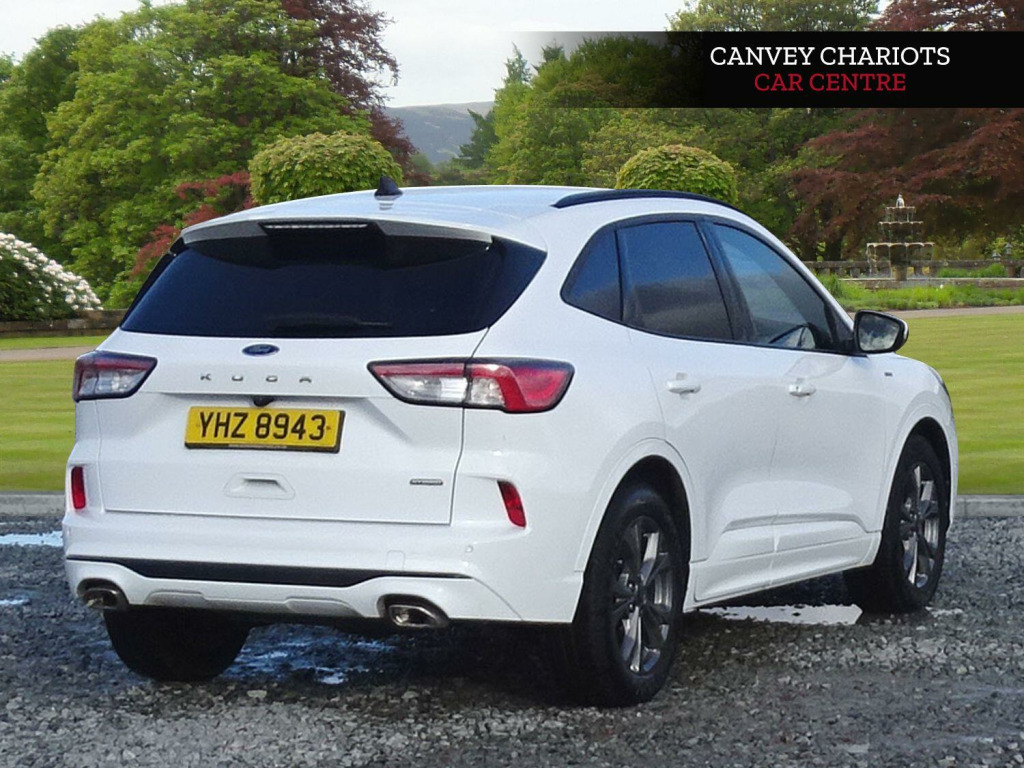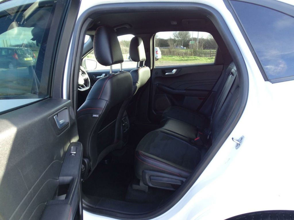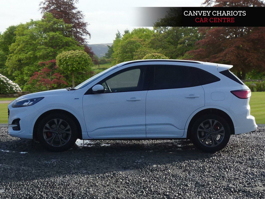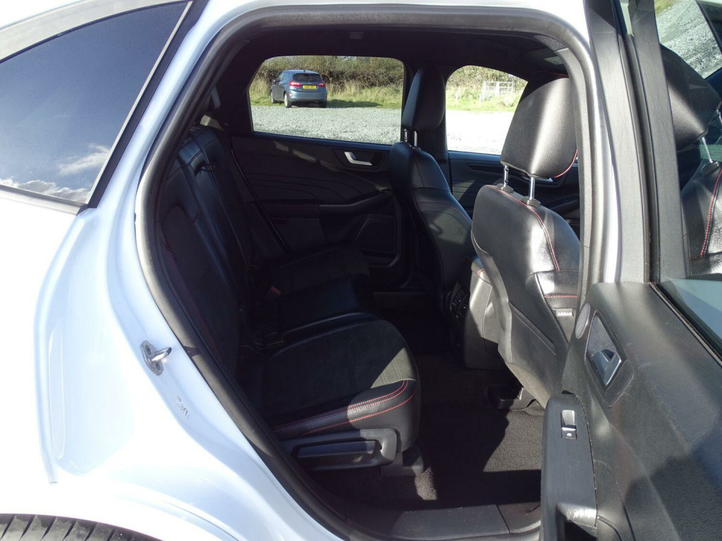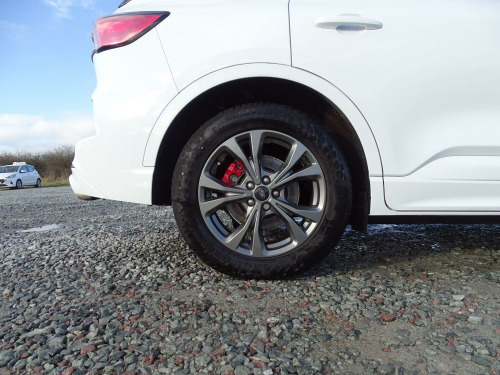 This 2022 Ford Kuga ST-Line Edition is a superb example, having had only one owner since new. This stylish SUV features a responsive 2.5 litre petrol hybrid engine, meeting Euro 6 emission standards. Inside, you'll find comfort and convenience with electronic automatic air conditioning and a Ford SYNC3 DAB navigation system that seamlessly integrates with Android Auto and Apple CarPlay, all delivered through a premium branded sound system. For effortless parking, it comes equipped with front and rear parking sensors, a rear view camera, and full LED headlamps for excellent visibility.Experience impressive performance with a 0-62mph acceleration time of just 9.1 seconds, all while benefiting from excellent fuel economy of 51 miles per gallon. This Kuga also boasts low CO2 emissions and falls into a low insurance group, making it a cost effective choice. These highlights demonstrate how this particular Ford Kuga offers a superior ownership experience compared to other vehicles in its class.. 10-Way Power Adjustable Drivers Seat, 12V Power Point in Floor Console, 12v Power Point in Cargo Area, 12v Socket - Voltage Regulator, 18in Alloy Wheels - 10 Spoke - Rock Metallic, 2nd Row Sliding Seats, 8-Way Manual Passenger Seat including Lumbar Support and Height Adjust, ABS - Anti-Lock Braking System with Enhanced Electronic Stability Control - ESC with Traction Control - Emergency Brake Assist - EBA - Hill Start Assist - Trailer Sway Control, Air Conditioning - Electronic Automatic Temperature Control - EATC, Airbag - Driver and Front Passenger Side, Airbag - Front Passenger Deactivation Switch, Airbags - Driver and Front Passenger, Airbags - Front and Rear Side Curtain, Aluminium - Finish Front Scuff Plates with ST-Line Script, Aluminium Foot Pedals - ST-Line Design, Ambient Lighting, Auto Dimming Rear View Mirror, Auto Wipers, Automatic Door Relocking, Automatic Headlights with Auto High-Low Beam, Black Roof Rails, Centre Console with Electronic Parking Brake, Cruise Control with Intelligent Speed Limiter, Driver and Passengers Sun Visor with Illumination, Dual Exhaust Tailpipes with Unique Brushed Stainless Steel Finish, EPAS - Electric Power Assisted Steering, Electric Childproof Locks on Rear Doors, Electric Parking Brake with Auto Hold, Electrical Charging Point in Second Row, Engine Immobiliser - SecuriLock, Exterior Door Handles - Body Coloured, Ford Easy Fuel System, Ford Keyfree System - Keyless Entry with Ford Power Starter Button, Ford SYNC3 DAB Navigation System, Front Lower Grille - Ebony Black Mesh, Front Seats - 2-Way Manual Height Adjust Passive Head Restraints, Front Seats - Drivers and Passengers Seatback Map Pockets, Front Upper Grille - Carbon Black Honeycombe Mesh and High-Gloss Black Surround, Front Windows - Laminated Glass, Front and Rear Bumper - Sporty Body Colour with Rear Ebony High-Gloss Insert, Front and Rear Floor Mats with Red Stitching, Front and Rear Parking Sensors, Full Digital 12.3in Instrument Cluster, Full LED Headlamps, Gearshift - Automatic - Electronic Rotary Gearshift Dial, Glovebox Lights, Handsfree Power Tailgate, Headlights - Automatic Follow Me Home Lighting, Headlights - Levelling System - Manual, Headlights - Unique Bending, Headliner - Sports Dark, Heated and Power Folding Door Mirrors with Puddle Lights, High-Mounted Brake Light, Kuga Badge, LED Daytime Running Lights, LED Fog Lights - Front, Lane Keeping Aid with Lane Departure Warning, Large Rear Spoiler, Load Compartment - Lights, Load Compartment - Tie Down Hooks, Load Compartment Carpet, Locking Wheel Nuts, Lower Bodyside Moulding - Body Colour, Lower Door Frame Beltline - Black, Mini Overhead Console with Sunglasses Holder Bin, MyKey, Power Door Deadlocks - Double Locking, Power Door Locks, Pre-Collision Assist with Autonomous Emergency Braking - Camera Detection, Privacy Glass, Quickclear Heated Windscreen, Rear Duct on B-Pillar, Rear Lights - LED, Rear Seat - 60-40 Split Folding Seats, Rear Seat Centre Head Restraint, Rear Seats - 2-Way Head Restraint Up-Down, Rear Seats - Folding Centre Armrest with Integrated Cup Holder, Rear Seats - Sliding Seat Adjust Tracks - Fore-Aft, Rear View Camera, Red Brake Calipers, Remote Tailgate Release, Removable Package Tray, Rocker Panel Mouldings - Body Colour - ST-Line Design, ST-Line Badge on Left and Right Side Wings, ST-Line Bodystyling Kit, ST-Line Front and Rear Bumper Moulding - Body Colour, Seat Belt - Drivers - Front Passenger and Rear Seat Belt Reminder Alert, Seat Belts - Front 3-Point Seatbelts with Load Limiter, Seat Belts - Front Height Adjustable, Seat Belts - Rear Retractable Rear Belt - 3-Point All Positions, Seats - ISOFIX Mounting Provision for Child Seats - Outer Seats Only, Selectable Drive Modes, Single Rear Fog Light, Sports Seats, Steering Column - Locking Electric, Steering Column - Rake and Reach Adjustment, Steering Wheel - ST-Line Sports-Style Perforated Sensico-Trimmed with Red Stitching, Suspension - Sports, Tailgate Handle - Body Colour, Tether A.