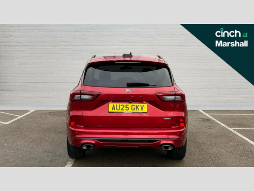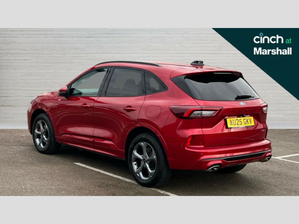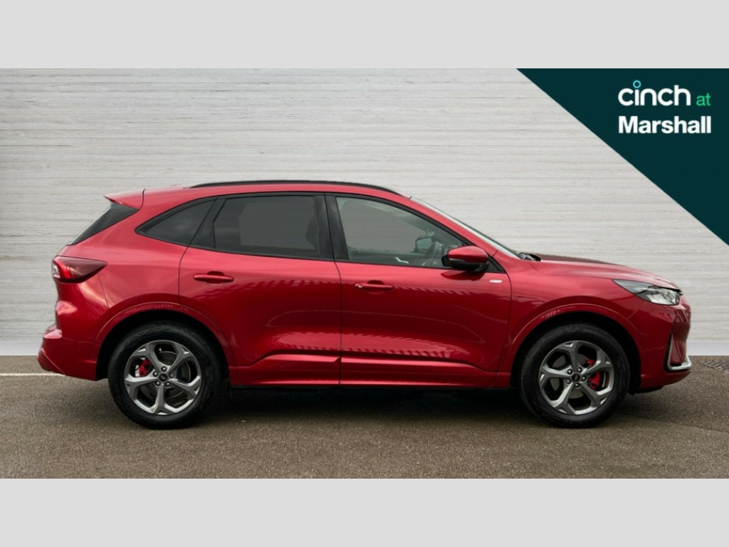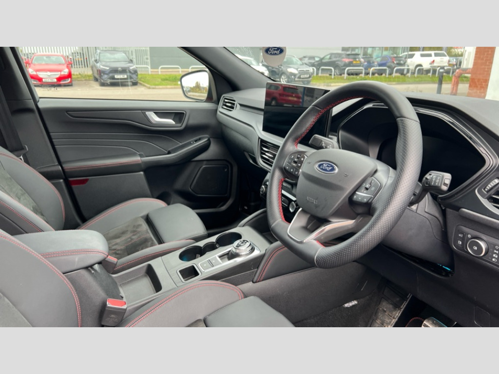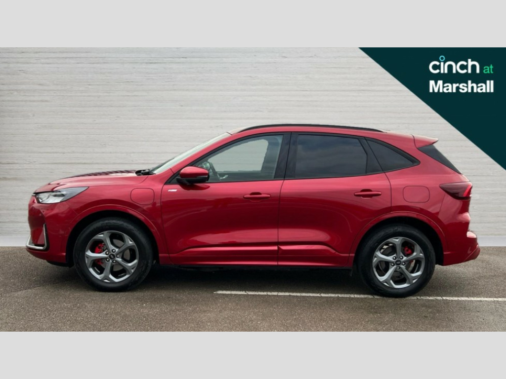 Ford Kuga 2.5 PHEV ST-Line 5dr CVT 12.3" digital colour instrument cluster, 360 degree camera, e-Call (emergency call), Ford easy fuel, Ford SYNC 4 Navigation with 13" touchscreen, DAB radio, emergency assistance, Andriod Auto/Apple CarPlay, 5G modem & Ford Pass connect, Front and rear parking sensors, Hands free power tailgate, Lane centering assist, Lane keeping aid with lane departure warning, Power assist steering, Selectable drive modes, Service interval indicator, 3-Pin Home charge cable (230V/16A Domestic socket), Sports suspension, Twist beam rear suspension, B&O premium audio system with 10 speakers, subwoofer and 2 USB ports, Auto headlamps with high and low beam, Black roof rails, Body colour bumpers, Front LED fog lamps, Large rear spoiler, LED daytime running lights, LED rear lights, Pop out door edge protectors, Power front/rear windows with global close, Power heated folding door mirrors with puddle lights, memory function and camera, Quickclear heated windscreen, Rain sensing wipers, Rear privacy glass, Rear side wing doors, Rear wiper, ST-Line body styling kit, Third brake light, 12 way ergonomic power adjust driver's seat with memory (AGR certified), 12 way ergonomic power adjust passenger seat (AGR certified), 2nd row sliding seats, Electronic automatic temperature control (EATC), Front and rear head restraints, Partial premium touch sensico upholstery, Rear centre head restraint, Single front passenger seat, Sports seats, Driver assistance pack with intelligent adaptive cruise control - Kuga FHEV/PHEV, 3x3 point rear seatbelts, Airbags - front driver/passenger, front and rear curtain, Drivers knee airbag, Dynamic brake support, Electronic stability control (ESC) and ABS, Evasive steering assist, Ford MyKey Gen 2 safety system, Manual child proof rear door locks, Pre collision assist with autonomous emergency braking, Rear seat Occupancy alert, Red brake calipers, Tyre pressure monitoring system, Engine immobiliser, Keyless entry and Ford power start button (Keyless start), Locking wheel nuts, Remote powered central double locking doors, Thatcham category 1 alarm