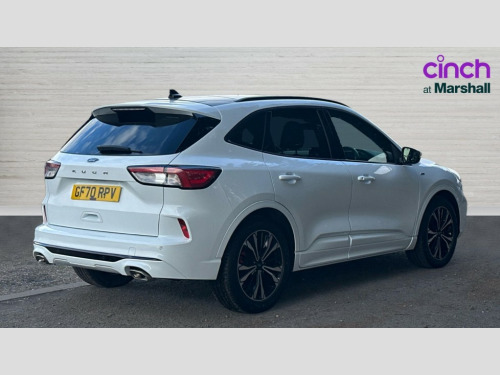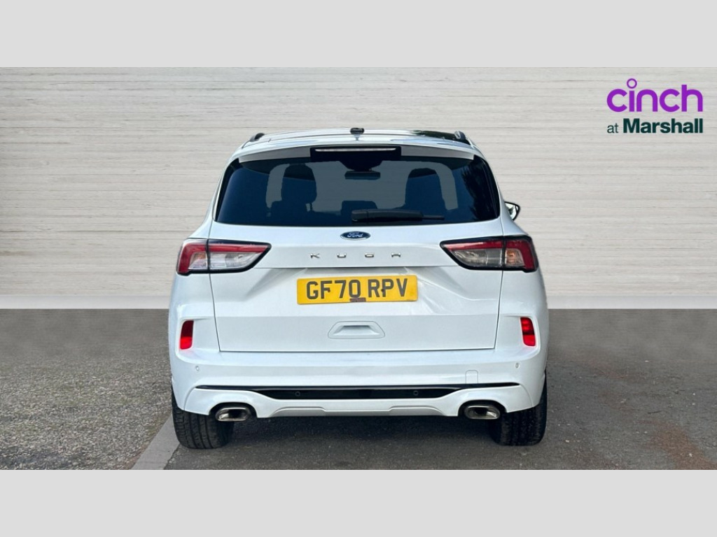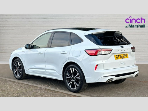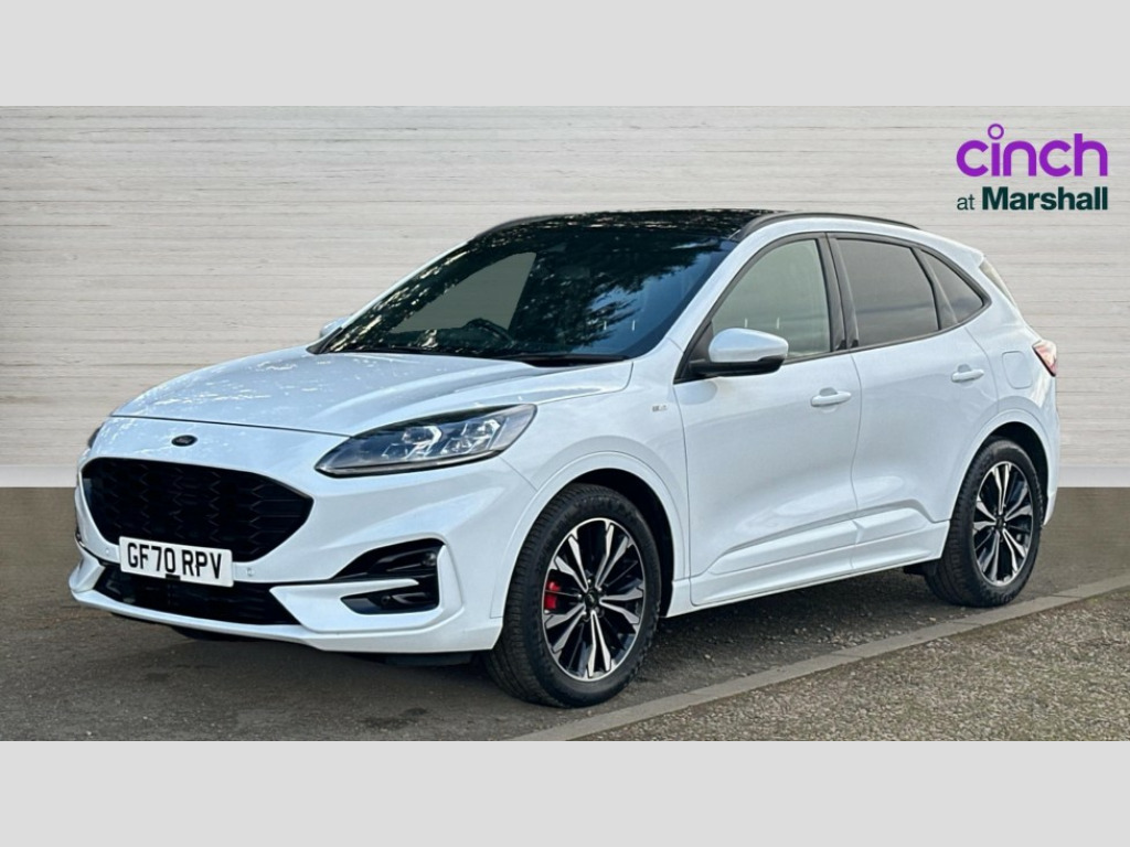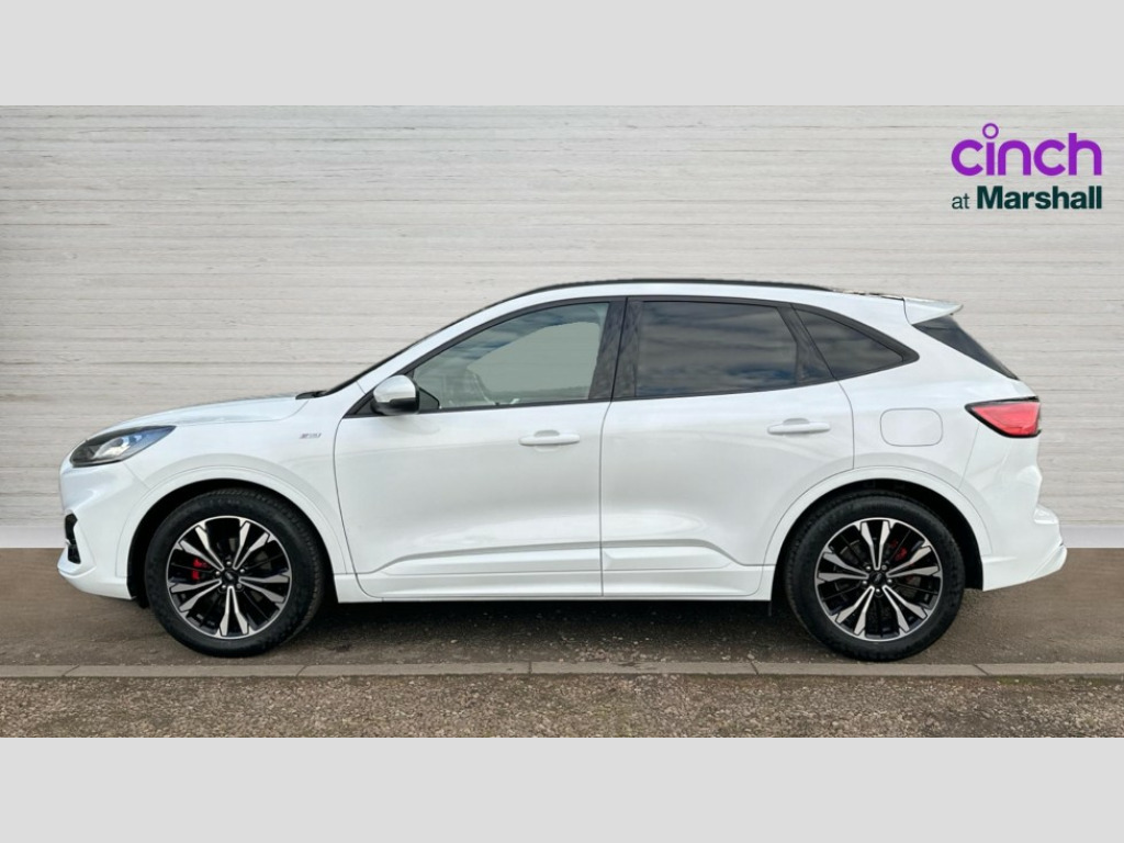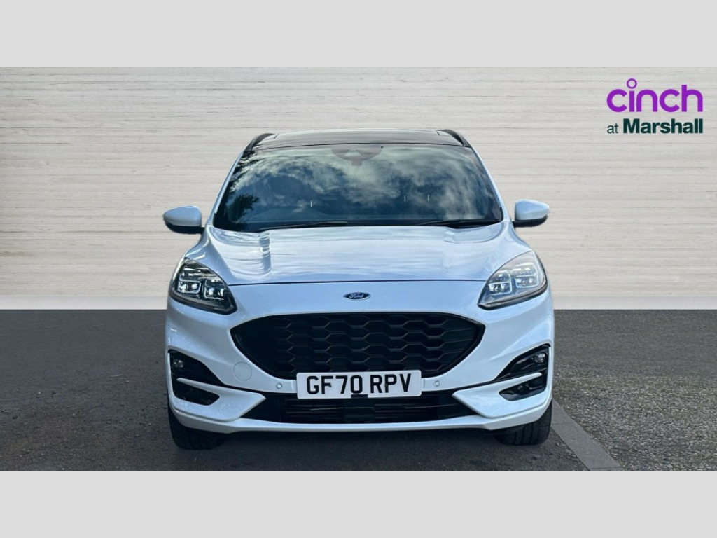 Ford Kuga 1.5 EcoBlue ST-Line X 5dr Driver impairment monitor, Ford easy fuel, Ford SYNC 3 with 8" colour touchscreen, App Link, andriod auto/apple carPlay and navigation with Ford pass connect, Front and rear parking sensors, Hands free power tailgate, Intelligent speed assist, Lane keeping aid with lane departure warning, Mobile phone wireless charging pad, Power assist steering, Selectable drive modes, Sports suspension, Auto dimming rear view mirror, Auto headlamps with high and low beam, Auto wipers, Black roof rails, Front LED fog lights with cornering function, Full LED headlamps, Large rear spoiler, LED daytime running lights, LED rear lights, Power folding heated door mirrors with puddle lights, Power front/rear windows with global close, Power opening panoramic roof, Privacy glass, Quickclear heated windscreen, ST Line body styling kit with unique front and rear fascia and bumper, rear painted diffuser, front painted skid plates, dark mesh upper grille, ST Line front scuff plates, Twin exhausts, 10 way power adjustable drivers seat, 2nd row sliding seats, 8 way manual passenger seat including lumbar support and height adjust, Alloy pedals, Ambient lighting, Centre console with electronic parking brake, Dark headlining and pillars, Dual electronic automatic temperature control, Flat bottomed leather steering wheel in sensico with red stitching, Front and rear head restraints, Heated passenger and driver seats, Rear charging point, Sensico partial premium leather upholstery, Sports seats, ST Line front and rear floor mats, Unique ST Line leather gear knob, B&O with large instrument cluster pack - Kuga, 3x3 point rear seatbelts, Airbags - front driver/passenger, front and rear curtain, Drivers knee airbag, Electronic stability control (ESC) and ABS, Ford MyKey Gen 2 safety system, Post collision braking, Powered child proof rear door locks, Pre collision assist with autonomous emergency braking, Red brake calipers, Tyre pressure monitoring system, Engine immobiliser, Keyless entry, Keyless start with 'Ford Power' starter button, Locking wheel nuts, Remote powered central double locking doors, Thatcham category 1 alarm