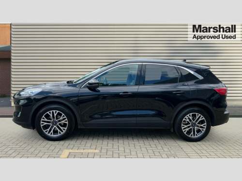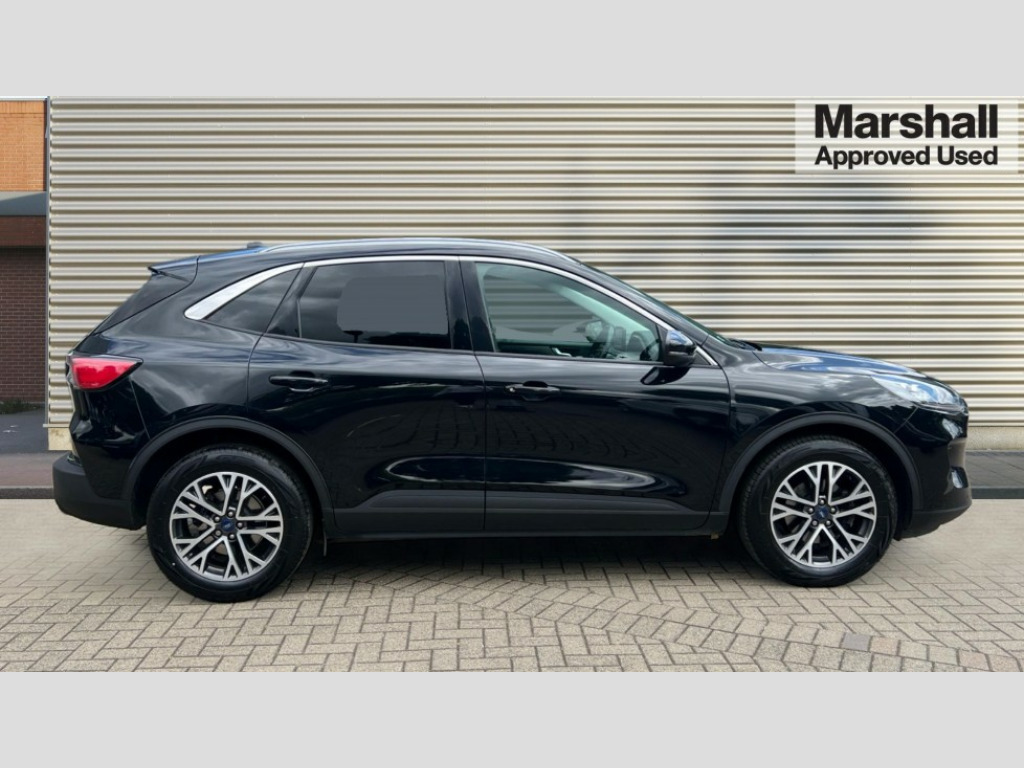 Find your perfect Ford Kuga today. 12.3" digital colour instrument cluster, Ford easy fuel, Ford SYNC 3 with 8" TFT LCD touchscreen, App Link, andriod auto/apple carPlay, emergency assistance and navigation with Ford pass connect, Front and rear parking sensors, Hands free power tailgate, Lane keeping aid with lane departure warning, Power assist steering, Rear view camera, Selectable drive modes, Service interval indicator, Standard suspension, Twist beam rear suspension, B&O premium audio system with 10 speakers and subwoofer, 2 USB ports, DAB radio/CD, Auto dimming rear view mirror, Auto headlamps with high and low beam, Auto wipers, Front LED fog lamps, LED daytime running lights, LED rear lights, Power folding heated door mirrors with puddle lights, Power front/rear windows with global close, Privacy glass, Quickclear heated windscreen, Rear spoiler, Silver roof rails, Third brake light, Twin exhausts, 10 way power adjustable drivers seat, 2nd row sliding seats with 60:40 split, 8 way manual passenger seat including lumbar support and height adjust, Ambient lighting, Centre console with electronic parking brake, Dual electronic automatic temperature control, Front and rear floor mats, Front and rear head restraints, Partial premium touch sensico leather upholstery with black cloth inserts, Rear charging point, Sports seats, 3x3 point rear seatbelts, Airbags - front driver/passenger, front and rear curtain, Drivers knee airbag, Electronic stability control (ESC) and ABS, Ford MyKey Gen 2 safety system, Manual child proof rear door locks, Post collision braking, Pre collision assist with autonomous emergency braking, Rear seat Occupancy alert, Tyre pressure monitoring system, Engine immobiliser, Keyless entry and Ford power start button (Keyless start), Locking wheel nuts, Remote powered central double locking doors, Thatcham category 1 alarm