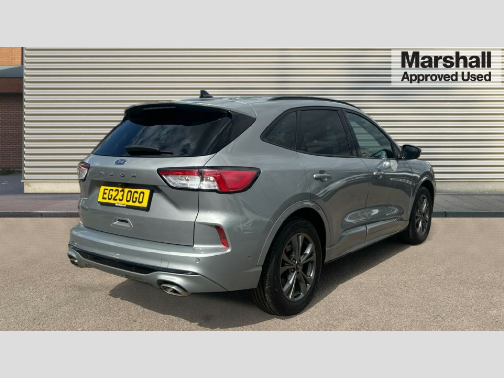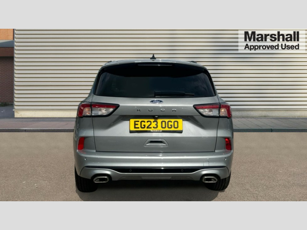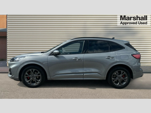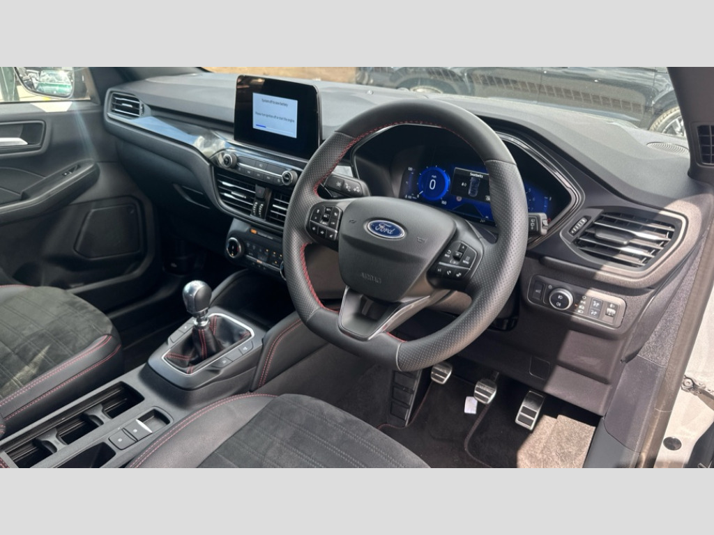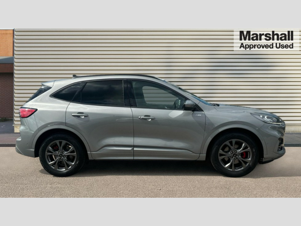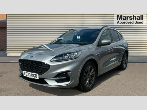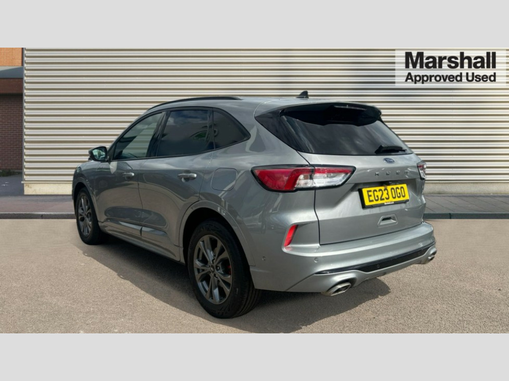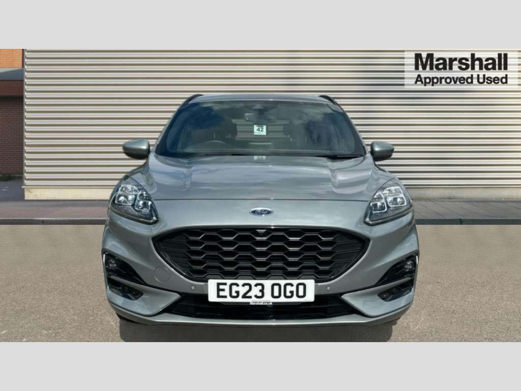 Ford Kuga 1.5 EcoBoost 150 ST-Line Edition 5dr 12.3" digital colour instrument cluster, Ford easy fuel, Ford SYNC 3 with 8" TFT LCD touchscreen, App Link, andriod auto/apple carPlay, emergency assistance and navigation with Ford pass connect, Front and rear parking sensors, Hands free power tailgate, Lane keeping aid with lane departure warning, Power assist steering, Rear view camera, Selectable drive modes, Service interval indicator, Sports suspension, Twist beam rear suspension, B&O premium audio system with 10 speakers and subwoofer, 2 USB ports, DAB radio/CD, Auto headlamps with high and low beam, Black roof rails, Body colour bumpers, Day/night rear view mirror, Front LED fog lamps, Large rear roof spoiler, LED daytime running lights, LED rear lights, Power folding, electrically adjustable and heated door mirrors with puddle lights, Power front/rear windows with global close, Quickclear heated windscreen, Rain sensing wipers, Rear privacy glass, Rear side wing doors, Rear wiper, ST Line body styling kit with unique front and rear fascia and bumper, rear painted diffuser, front painted skid plates, dark mesh upper grille, ST Line front scuff plates, Third brake light, Twin exhausts, 2nd row sliding seats with 60:40 split, Alloy pedals, Centre console with electronic parking brake, Dark headlining and pillars, Electronic automatic temperature control (EATC), Flat bottomed leather steering wheel in sensico with red stitching, Front and rear head restraints, Partial premium touch Sensico with black cloth inserts and red stitching, Rear centre head restraint, Single front passenger seat, Sports seats, ST Line front and rear floor mats, ST Line gear knob, 3x3 point rear seatbelts, Airbags - front driver/passenger, front and rear curtain, Drivers knee airbag, Electronic stability control (ESC) and ABS, Ford MyKey Gen 2 safety system, Manual child proof rear door locks, Post collision braking, Pre collision assist with autonomous emergency braking, Rear seat Occupancy alert, Red brake calipers, Tyre pressure monitoring system, Engine immobiliser, Keyless entry and Ford power start button (Keyless start), Locking wheel nuts, Remote powered central double locking doors, Thatcham category 1 alarm