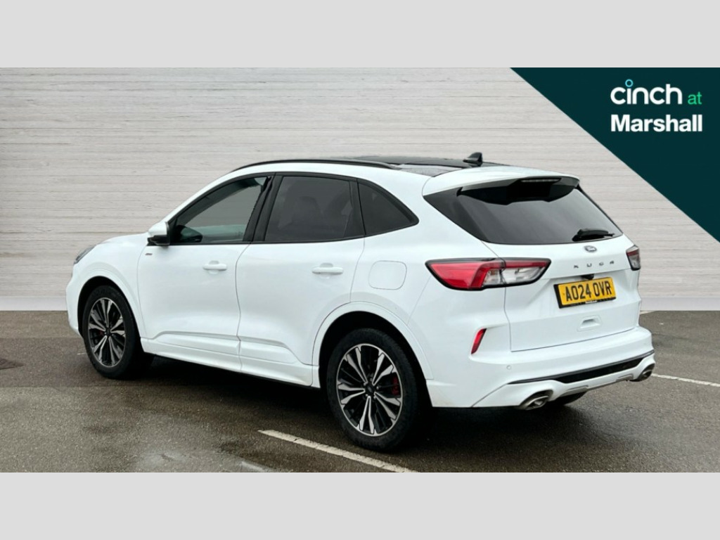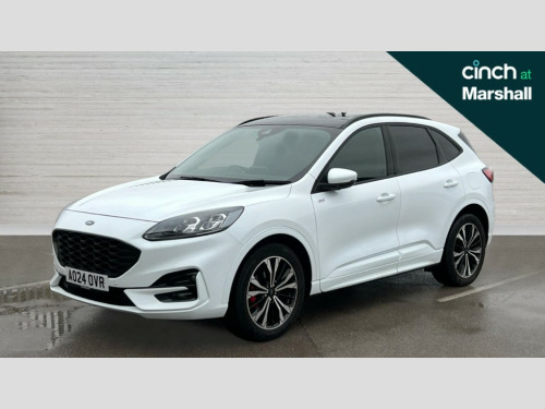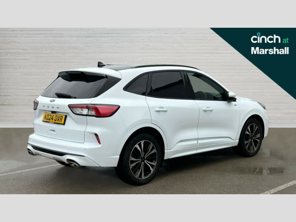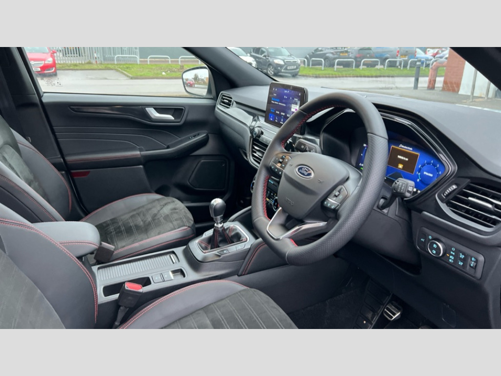 Ford Kuga 1.5 EcoBoost 150 ST-Line X Edition 5dr 12.3" digital colour instrument cluster, Ford easy fuel, Ford SYNC 3 with 8" TFT LCD touchscreen, App Link, andriod auto/apple carPlay, emergency assistance and navigation with Ford pass connect, Front and rear parking sensors, Hands free power tailgate, Lane keeping aid with lane departure warning, Power assist steering, Rear view camera, Selectable drive modes, Service interval indicator, Sports suspension, Twist beam rear suspension, B&O premium audio system with 10 speakers and subwoofer, 2 USB ports, DAB radio/CD, Auto headlamps with high and low beam, Black roof rails, Body colour bumpers, Day/night rear view mirror, Front LED fog lamps, Large rear roof spoiler, LED daytime running lights, LED rear lights, Power folding, electrically adjustable and heated door mirrors with puddle lights, Power front/rear windows with global close, Power opening panoramic roof, Quickclear heated windscreen, Rain sensing wipers, Rear privacy glass, Rear side wing doors, Rear wiper, ST Line body styling kit with unique front and rear fascia and bumper, rear painted diffuser, front painted skid plates, dark mesh upper grille, ST Line front scuff plates, Third brake light, Twin exhausts, 2nd row sliding seats with 60:40 split, Alloy pedals, Centre console with electronic parking brake, Dark headlining and pillars, Electronic automatic temperature control (EATC), Flat bottomed leather steering wheel in sensico with red stitching, Front and rear head restraints, Heated passenger and driver seats, Heated rear seats, Heated steering wheel, Partial premium touch Sensico with black cloth inserts and red stitching, Rear centre head restraint, Single front passenger seat, Sports seats, ST Line front and rear floor mats, ST Line gear knob, 3x3 point rear seatbelts, Airbags - front driver/passenger, front and rear curtain, Drivers knee airbag, Electronic stability control (ESC) and ABS, Ford MyKey Gen 2 safety system, Manual child proof rear door locks, Post collision braking, Pre collision assist with autonomous emergency braking, Rear seat Occupancy alert, Red brake calipers, Tyre pressure monitoring system, Engine immobiliser, Keyless entry and Ford power start button (Keyless start), Locking wheel nuts, Remote powered central double locking doors, Thatcham category 1 alarm