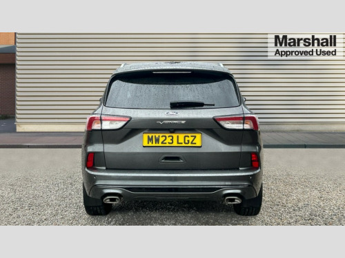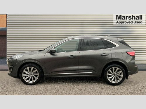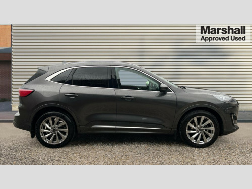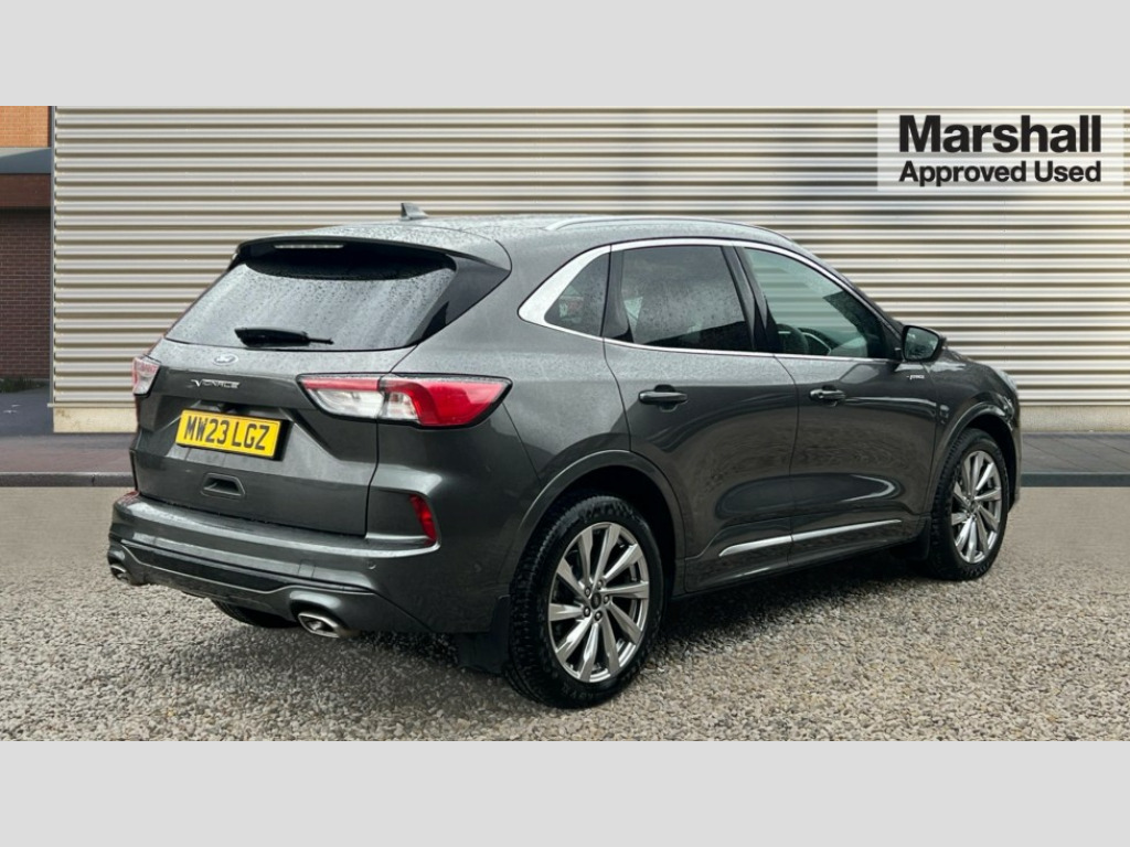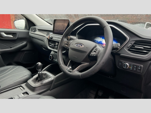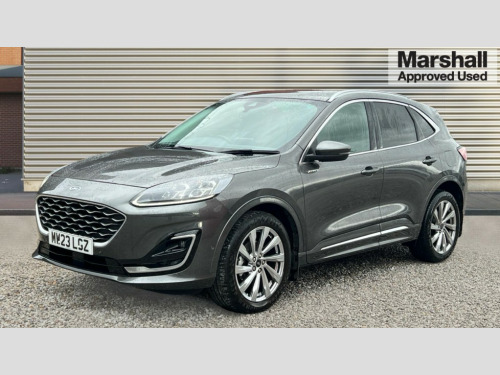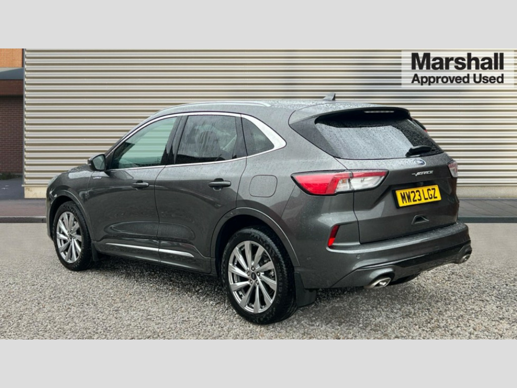 Ford Kuga 1.5 EcoBoost 150 Vignale 5dr 12.3" digital colour instrument cluster, Ford easy fuel, Ford SYNC 3 with 8" TFT LCD touchscreen, App Link, andriod auto/apple carPlay, emergency assistance and navigation with Ford pass connect, Front and rear parking sensors, Hands free power tailgate, Lane keeping aid with lane departure warning, Power assist steering, Rear view camera, Selectable drive modes, Service interval indicator, Standard suspension, Twist beam rear suspension, B&O premium audio system with 10 speakers and subwoofer, 2 USB ports, DAB radio/CD, Auto dimming rear view mirror, Auto headlamps with high and low beam, Auto wipers, Front and rear vignale fascia, Front LED fog lamps, LED daytime running lights, LED rear lights, Memory functionality with door mirrors, Power folding heated door mirrors with puddle lights, Power front/rear windows with global close, Privacy glass, Quickclear heated windscreen, Rear side wing doors, Rear spoiler, Rear wiper, Silver roof rails, Third brake light, Twin exhausts, Vignale body styling kit, Vignale front scuff plates, Vignale rear diffuser, 10 way power adjustable drivers seat with memory function, 2nd row sliding seats with 60:40 split, 8 way manual passenger seat including lumbar support and height adjust, Ambient lighting, Centre console with electronic parking brake, Electronic automatic temperature control (EATC), Front and rear head restraints, Heated passenger and driver seats, Heated rear seats, Heated steering wheel, Single front passenger seat, Vignale front and rear mats, Vignale premium touch sensico steering wheel, Vignale seating with premium leather upholstery, 3x3 point rear seatbelts, Airbags - front driver/passenger, front and rear curtain, Drivers knee airbag, Electronic stability control (ESC) and ABS, Ford MyKey Gen 2 safety system, Manual child proof rear door locks, Post collision braking, Pre collision assist with autonomous emergency braking, Rear seat Occupancy alert, Tyre pressure monitoring system, Engine immobiliser, Keyless entry and Ford power start button (Keyless start), Locking wheel nuts, Remote powered central double locking doors, Thatcham category 1 alarm, Leather wrapped instrument panel, 19" 5x2 spoke luster nickel alloy wheels