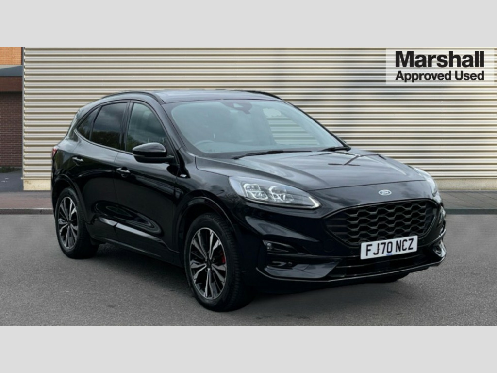Ford Kuga 2.0 EcoBlue 190 ST-Line X Edition 5dr Auto AWD Ford easy fuel, Front and rear parking sensors, Hands free power tailgate, Lane keeping aid with lane departure warning, Mobile phone wireless charging pad, Power assist steering, Selectable drive modes, Auto headlamps with high and low beam, Day/night rear view mirror, Front LED fog lamps, Halogen Projector Headlamps, Large rear spoiler, LED daytime running lights, LED rear lights, Power front/rear windows with global close, Power opening panoramic roof, Privacy glass, Quickclear heated windscreen, ST Line body styling kit with unique front and rear fascia and bumper, rear painted diffuser, front painted skid plates, dark mesh upper grille, ST Line front scuff plates, Twin exhausts, 10 way power adjustable drivers seat, 2nd row sliding seats with 60:40 split, Alloy pedals, Centre console with electronic parking brake, Dark headlining and pillars, Dual electronic automatic temperature control, Flat bottomed leather steering wheel in sensico with red stitching, Front and rear head restraints, Heated passenger and driver seats, Heated rear seats, Rear charging point, Sensico partial premium leather upholstery, Sports seats, ST Line front and rear floor mats, Steering wheel mounted paddle shift, B&O with large instrument cluster pack - Kuga, 3x3 point rear seatbelts, Airbags - front driver/passenger, front and rear curtain, Drivers knee airbag, Electronic stability control (ESC) and ABS, Ford MyKey Gen 2 safety system, Manual child proof rear door locks, Post collision braking, Pre collision assist with autonomous emergency braking, Red brake calipers, Tyre pressure monitoring system, Engine immobiliser, Keyless start with 'Ford Power' starter button, Locking wheel nuts, Remote powered central double locking doors, Thatcham category 1 alarm
