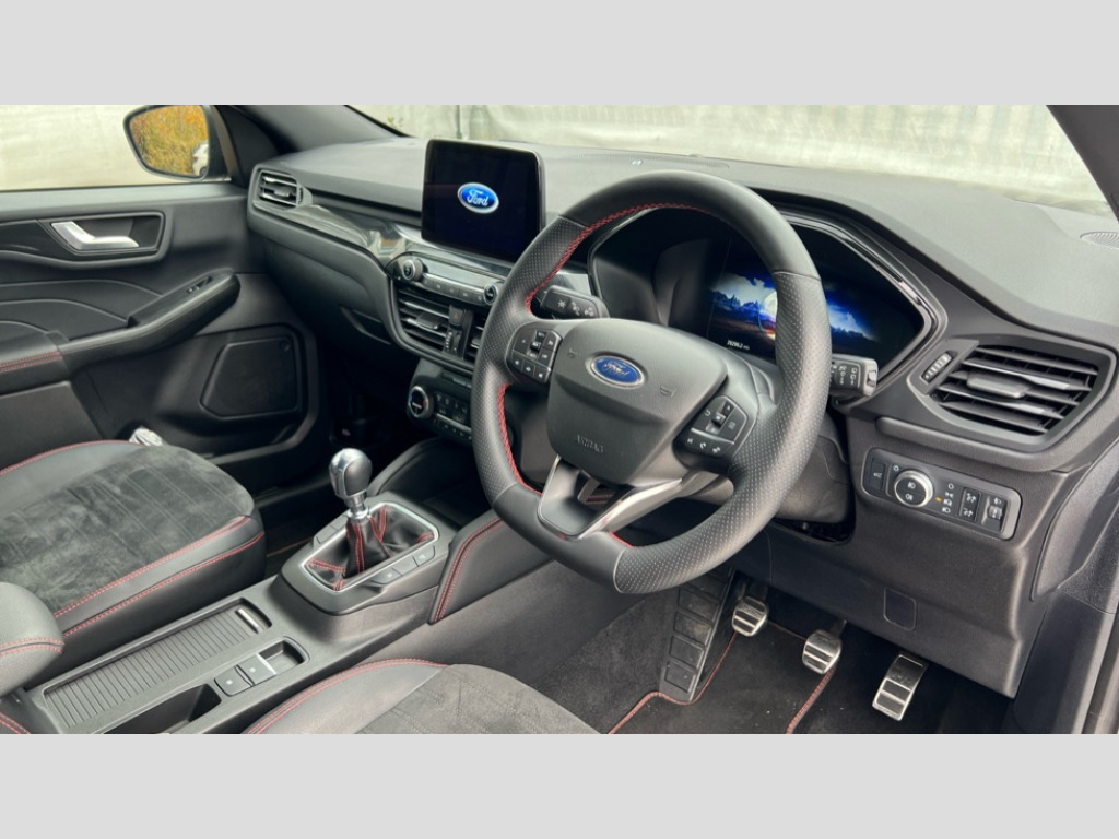 Ford Kuga 2.0 EcoBlue mHEV ST-Line X Edition 5dr 12.3" digital colour instrument cluster, Ford easy fuel, Ford SYNC 3 with 8" TFT LCD touchscreen, App Link, andriod auto/apple carPlay, emergency assistance and navigation with Ford pass connect, Front and rear parking sensors, Hands free power tailgate, Lane keeping aid with lane departure warning, Power assist steering, Rear view camera, Selectable drive modes, Service interval indicator, Sports suspension, Twist beam rear suspension, B&O premium audio system with 10 speakers and subwoofer, 2 USB ports, DAB radio/CD, Auto headlamps with high and low beam, Black roof rails, Day/night rear view mirror, Front LED fog lamps, Large rear spoiler, LED daytime running lights, LED rear lights, Power folding heated door mirrors with puddle lights, Power front/rear windows with global close, Power opening panoramic roof, Privacy glass, Quickclear heated windscreen, ST Line body styling kit with unique front and rear fascia and bumper, rear painted diffuser, front painted skid plates, dark mesh upper grille, ST Line front scuff plates, Third brake light, Twin exhausts, 10 way power adjustable drivers seat, 2nd row sliding seats with 60:40 split, 8 way manual passenger seat including lumbar support and height adjust, Alloy pedals, Centre console with electronic parking brake, Dark headlining and pillars, Dual electronic automatic temperature control, Flat bottomed leather steering wheel in sensico with red stitching, Front and rear head restraints, Heated passenger and driver seats, Heated rear seats, Heated steering wheel, Partial premium touch sensico leather upholstery with black cloth inserts and red stitching, Rear charging point, Sports seats, ST Line front and rear floor mats, ST Line gear knob, 3x3 point rear seatbelts, Airbags - front driver/passenger, front and rear curtain, Drivers knee airbag, Electronic stability control (ESC) and ABS, Ford MyKey Gen 2 safety system, Manual child proof rear door locks, Post collision braking, Pre collision assist with autonomous emergency braking, Rear seat Occupancy alert, Red brake calipers, Tyre pressure monitoring system, Engine immobiliser, Keyless entry and Ford power start button (Keyless start), Locking wheel nuts, Remote powered central double locking doors, Thatcham category 1 alarm