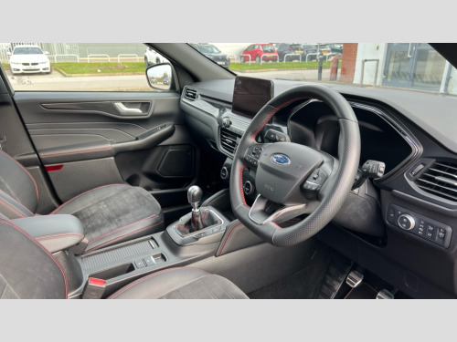 Ford Kuga 2.0 EcoBlue mHEV ST-Line X Edition 5dr 12.3" digital colour instrument cluster, Ford easy fuel, Ford SYNC 3 with 8" TFT LCD touchscreen, App Link, andriod auto/apple carPlay, emergency assistance and navigation with Ford pass connect, Front and rear parking sensors, Hands free power tailgate, Lane keeping aid with lane departure warning, Power assist steering, Rear view camera, Selectable drive modes, Service interval indicator, Sports suspension, Twist beam rear suspension, B&O premium audio system with 10 speakers and subwoofer, 2 USB ports, DAB radio/CD, Auto headlamps with high and low beam, Black roof rails, Day/night rear view mirror, Front LED fog lamps, Large rear spoiler, LED daytime running lights, LED rear lights, Power folding heated door mirrors with puddle lights, Power front/rear windows with global close, Power opening panoramic roof, Privacy glass, Quickclear heated windscreen, ST Line body styling kit with unique front and rear fascia and bumper, rear painted diffuser, front painted skid plates, dark mesh upper grille, ST Line front scuff plates, Third brake light, Twin exhausts, 10 way power adjustable drivers seat, 2nd row sliding seats with 60:40 split, 8 way manual passenger seat including lumbar support and height adjust, Alloy pedals, Centre console with electronic parking brake, Dark headlining and pillars, Dual electronic automatic temperature control, Flat bottomed leather steering wheel in sensico with red stitching, Front and rear head restraints, Heated passenger and driver seats, Heated rear seats, Heated steering wheel, Partial premium touch sensico leather upholstery with black cloth inserts and red stitching, Rear charging point, Sports seats, ST Line front and rear floor mats, ST Line gear knob, 3x3 point rear seatbelts, Airbags - front driver/passenger, front and rear curtain, Drivers knee airbag, Electronic stability control (ESC) and ABS, Ford MyKey Gen 2 safety system, Manual child proof rear door locks, Post collision braking, Pre collision assist with autonomous emergency braking, Rear seat Occupancy alert, Red brake calipers, Tyre pressure monitoring system, Engine immobiliser, Keyless entry and Ford power start button (Keyless start), Locking wheel nuts, Remote powered central double locking doors, Thatcham category 1 alarm