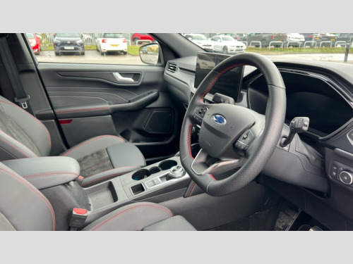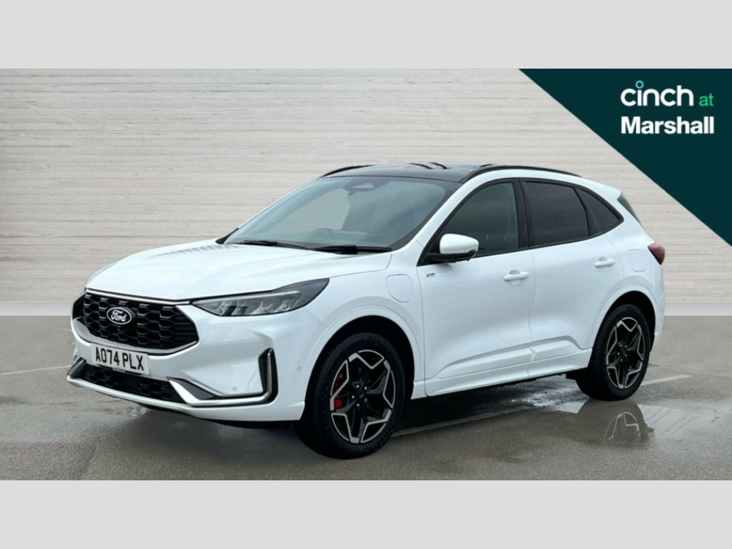 Ford Kuga 2.5 PHEV ST-Line X 5dr CVT 12.3" digital colour instrument cluster, 360 degree camera, e-Call (emergency call), Ford easy fuel, Ford SYNC 4 Navigation with 13" touchscreen, DAB radio, emergency assistance, Andriod Auto/Apple CarPlay, 5G modem & Ford Pass connect, Front and rear parking sensors, Hands free power tailgate, Lane centering assist, Lane keeping aid with lane departure warning, Power assist steering, Selectable drive modes, Service interval indicator, 3-Pin Home charge cable (230V/16A Domestic socket), Sports suspension, Twist beam rear suspension, B&O premium audio system with 10 speakers, subwoofer and 2 USB ports, Auto headlamps with high and low beam, Black roof rails, Body colour bumpers, Front LED fog lamps, Large rear spoiler, LED daytime running lights, LED rear lights, Pop out door edge protectors, Power front/rear windows with global close, Power heated folding door mirrors with puddle lights, memory function and camera, Power opening panoramic roof, Quickclear heated windscreen, Rain sensing wipers, Rear privacy glass, Rear side wing doors, Rear wiper, ST-Line body styling kit, Third brake light, 12 way ergonomic power adjust driver's seat with memory (AGR certified), 12 way ergonomic power adjust passenger seat (AGR certified), 2nd row sliding seats, Electronic automatic temperature control (EATC), Front and rear head restraints, Partial premium touch sensico upholstery, Rear centre head restraint, Single front passenger seat, Sports seats, Driver assistance pack with intelligent adaptive cruise control - Kuga FHEV/PHEV, Winter pack - Kuga, 3x3 point rear seatbelts, Airbags - front driver/passenger, front and rear curtain, Drivers knee airbag, Dynamic brake support, Electronic stability control (ESC) and ABS, Evasive steering assist, Ford MyKey Gen 2 safety system, Manual child proof rear door locks, Pre collision assist with autonomous emergency braking, Rear seat Occupancy alert, Red brake calipers, Tyre pressure monitoring system, Engine immobiliser, Keyless entry and Ford power start button (Keyless start), Locking wheel nuts, Remote powered central double locking doors, Thatcham category 1 alarm