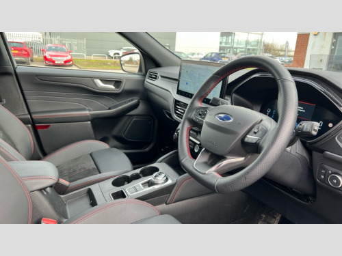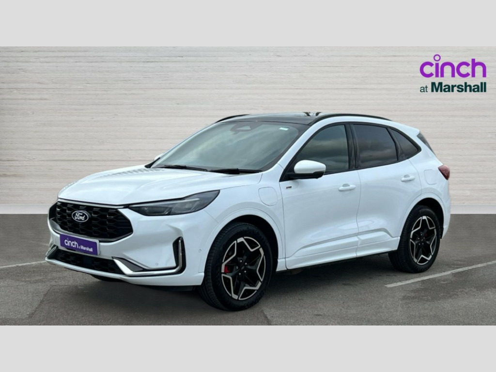 Ford Kuga 2.5 PHEV ST-Line X 5dr CVT 12.3" digital colour instrument cluster, 360 degree view camera, e-Call (emergency call), Ford easy fuel, Ford SYNC 4 Navigation with 13" touchscreen, DAB radio, emergency assistance, Andriod Auto/Apple CarPlay, 5G modem & Ford Pass connect, Front and rear parking sensors, Hands free power tailgate, Lane centering assist, Lane keeping aid with lane departure warning, Power assist steering, Selectable drive modes, Service interval indicator, 3-Pin Home charge cable (230V/16A Domestic socket), Sports suspension, Twist beam rear suspension, B&O premium audio system with 10 speakers, subwoofer and 2 USB ports, Auto headlamps with high and low beam, Black roof rails, Body colour bumpers, Front LED fog lamps, Large rear spoiler, LED daytime running lights, LED rear lights, Pop out door edge protectors, Power front/rear windows with global close, Power heated folding door mirrors with puddle lights, memory function and camera, Power opening panoramic roof, Quickclear heated windscreen, Rain sensing wipers, Rear privacy glass, Rear side wing doors, Rear wiper, ST-Line body styling kit, Third brake light, 12 way ergonomic power adjust driver's seat with memory (AGR certified), 12 way ergonomic power adjust passenger seat (AGR certified), 2nd row sliding seats, Electronic automatic temperature control (EATC), Front and rear head restraints, Partial premium touch sensico upholstery, Rear centre head restraint, Single front passenger seat, Sports seats, Driver assistance pack with intelligent adaptive cruise control - Kuga FHEV/PHEV, Winter pack - Kuga, 3x3 point rear seatbelts, Airbags - front driver/passenger, front and rear curtain, Drivers knee airbag, Dynamic brake support, Electronic stability control (ESC) and ABS, Evasive steering assist, Ford MyKey Gen 2 safety system, Manual child proof rear door locks, Pre collision assist with autonomous emergency braking, Rear seat Occupancy alert, Red brake calipers, Tyre pressure monitoring system, Engine immobiliser, Keyless entry and Ford power start button (Keyless start), Locking wheel nuts, Remote powered central double locking doors, Thatcham category 1 alarm