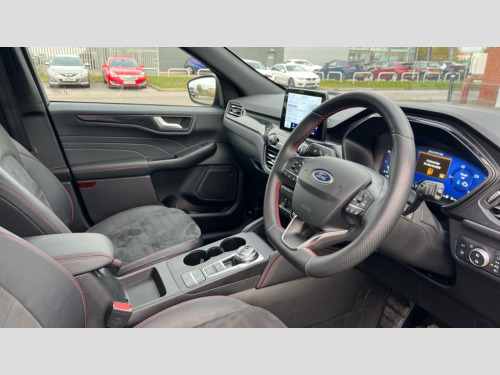 Ford Kuga 2.5 PHEV ST-Line X Edition 5dr CVT 12.3" digital colour instrument cluster, Ford easy fuel, Ford SYNC 3 with 8" TFT LCD touchscreen, App Link, andriod auto/apple carPlay, emergency assistance and navigation with Ford pass connect, Front and rear parking sensors, Geo awareness, Hands free power tailgate, Lane keeping aid with lane departure warning, Power assist steering, Rear view camera, Selectable drive modes, Service interval indicator, 3-Pin Home charge cable (230V/16A Domestic socket), 3.7 kW monophase on board charger, Sports suspension, Twist beam rear suspension, B&O premium audio system with 10 speakers and subwoofer, 2 USB ports, DAB radio/CD, Auto headlamps with high and low beam, Black roof rails, Day/night rear view mirror, Front LED fog lamps, Large rear spoiler, LED daytime running lights, LED rear lights, Power folding heated door mirrors with puddle lights, Power front/rear windows with global close, Power opening panoramic roof, Privacy glass, Quickclear heated windscreen, Rear side wing doors, Rear wiper, ST Line body styling kit with unique front and rear fascia and bumper, rear painted diffuser, front painted skid plates, dark mesh upper grille, ST Line front scuff plates, Third brake light, Twin exhausts, 10 way power adjustable drivers seat, 2nd row sliding seats with 60:40 split, 8 way manual passenger seat including lumbar support and height adjust, Alloy pedals, Centre console with electronic parking brake, Dark headlining and pillars, Electronic automatic temperature control (EATC), Flat bottomed leather steering wheel in sensico with red stitching, Front and rear head restraints, Heated passenger and driver seats, Heated rear seats, Heated steering wheel, Partial premium touch sensico leather upholstery with black cloth inserts and red stitching, Rear charging point, Single front passenger seat, Sports seats, ST Line front and rear floor mats, 3x3 point rear seatbelts, Airbags - front driver/passenger, front and rear curtain, Drivers knee airbag, Electronic stability control (ESC) and ABS, Ford MyKey Gen 2 safety system, Manual child proof rear door locks, Post collision braking, Pre collision assist with autonomous emergency braking, Rear seat Occupancy alert, Red brake calipers, Tyre pressure monitoring system, Engine immobiliser, Keyless entry and Ford power start button (Keyless start), Locking wheel nuts, Remote powered central double locking doors, Thatcham category 1 alarm