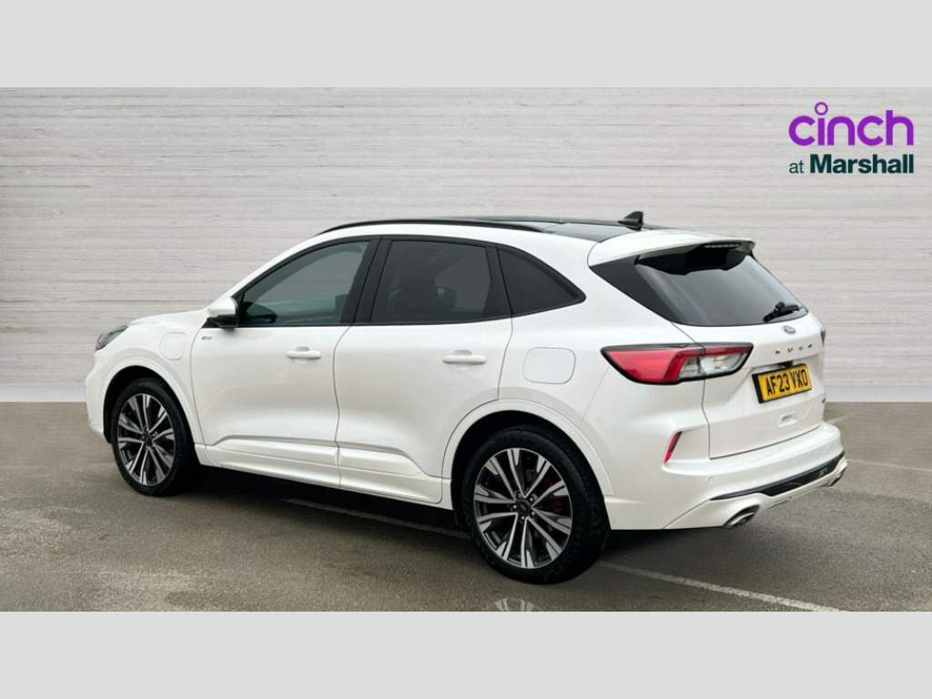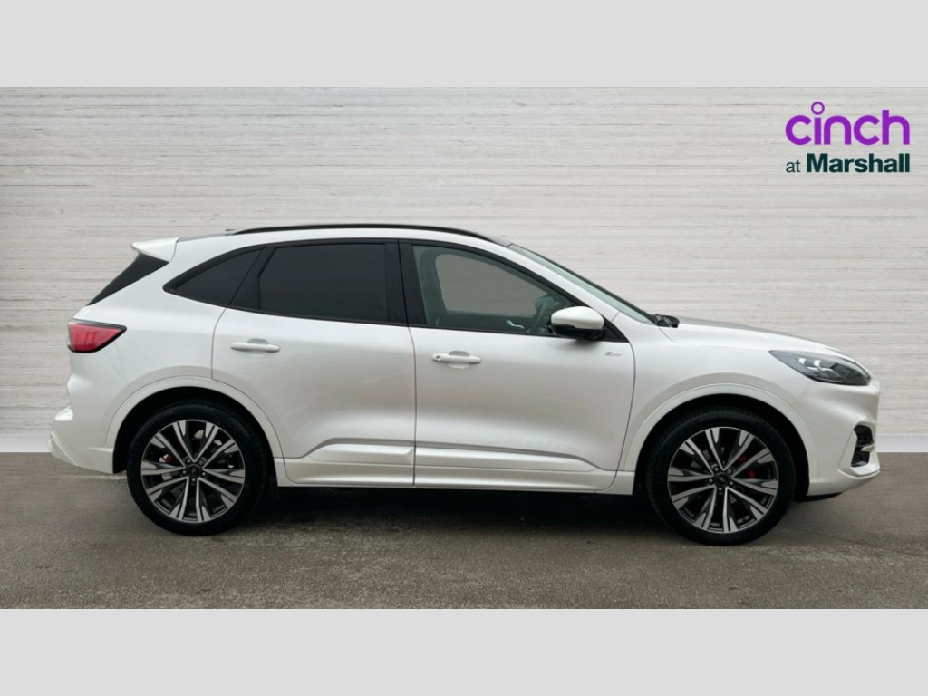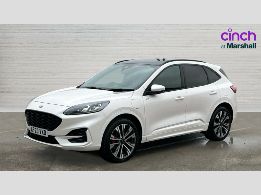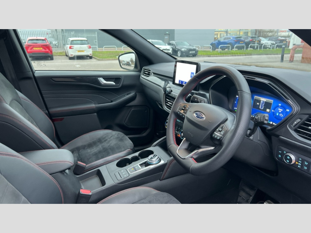 Ford Kuga 2.5 PHEV ST-Line X Edition 5dr CVT 12.3" digital colour instrument cluster, Ford easy fuel, Ford SYNC 3 with 8" TFT LCD touchscreen, App Link, andriod auto/apple carPlay, emergency assistance and navigation with Ford pass connect, Front and rear parking sensors, Geo awareness, Hands free power tailgate, Lane keeping aid with lane departure warning, Power assist steering, Rear view camera, Selectable drive modes, Service interval indicator, 3-Pin Home charge cable (230V/16A Domestic socket), 3.7 kW monophase on board charger, Sports suspension, Twist beam rear suspension, B&O premium audio system with 10 speakers and subwoofer, 2 USB ports, DAB radio/CD, Auto headlamps with high and low beam, Black roof rails, Day/night rear view mirror, Front LED fog lamps, Large rear spoiler, LED daytime running lights, LED rear lights, Power folding heated door mirrors with puddle lights, Power front/rear windows with global close, Power opening panoramic roof, Privacy glass, Quickclear heated windscreen, Rear side wing doors, Rear wiper, ST Line body styling kit with unique front and rear fascia and bumper, rear painted diffuser, front painted skid plates, dark mesh upper grille, ST Line front scuff plates, Third brake light, Twin exhausts, 10 way power adjustable drivers seat, 2nd row sliding seats with 60:40 split, 8 way manual passenger seat including lumbar support and height adjust, Alloy pedals, Centre console with electronic parking brake, Dark headlining and pillars, Electronic automatic temperature control (EATC), Flat bottomed leather steering wheel in sensico with red stitching, Front and rear head restraints, Heated passenger and driver seats, Heated rear seats, Heated steering wheel, Partial premium touch sensico leather upholstery with black cloth inserts and red stitching, Rear charging point, Single front passenger seat, Sports seats, ST Line front and rear floor mats, 3x3 point rear seatbelts, Airbags - front driver/passenger, front and rear curtain, Drivers knee airbag, Electronic stability control (ESC) and ABS, Ford MyKey Gen 2 safety system, Manual child proof rear door locks, Post collision braking, Pre collision assist with autonomous emergency braking, Rear seat Occupancy alert, Red brake calipers, Tyre pressure monitoring system, Engine immobiliser, Keyless entry and Ford power start button (Keyless start), Locking wheel nuts, Remote powered central double locking doors, Thatcham category 1 alarm