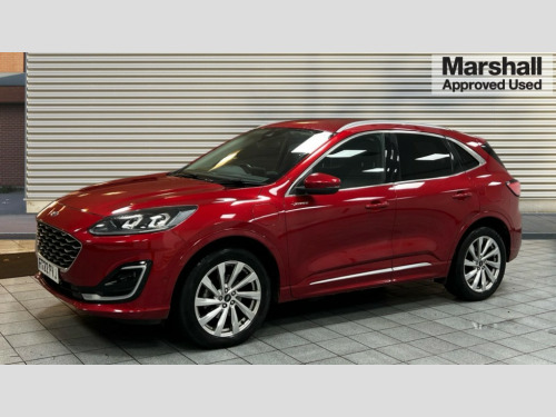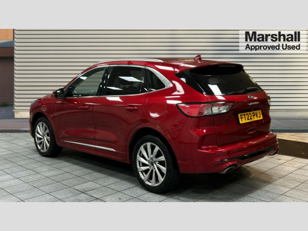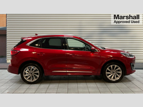 Ford Kuga 2.5 PHEV Vignale 5dr CVT 12.3" digital colour instrument cluster, Active noise cancellation, Ford easy fuel, Ford SYNC 3 with 8" TFT LCD touchscreen, App Link, andriod auto/apple carPlay, emergency assistance and navigation with Ford pass connect, Front and rear parking sensors, Geo awareness, Hands free power tailgate, Lane keeping aid with lane departure warning, Power assist steering, Rear view camera, Selectable drive modes, Service interval indicator, 3-Pin Home charge cable (230V/16A Domestic socket), 3.7 kW monophase on board charger, Standard suspension, Twist beam rear suspension, B&O premium audio system with 10 speakers and subwoofer, 2 USB ports, DAB radio/CD, Auto dimming rear view mirror, Auto headlamps with high and low beam, Auto wipers, Front and rear vignale fascia, Front LED fog lamps, LED daytime running lights, LED rear lights, Memory functionality with door mirrors, Power folding heated door mirrors with puddle lights, Power front/rear windows with global close, Privacy glass, Quickclear heated windscreen, Rear side wing doors, Rear spoiler, Rear wiper, Silver roof rails, Third brake light, Twin exhausts, Vignale body styling kit, Vignale front scuff plates, Vignale rear diffuser, 10 way power adjustable drivers seat with memory function, 2nd row sliding seats with 60:40 split, 8 way manual passenger seat including lumbar support and height adjust, Ambient lighting, Centre console with electronic parking brake, Dual electronic automatic temperature control, Front and rear head restraints, Heated passenger and driver seats, Heated rear seats, Heated steering wheel, Rear charging point, Single front passenger seat, Vignale front and rear mats, Vignale premium touch sensico steering wheel, Vignale seating with premium leather upholstery, 3x3 point rear seatbelts, Airbags - front driver/passenger, front and rear curtain, Drivers knee airbag, Electronic stability control (ESC) and ABS, Ford MyKey Gen 2 safety system, Manual child proof rear door locks, Post collision braking, Pre collision assist with autonomous emergency braking, Rear seat Occupancy alert, Tyre pressure monitoring system, Engine immobiliser, Keyless entry and Ford power start button (Keyless start), Locking wheel nuts, Remote powered central double locking doors, Thatcham category 1 alarm, Leather wrapped instrument panel, 19" 5x2 spoke luster nickel alloy wheels