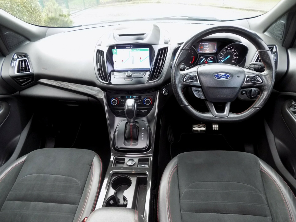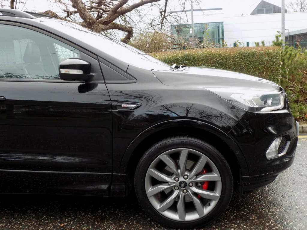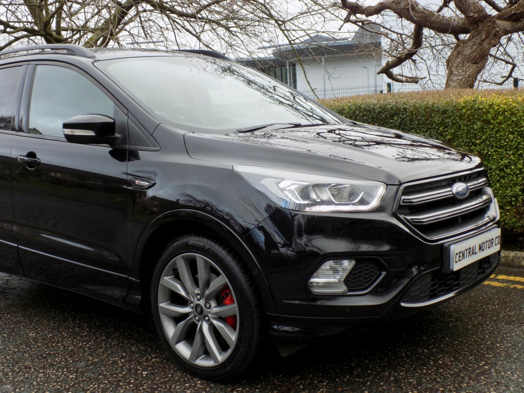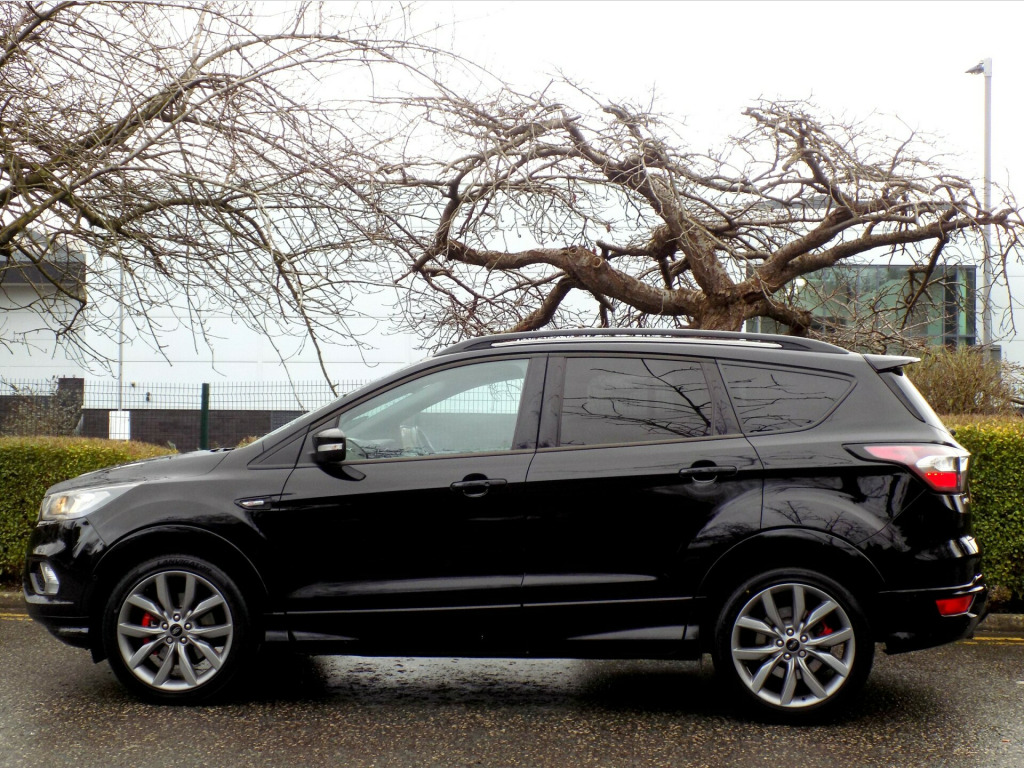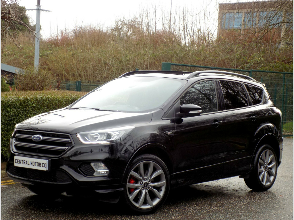 We Are Delighted To Offer For Sale This Stunning Looking Top Of The Range 2019 FORD KUGA 2.0 TDCI 180 ST-Line Edition 5dr Auto SUV 5dr Diesel Euro 6. Rare 180 bhp AWD Automatic Diesel Model. It Is In Very Excellent Overall Condition Finished In Shadow BLACK Metallic Paintwork, V5 Shows Just 1 Former Keeper From New Comes Complete With Full Service History + A Brand New Advisory Free MoT - Expires June 2026, Recent Full Service Carried Out Along With The All-Important Cambelt Kit + Water Pump Replacement, This Vehicle Has Been Well Cared For And Maintained, Fabulous Smooth Drive, No Dash Warning Lights, Find The Full List Of Specification And Details Below:Massive Spec With Full Screen Sat Nav With Ford SYNC 3, DAB, Bluetooth, Touch Screen Monitor, Electric Panoramic Tilt + Slide Glass Opening Sun Roof With Electric Sunblind, ST -Line Style Pack, Black Suede/Leather Seats With Red Contrast Stitching, 19'' Alloy Wheels Finished in Anthracite Grey (Unmarked Condition), Auto Lights & Wipers, Auto High Beam, Roof Bars, Keyless Entry + Power Button Start, Front & Rear Parking Sensors, Active Park Assist (Car Parks Itself) Apple Car Play, DAB Radio, External AUX Connection, USB Connectivity, Bluetooth Telephone Prep, Multi Coloured Ambient Interior Lighting, Dual Zone Climate Control, Leather Multifunctional Steering Wheel, Paddle-Shift Gear Change, Cruise Control, Electric Heated Fold In Mirrors, Privacy Glass, Isofix Etc!! All HPI Clear. Comes With Original Book Pack / Manuals All Contained Within Original Audi Wallet. The Car Further Benefits From 2 Keys, The V5/C Registration Document And Current MOT Certificate With NO ADVISORIES Are Both Present And Correct, Nationwide Delivery Available At Additional Cost.NATIONWIDE DELIVERY AVAILABLE AT ADDITIONAL COST (Please Message With Your Postcode For A Quote).,