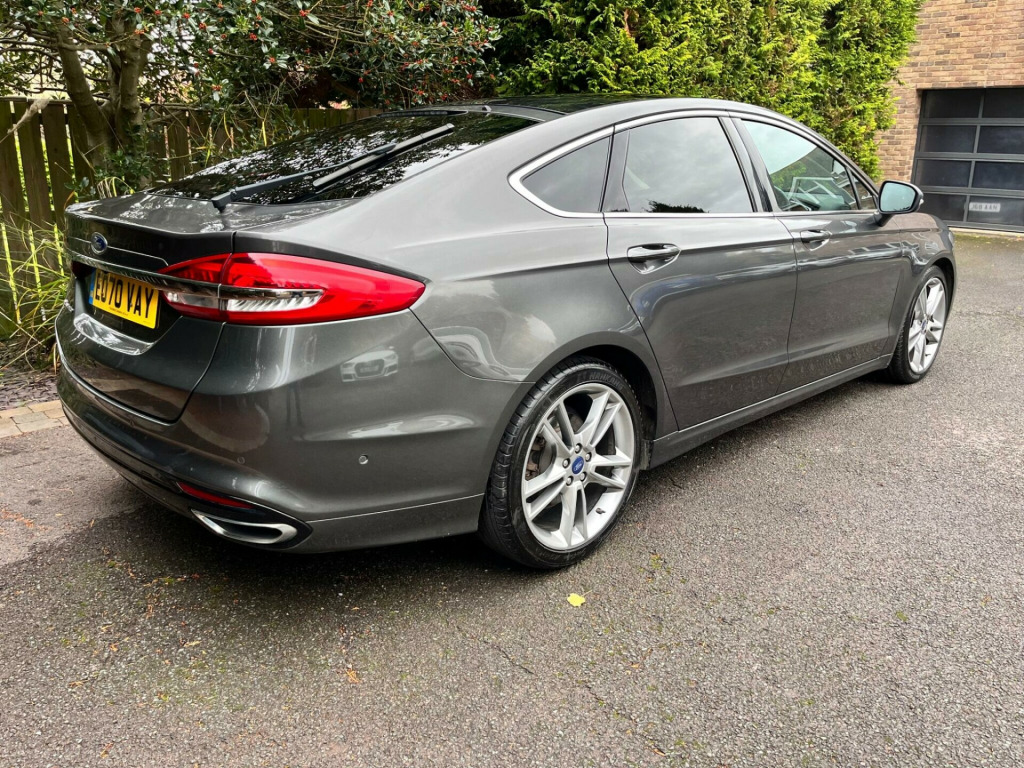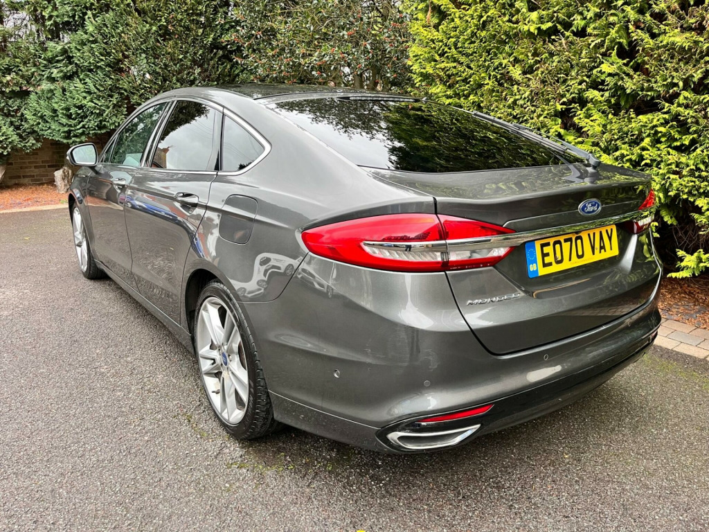 One former keeper with full Ford service history.This 2020 Ford Mondeo Titanium Edition offers a refined driving experience with its powerful 2.0L Diesel Euro 6 engine. As a Titanium Edition model, it comes equipped with a fantastic specification including glass panoramic roof with electric blind, full black leather upholstery,heated seats,electric seats with driver memory,reverse camera, self parking system,front and rear parking sensors,satellite navigation, comfort access with push button start, 19”alloy wheels ,sophisticated rotary gearshift knob and paddle shift steering wheel for precise control. You'll also appreciate the convenience of automatic headlights with auto high-low beam, and the comfort of rear compartment air conditioning alongside the main air conditioning system. The dual chrome finish exhaust adds a touch of style to the rear of this well appointed vehicle.The Mondeo Titanium Edition excels with its impressive acceleration, achieving 0-62mph in just 8.9 seconds, demonstrating its responsive performance. This capability, combined with its large boot space, makes it a practical choice for families and those needing ample storage. These features collectively highlight how this Mondeo offers a superior blend of performance, comfort, and utility compared to other vehicles in its class.. 10-Way Driver and Passenger Power Seats - Drivers Seat with Memory, 10in Colour TFT Instrument Cluster Display, 18in Alloy Wheels - Flash Grey Machined Finish, Active Shutter Grille, Air Conditioning - Dual Zone Electronic Automatic Temperature Control, Airbags - Driver and Front Passenger, Airbags - Drivers Knee Bolster, Airbags - Drivers and Front Passenger Side Airbag, Airbags - Drivers and Passengers 1st and 2nd and 3rd Row Side Curtain, Airbags - Passenger Deactivation, Anti-Lock Braking System - ABS with Electronic Brake Force Distribution - EBD, Auto Dimming Rear View Mirror, Automatic Headlights with Auto High-Low Beam, Bodycolour Bumper and Side Rocker Mouldings, Centre Console with Fixed Leather-Trimmed Armrest - Stowage and Cup Holders, Chrome Finish to Side Window Surround, Courtesy Lights - Multi-Colour Ambient Lighting, Courtesy Lights - Theatre-Style Dimming, Courtesy light - 2nd Row Reading Lights, Cruise Control with Adjustable Speed Limiter, Door Handles - Body Colour, Door Mirrors - Power-Operated-Heated and Power-Foldable with Side Indicators and Puddle Lights, Electric Parking Brake, Emergency Assistance, Exhaust - Dual Chrome Finish, Ford DAB Audio with Touchscreen Navigation System with 8 Speakers, Ford Easy Fuel System, FordPass Connect, Front Fog Lights with LED Daytime Running Lights, Front Lower Grille - High Gloss with Chrome Surround, Front Seats - Sports Style, Gearshift Knob - Leather-Trimmed, Gearshift Knob - Rotary, Headlights - Halogen Projector Headlights, IPS - Intelligent Protection System, ISOFIX Child Safety Seat Attachments on 2nd Row Outer Seats, Keyless Entry and Start System, Lane Keeping Aid with Traffic Sign Recognition, Load Compartment Floor Hooks x 4, Locking Wheel Nuts, Locks - Child Proof Rear, Overhead Console - Sunglasses Holder, Parking Sensor - Front and Rear, Power Steering, Pre-Collision Assist with Autonomous Emergency Braking and Pedestrian-Cyclist Detection, Quickclear Heated Front Windscreen, Rain Sensing Front Windscreen Wipers, Rear Compartment Air Conditioning, Rear Floor Mats, Rear Lights - LED, Rear Seats - 60-40 Split Non-Sliding - Fold Flat, Scuff Plates - Bright Finish Front Door, Steering Column - Rake and Reach Adjustment, Steering Wheel - Leather-Trimmed, Steering Wheel - Paddle Shift, Stowage Pockets - Driver and Front Passenger Seatbacks, Thatcham Category 1 Alarm, Tyre Inflator Kit, Tyre Pressure Monitoring System - TPMS, Upper Grille Surround - Chrome Finish, Variable Heated Driver and Passenger Seat, Windows - Power Front and Rear with Global Closing, Wipers - Rear Wash-Wipe - Intermittent, Panorama Roof with Fixed Glass, 19in Alloy Wheels - Luster Nickel.