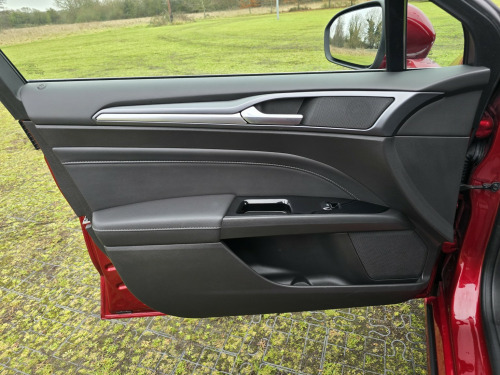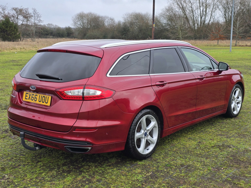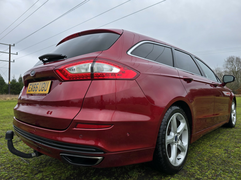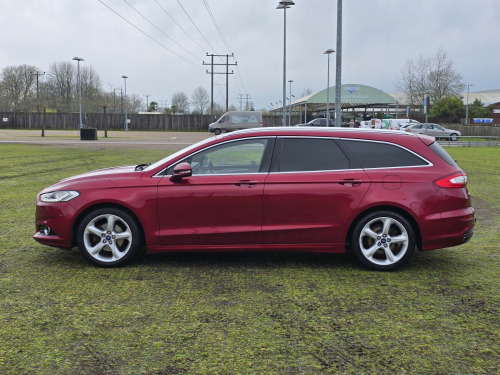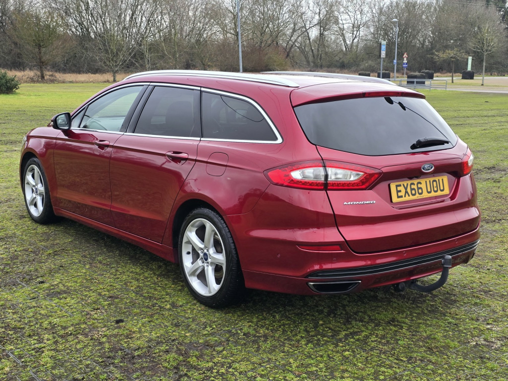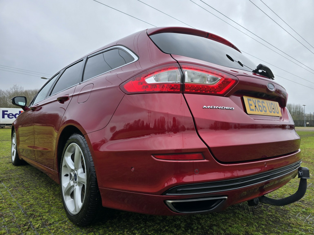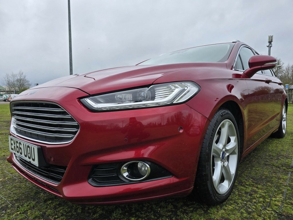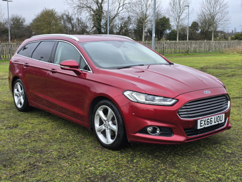 We are delighted to offer this stunning Ford Mondeo 2.0T Titanium Estate, finished in Superb Ruby Red Metallic Paint over a full Black leather interior. Please watch our detailed Internal/External video showing the excellent condition this car is in. Complimented with a Full Service History (mainly at Ford then at independent garages) We have just given the car a major service ready for the new owner. We will also happily put a 12 Month MOT on it for the new owner. Recently had new front brakes and 4 x new tyres. Starts straight on the button and drives exactly as it should with no faults. The 240BHP 2.0 Turbo engine pulls well through all the gears which shift smoothly up and down the box. Has a massive spec, Including: Auto Adaptive LED Lights with High Beam Assist, Bluetooth, Apple Car Play/Android Auto, DAB Radio, SAT-Nav, Dual Zone Climate Control with AC (Blows Ice Cold) Heated Front Seats, Heated Leather Steering Wheel, Reversing Camera, Front and Rear Parking Sensors, Blind Spot Assist, Lane Keep Assist, Electric Windows, Keyless Entry/Start and much more! Will come with a 6 Month Comprehensive Warranty, Competitive Finance Available Subject to Status. 2 x Keys, MOT until June 26 - can MOT if new owner wishes.