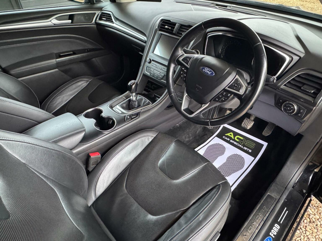 Here at AQS Car Specialist we take pride in being one of the few highly rated dealers for our customer service from Autotrader working closely together so we can go the extra mile to make sure you are getting the best service out there. All vehicles undergo a full visual and Mechanical health inspection, driven and tested. All essential work carried out with no expense spared. We offer an extended nation wide warranty with the option to extend up to 36 months, giving our customers full peace of mind and security when purchasing a car from AQS car specialists. Any inspection welcome, Test drive welcome, Part exchanges welcome. All dealer facilities available on site. Here at AQS Car Specialist we are delighted to offer this exceptionally well maintained example of a Ford Mondeo 2.0 TDCi Titanium Edition. Finished in Black with a matching full Black leather interior alongside 18 inch alloys. Recently serviced and complimented by a full and up to date service history as well as a long MOT with no advisories. In fantastic condition both inside and out, this is a great example of how a Mondeo should drive ! These Mondeos are renown for their stylish looks, comfortable cabin, being very reliable and low maintenance. This particular example benefits from being fitted with some must have features which include, Dual Zone Climate Controlled Air Conditioning, Cruise Control, Touch Screen Sat Nav, Bluetooth Connectivity, DAB Radio, USB Input, Auto Headlights with High Beam Assist, Rain Sensing Front Wipers, Front and Rear Parking Sensors, Lane Keep Assist, Keyless Entry, Keyless Start, Hill Start Assist, Electrically Adjustable and Heated Front Seats, Stop/Start Function, MultiFunctional Steering Wheel, AutoDimming Rear View Mirror, Power Folding Side Mirrors, Electrically Adjustable and Heated Side Mirrors and the super useful Split Fold Rear Bench amongst all the usual Ford refinements.