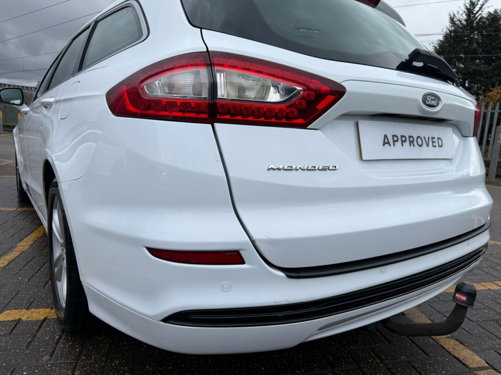 2 KEYS, ULEZ FREE, FRESH SERVICE (TOTAL 5 SERVICES), 1 FORMER KEEPER, NAVIGATION, BLUETOOTH,, MOT 31/05/2026This 2015 Ford Mondeo 2.0 TDCi Titanium Estate 5dr Diesel Powershift Euro 6 (s/s) (150 ps) is a reliable and spacious family car with 77800 miles on the clock, making it a great option for long distance journeys. With its efficient diesel engine, this estate vehicle is ULEZ compliant and has an MOT that expires on 31/05/2026, offering peace of mind for the future. The car boasts 5 seats and 5 doors, providing ample space for passengers and cargo. Inside, it features modern amenities such as an 8in Touchscreen Colour Display, Bluetooth Handsfree Phone System, and Bluetooth Audio Streaming, making it a convenient and enjoyable drive. Whether for daily commutes or road trips, this Ford Mondeo is a practical and stylish choice for discerning drivers. v power socket - front, 8in touchscreen colour display, aux connection, bluetooth - audio streaming, bluetooth handsfree phone system, emergency assistance, ford dab audio system, ford dab navigation system, ford sync2, radio - cd player, radio antenna in glass, sd card reader, speakers - x8, tmc - traffic message channel, usb connection x2, 17in alloy wheels - 5 spoke - silver, body colour bumpers, body colour exterior mirrors, body colour side mouldings, chrome surround to side windows, door handles - body colour, door mirrors - puddle lights, door mirrors with integrated indicators, electric windows - front and rear with one touch, electric windows - global opening-closing, ford easy fuel system, front grille - body coloured, front lower grille - high gloss with chrome surround, front upper grille - chrome finish surround, heated front windscreen, heated washer jets, locking wheel nuts, mini steel spare wheel, power fold door mirrors, roof rails - chrome finish, scuff plates - front, abs - anti-lock braking system, airbags - curtain, airbags - curtain rear, airbags - drivers knee, airbags - front passenger, airbags - passenger deactivation, airbags - side impact, drivers airbag, eba - emergency brake assist, ebd - electronic brakeforce distribution, esp - electronic stability programme, electric parking brake, hill start assist, ips - intelligent protection system, isofix - child seat attachments, lane keeping aid, power rear door child locks, remote central locking, thatcham category 1 alarm, traction control - tc, air conditioning - dual zone electronic automatic temperature control, ambient lighting, armrest - folding centre - rear, armrest - front with stowage, automatic dimming rear view mirror, automatic rain sensing wipers, centre console - two cup holders, courtesy light - 2nd row reading lights, cupholders - rear, front seat - passenger manual height fore-aft adjustment, front seatback map pockets - driver and passenger, gear knob - leather, keyless start, load compartment - tie down hooks, lockable glovebox, pollen filter, rear air conditioning, seats - 60-40 rear split back, seats - drivers height adjustment, seats - front lumbar support, seats - front sports, ski hatch, steering column - rake and reach adjustment, steering wheel - leather, steering wheel - multifunction, steering wheel - paddle shift, sunglasses holder, tonneau cover, cruise control with speed limiter, gearshift indicator light, power steering, tft instrument cluster display, tsr - traffic sign recognition, tyre pressure monitoring system, voice control, daytime running lamps, front fog lights with dynamic cornering, headlights - automatic, headlights - automatic high beam assist, headlights - courtesy delay, headlights - halogen projector, headlights - levelling system - manual, rear lights - led