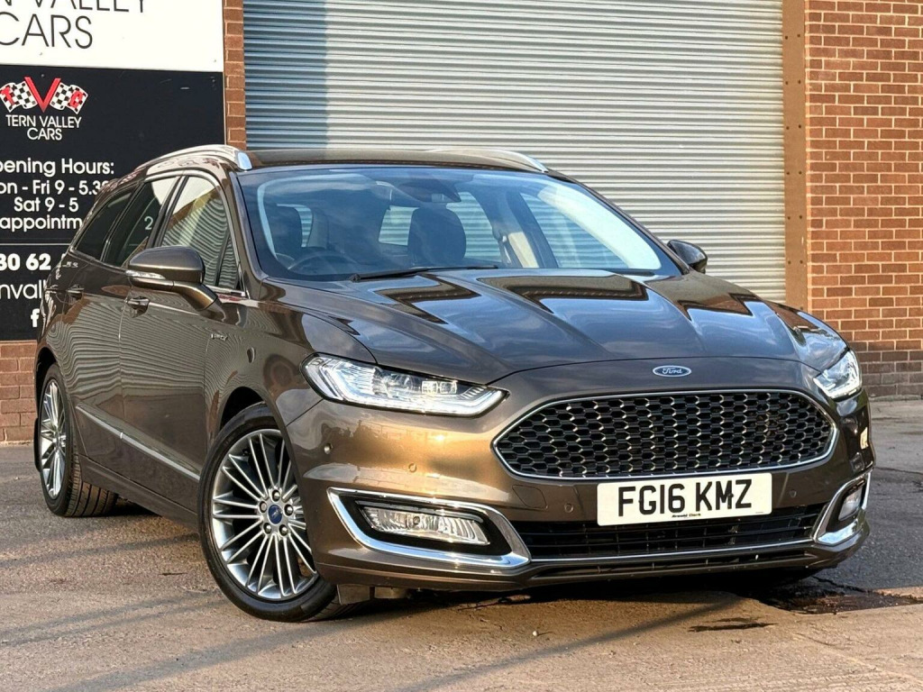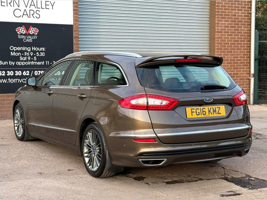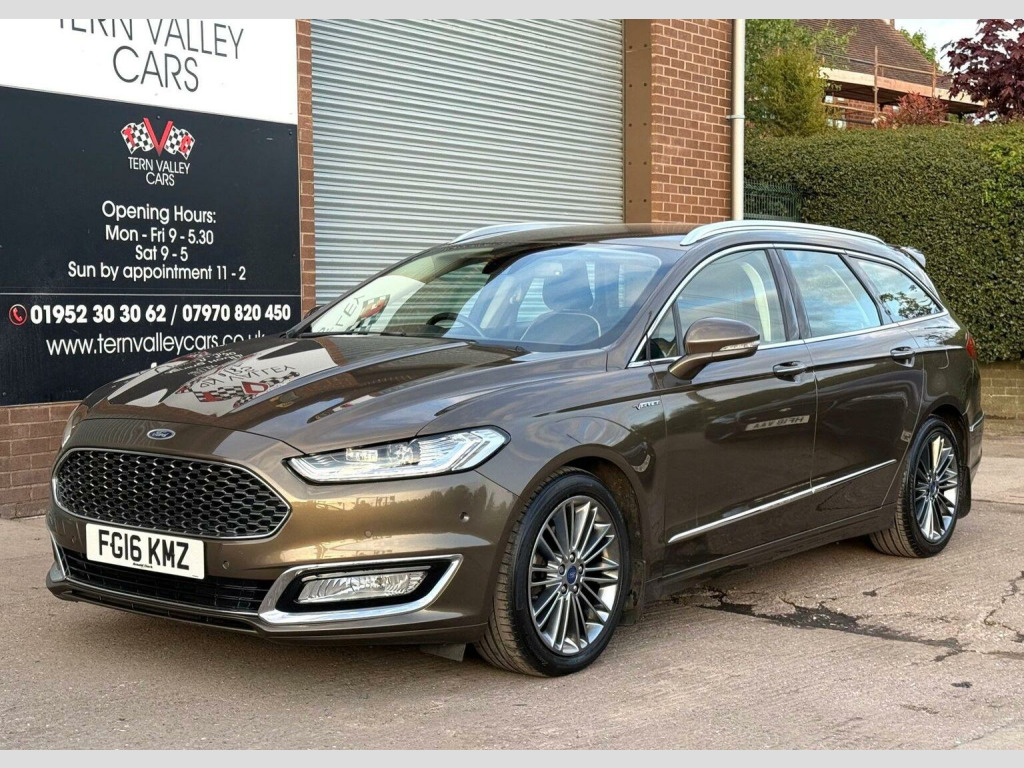 Fabulous high spec smooth to drive estate & very low mileage for its age, this top of the range 2016 Ford Mondeo 2.0 TDCi Vignale offers an exceptional opportunity to own a well-maintained vehicle. In subtle Hazlenut Nocciola Metallic with bespoke Charcoal Vignale leather interior. Powered by a 2.0L diesel engine and meeting Euro 6 emission standards, this high specification automatic Mondeo estate comes with a full service history, with the last service performed on 26th February 2025 at 55603 miles. For added peace of mind, it also includes a 6-month warranty and current MOT valid until March 2026. a new 12 months MOT this week. Enjoy the convenience of features such as keyless entry, active park assist, and a power-adjustable steering column. Satnav DAB radio media system with USB & Bluetooth. Climate air-conditioning, cruise control & multi-function leather steering wheel. The inclusion of drivers memory & heated front seats, tow bar & a dog guard further enhances the practicality and comfort of this good sized family vehicle. We sell with 6 Months Warranty Wise Platinum Warranty. 2 x remote keys & all Handbooks. What a lovely car. 12 Months AA Breakdown Membership included. AA Driveaway 5 Day Insurance available - Only £44.99 NEED FINANCE? No Problem - SAF Registered. Simply click Apply for finance on our website www.ternvalleycars.co.uk. We are a FCA registered dealership. Prime or subprime finance. Excellent finance rates starting from as low as 11.1% APR (Subject to status and terms and conditions) which can be altered on deposit. For any further information and details to view please contact David, who has over 50 years personal Motor Trade experience. This Mondeo stands out with its impressive acceleration, reaching 0-62mph in just 8.1 seconds, demonstrating its superior performance compared to similar models. With just 57000 miles on the clock, this Ford Mondeo Vignale is a refined and reliable choice for discerning drivers