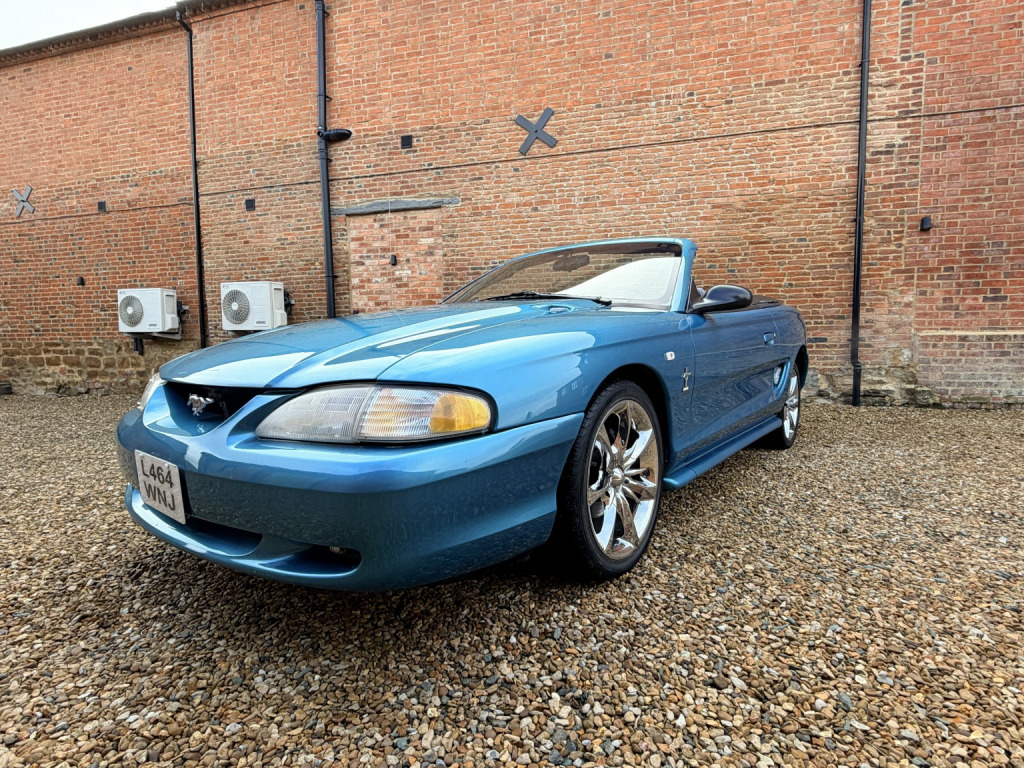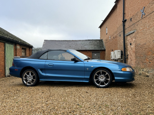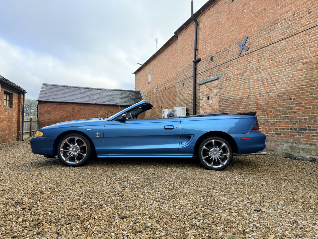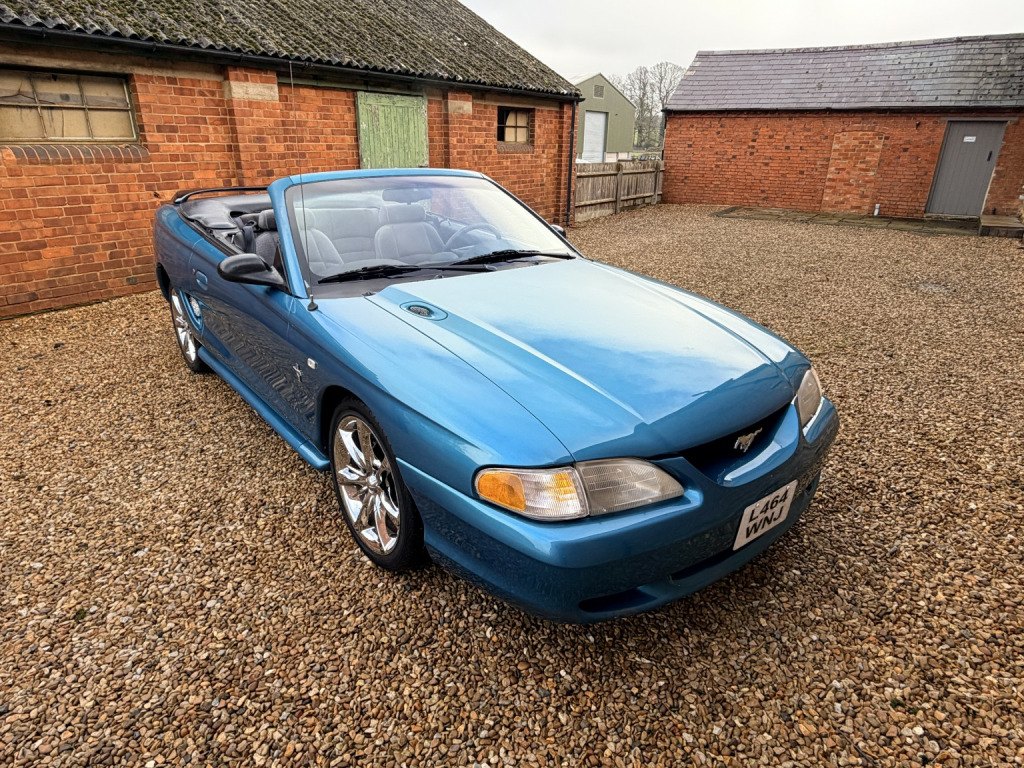 1994 Ford Mustang 3.8 Convertible Automatic. Metallic blue with grey cloth upholstery and a black electric soft top. Heres a proper slice of 1990s Americana, a 1994 Ford Mustang 3.8 Convertible, presented in classic SN95 form and offered as a genuine, usable modern classic. This was the model that marked a new chapter for the Mustang, blending unmistakable heritage styling with improved comfort, drivability, and everyday usability. Powered by Fords proven 3.8 litre V6, this Mustang delivers smooth, relaxed torque perfectly suited to cruising, paired here with an automatic transmission with overdrive that makes it an effortless and enjoyable drive. Power steering adds to the laid-back character, while the soundtrack and road presence remain unmistakably Mustang. This example has covered 87,000 miles and has clearly been cared for. It benefits from an electric soft top, allowing open-top motoring at the press of a button, and sits on aftermarket chrome alloy wheels that suit the cars bold, confident stance. Mechanically, it has recently seen money spent in the right areas, including new front lower suspension arms and front coil springs, helping ensure it drives as it should. It comes with a long MOT until December 2026, offering immediate peace of mind for the next owner. A history file accompanies the car, containing old invoices, previous MOTs, and the original dealer book pack, which is always a reassuring sign for enthusiasts and collectors alike. This Mustang has just arrived with us in part exchange and is priced to clear and priced to sell, making it an excellent opportunity to acquire an affordable, characterful American convertible. Ideal as a summer cruiser, weekend fun car, or an accessible entry into classic American motoring. A lot of car, a lot of presence, and unmistakable Mustang appeal, ready to be enjoyed straight away. For further details, please dont hesitate to get in touch. Additional high-quality photos and an exclusive video are available on our website and Facebook page. *** Please note this is a part exchange car to clear and not part of our approved used program and has not been through our workshop. MOT December 2026. ***