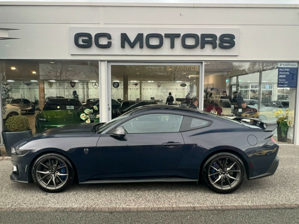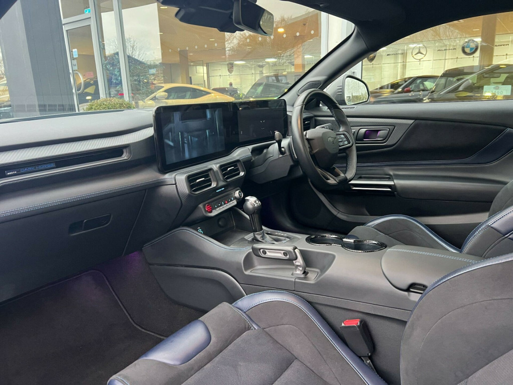 Due in 22/11, 1 Owner Car, 5.0 V8 Dark Horse SelShift.Factory Options: Dark Horse Appearance Package (Exclusive Blue Ember Paint, Dark Notorious Blue Calipers with Grabber Blue Logo, Deep Indigo Blue Seats with Unique Perforation), Recaro Seats. Standard Specification: Dark Horse Specific Body Kit with Exclusive Aerodynamic Enhancements (Front Splitter, Side Skirts, Rear Spoiler, Rear Diffuser), 19” Unique Aluminium Forged Alloys, MagneRide Damping System with Pothole Mitigation, Active Valve Exhaust System with 4 Modes, Quiet Start, Track Apps (Acceleration Timer, Brake Performance, Lap Timer, Drift Brake, Line Lock), Adaptive Cruise Control with Adjustable Speed Limiter, 12-Speaker Bang & Olufsen Surround Sound Audio System, Wireless Smartphone Integration (Apple CarPlay, Android Auto), MyColour Ambient Lighting (28 Colours), Wireless Charging, Keyless Entry & Start System, Heated Leather Flat-Bottomed Steering Wheel with Blue Stitching & Dark Horse Badging,6-Way Power Front Seat Adjuster, Rear View Camera with Rear Parking Sensors, Lane Keeping Aid with Lane Keeping Assist, Pre-Collision Assist with Autonomous Emergency Braking & Pedestrian-Cyclist Detection, Emergency Brake Assist, Exit Warning, Blind Spot Information, Cross-Traffic Alert, Cross-Traffic Braking, Driver Alert, Dual Electronic Automatic Temperature Control, Selectable Drive Modes, Dark Triple-LED Headlamps, LED Rear Lights, Customisable 12.4” Digital Cluster, Customisable 13.2” Touchscreen, Connected Navigation, DAB Radio. This car does not have a panoramic roof.All our cars are HPI clear. Please contact us for your own personal video presentation of this particular car. We offer competitive finance rates with our in-house team from PCP, lease purchase and HP. Whilst we make every effort to ensure that the specification and technical information for the cars on our website is correct, some of it is supplied by third party providers and we cannot guarantee its accuracy. It is therefore important that you do not solely rely on this information.. Dark Horse Specific Body Kit with Exclusive Aerodynamic Enhancements (Front Splitter, Side Skirts, Rear Spoiler, Rear Diffuser), 19” Unique Aluminium Forged Alloys, MagneRide Damping System with Pothole Mitigation, Active Valve Exhaust System with 4 Modes, Quiet Start, Track Apps (Acceleration Timer, Brake Performance, Lap Timer, Drift Brake, Line Lock), Adaptive Cruise Control with Adjustable Speed Limiter, 12-Speaker Bang & Olufsen Surround Sound Audio System, Wireless Smartphone Integration (Apple CarPlay, Android Auto), MyColour Ambient Lighting (28 Colours), Wireless Charging, Keyless Entry & Start System, Heated Leather Flat-Bottomed Steering Wheel with Blue Stitching & Dark Horse Badging, Sports Seats, 6-Way Power Front Seat Adjuster, Rear View Camera with Rear Parking Sensors, Lane Keeping Aid with Lane Keeping Assist, Pre-Collision Assist with Autonomous Emergency Braking & Pedestrian-Cyclist Detection, Emergency Brake Assist, Exit Warning, Blind Spot Information, Cross-Traffic Alert, Cross-Traffic Braking, Driver Alert, Dual Electronic Automatic Temperature Control, Selectable Drive Modes, Dark Triple-LED Headlamps, LED Rear Lights, Customisable 12.4” Digital Cluster, Customisable 13.2” Touchscreen, Connected Navigation, DAB Radio, Bluetooth Audio, Ford Assistant, Power-Folding Door Mirrors with Mustang Logo Projection Puddle Lamps, Dark Horse Front Grille with Dark Pony Badge, Dark Horse Exterior Badging, Quad Tailpipes in Black, Recaro Seats, Dark Horse Appearance Package, Cloth - Vinyl - Recaro Indigo.