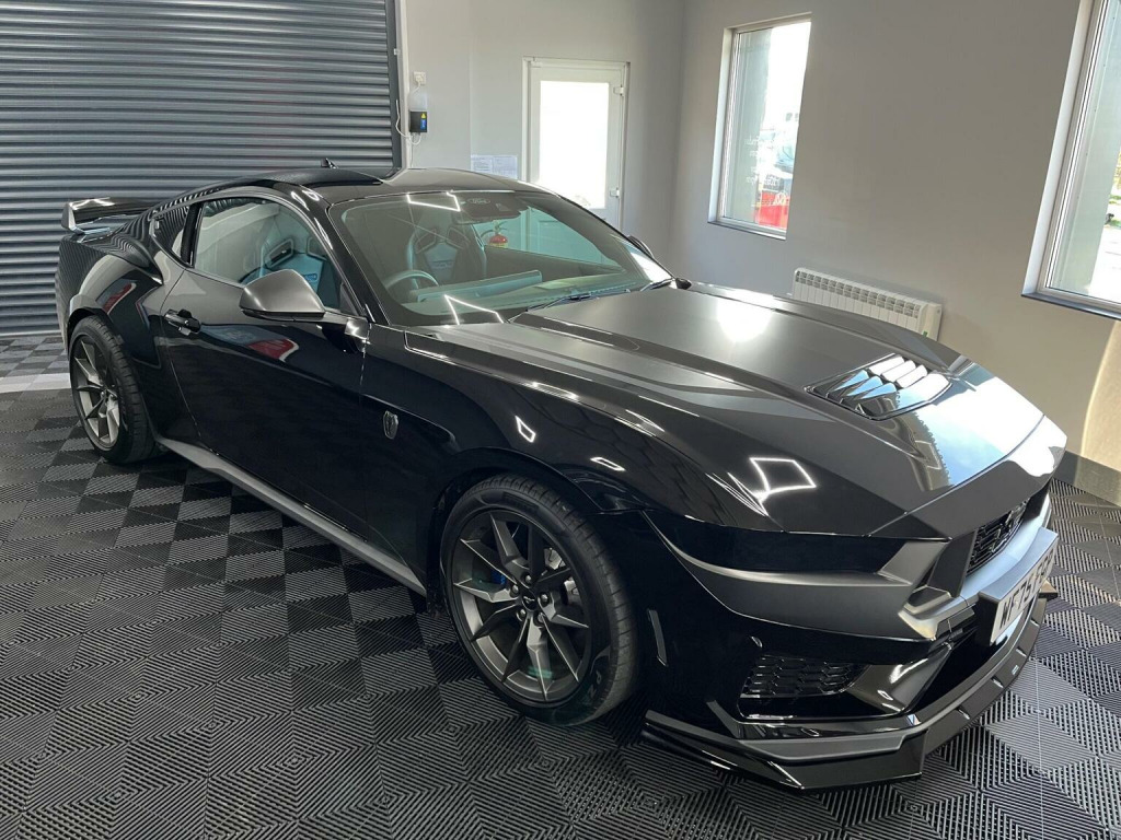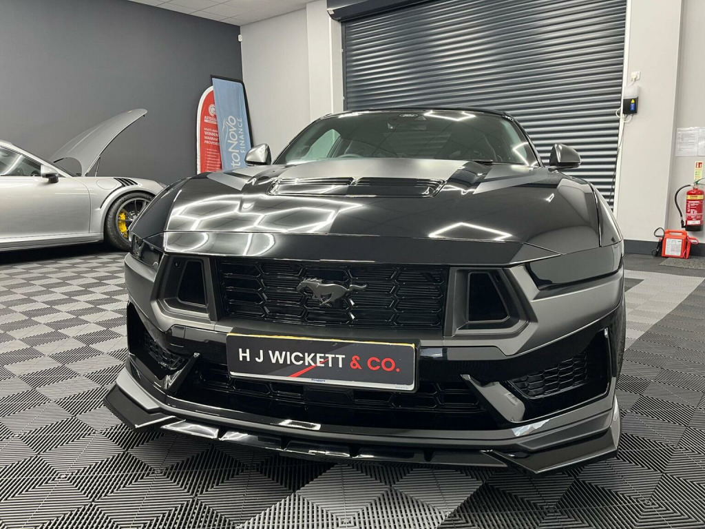 This 2025 Ford Mustang V8 Dark Horse presents an exceptional opportunity with an incredibly low mileage of just 450 miles, making it virtually as new.Fitted with £4k of extras from AMERICA to include rear spoiler front splitter headlight covers upgrade exhaust all fitted by Ford This striking example, finished in the Dark Horse trim, is powered by a potent 5.0L V8 petrol engine, meeting Euro 6 emissions standards. Inside, youll find a premium Cloth Vinyl Recaro interior in Indigo, complemented by the distinctive Dark Horse Appearance Package. Comfort is paramount, with heated, ventilated, and cooled front seats, alongside adaptive cruise control for effortless journeys. Practicality is also considered, with convenient wireless charging and a USB charging port. The provenance of this Mustang is further enhanced by it having only one owner from new, a testament to its careful stewardship. Its low insurance group rating is a significant benefit, offering peace of mind and potentially lower running costs. These factors, combined with its barely used condition, clearly set this 2025 Ford Mustang V8 Dark Horse apart from other vehicles of its kind, offering a near factory fresh experience for its next owner.