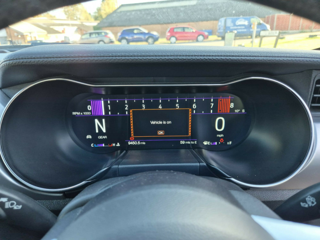 This 2019 Ford Mustang 5.0 V8 GT Fastback 2dr Petrol Manual Euro 6 (450 ps) is a sleek coupe with only 9127 miles on the clock, making it a low-mileage, high-performance vehicle. Its powerful petrol engine is ULEZ compliant and with an MOT that expires on 12/09/2026, it ensures years of enjoyable driving ahead. With 4 seats and 2 doors, it's perfect for those who love the thrill of a sporty ride. The car boasts impressive features such as 19in Alloy Wheels, Active Exhaust System with Quad Tailpipes, and Mustang Puddle Lights. The sleek black exterior with the 5.0 Exterior Badge on Front Wings makes a bold statement on the road. This Mustang also includes Black Moulded Beltline and Door Line Ornamentation, as well as Body Colour Power Heated Foldable Door Mirrors, ensuring both style and practicality. With its combination of power, style, and modern features, this Ford Mustang is sure to turn heads and provide an exhilarating driving experience for any car enthusiast., in alloy wheels - multi spoke - black, 5.0 exterior badge on front wings, active exhaust system with quad tailpipes, black moulded beltline and door line ornamentation, door mirrors - body colour - power - heated - foldable - mustang puddle lights - indicators, gt exterior badge on bootlid, gt front grille featuring vertical power bars, hood scoop vents, locking wheel nuts, lower grille - aerolip spoiler gt design, scuff plates - illuminated, tyre mobility kit, windows - power front windows with global opening, 6-way power adjustable front seats - driver, air conditioning - dual zone electronic automatic temperature control, automatic dimming rear view mirror, courtesy lights - ambient lighting - map-reading lights - illuminated entry - courtesy delay - theatre-style dimming, cup holders - front x2, door trim - premium vinyl detail, electric rear window demister, floor mats - carpet - front, foot pedals - unique metallic design, front seats - sports style, full 12in tft-lcd digital instrument cluster, gearshift knob - leather-trimmed, handbrake grip - leather-trimmed, heated steering wheel, instrument panel - dark aluminium theme, mini overhead console, mycolour ambient interior lighting, mykey, reach and rake adjustable leather steering wheel with integrated controls, rear seats - split folding, sunvisors - illumination of driver and passenger, windscreen wipers - automatic, abs - anti-lock braking system, airbags, autonomous emergency braking, eba - emergency brake assist, electronic stability control with three settings - includes electronic brakeforce distribution - traction control system, ford easy-fuel capless refuelling system, ford keyfree system - keyless entry with ford power starter button, hill start assist, locks - remote central with double locking, rear seats - isofix fittings, thatcham category 1 alarm, adaptive cruise control, epas - electric power assisted steering, electronic line lock - track use only, fully independent front and rear suspension, lane departure warning with lane keeping aid, launch control, limited slip differential - lsd, performance brake system featuring brembo 6-piston front callipers and electronic brake prefill, pre-collision assist, rear view camera with rear parking sensors, selectable driving modes - normal - mymode - snow-wet - sport plus - track - drag mode, track apps - accelerometer technology - track use only, tyre pressure monitoring system, apple carplay and android auto compatibility, fordpass connect embedded modem, sync 3 8in tft touchscreen with dab radio - emergency assistance - apply carplay - android auto - usb connectivity - 9 speakers, led fog lights - front, led headlights with integrated daytime running lights - automatic activation - high beams - levelling, rear lights - led
