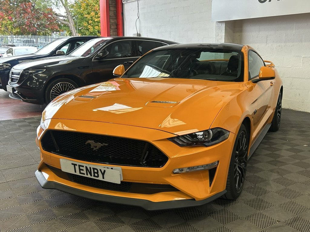 FORD MUSTANG 5.0 V8 GT Fastback 2dr Petrol SelShift Euro 6 (450 ps); COMES WITH: -SHAKER AUDIO SYSTEM -REVERSE CAMERA -APPLE CARPLAY -AMBIENT LIGHTS -LANE ASSIST -19 INCH ALLOYS -FRONT HEATED AND COOLED SEATS -LEATHER SEATS -DRIVE MODES -BLUETOOTH -DAB RADIO -SATELLITE NAVIGATION -DUAL ZONE CLIMATE CONTROL -ELECTRIC WINDOWS -LEATHER STEERING WHEEL WITH COMMANDS -AUTO LIGHTS -START/STOP DISCLAIMER: THE MILEAGE OF THE CAR MIGHT INCREASE SLIGHTLY DUE TO TEST DRIVES We have completed a DVSA database check to establish whether any manufacturers' recall is pending on this vehicle. If a recall has been identified it is referred to in the vehicle description and we will use our best endeavours to ensure that the recall is completed before the time of sale. If there is no reference to a manufacturers' recall, it is based on the information supplied by the DVSA at the time of the check but customers are reminded that the DVSA database is only an indicative check and cannot be relied upon as wholly accurate. Customers are encouraged to independently verify the information before proceeding. Any recall detailed will in any event be dealt with by the manufacturer / manufacturers dealer free of charge. Black Contrast Roof, Orange Fury, 12in Digital LCD Instrument Cluster, 19in Alloy Wheels - Multi Spoke - Black, 5.0 Exterior Badge on Front Wings, 6-Way Power Adjustable Front Seats - Dri, ABS - Anti-lock Braking System, Active Exhaust System with Quad Tailpipe, Adaptive Cruise Control, Air Conditioning - Dual Zone Electronic , Airbags, Apple Carplay and Android Auto Compatibi, Auto Headlamps - Rain-Sensing Wipers and, Autonomous Emergency Braking, Black Moulded Beltline and Door Line Orn, Cup Holders - Front x2, Door Trim - Premium Vinyl Detail, EBA - Emergency Brake Assist, EPAS - Electric Power Assisted Steering, Electric Rear Window Demister, Electronic Line Lock - Track Use Only, Electr