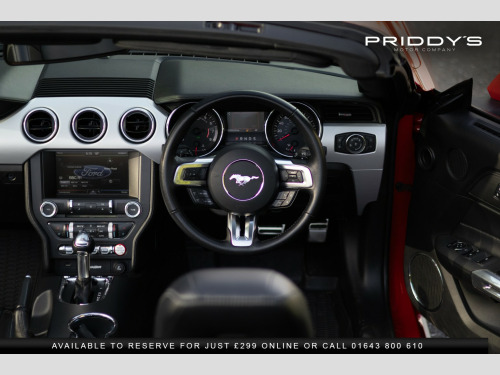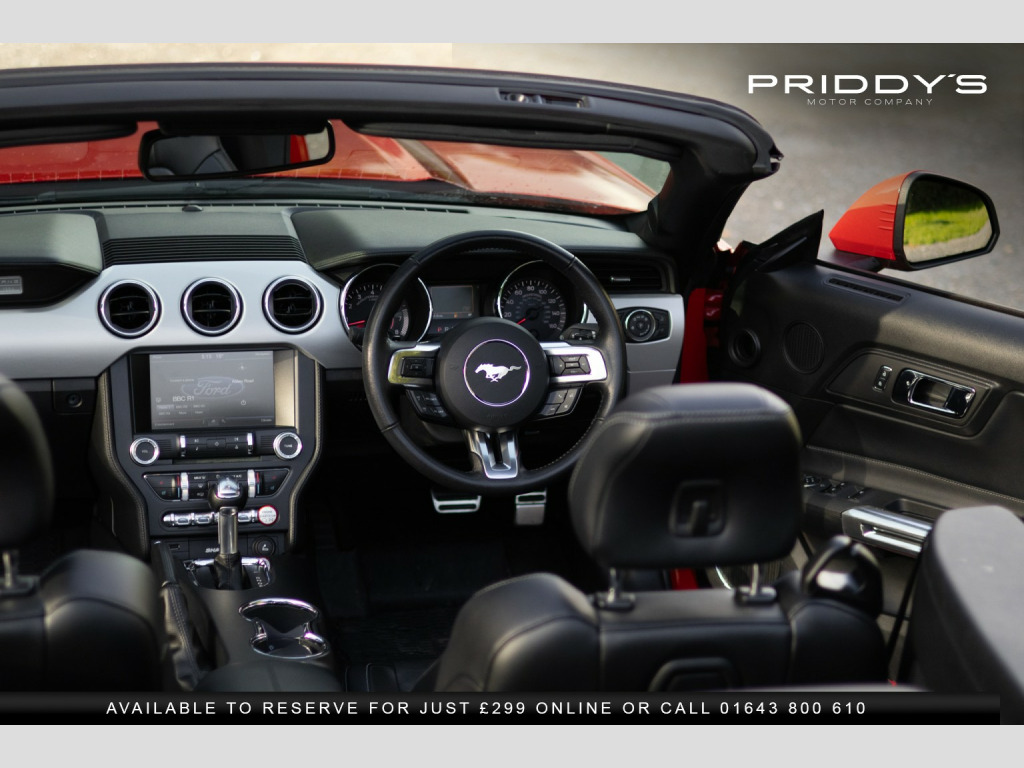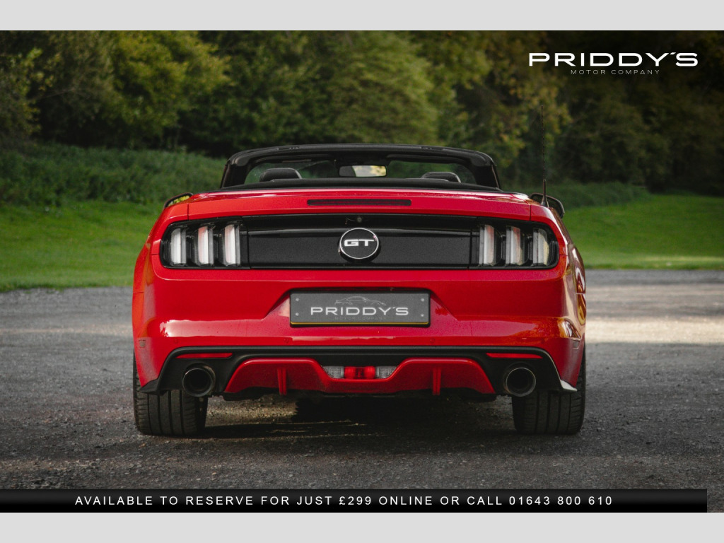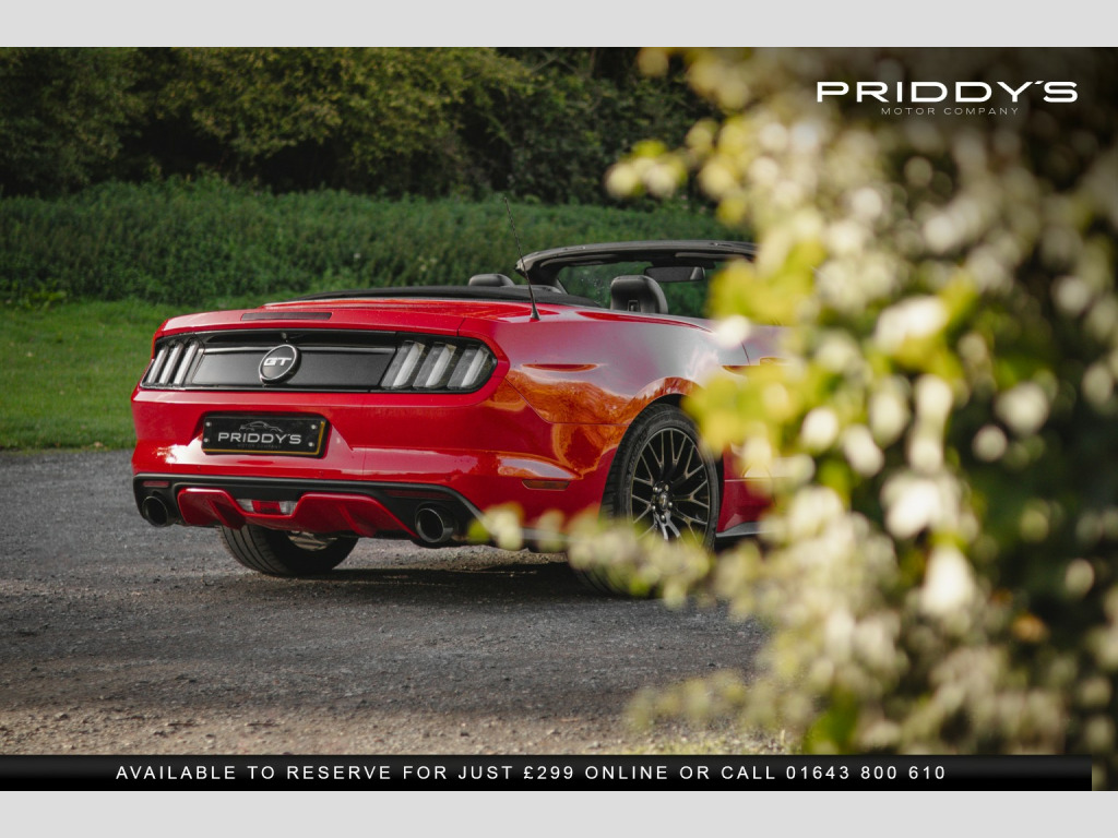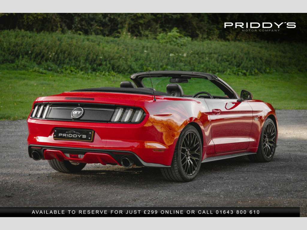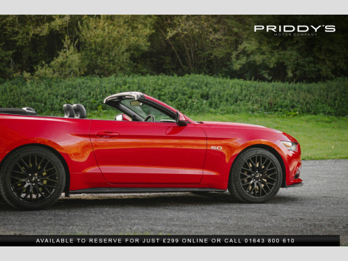 Priddys Motor Company are delighted to offer this 2016 Ford Mustang 5.0 V8 GT Convertible SelShift on only 23,552 miles, complete with an 8-stamp service portfolio. , Few cars stir the soul quite like a Mustang, and this one, finished in Race Red, is every inch the American icon. With its naturally aspirated 5.0-litre V8 producing 416 bhp and paired with a magna-flow exhaust system, it blends raw muscle with a refined convertible driving experience. The soundtrack is unmistakable, the power delivery addictive, and with selectable drive modes—Normal, Sport+, Track, and Snow/Wet—you can tailor the car to suit mood or conditions. , The exterior is striking yet elegant, its bold lines amplified by the electric convertible roof that drops at the touch of a button, unlocking the full drama of open-air motoring. Inside, youre greeted with a premium black leather cabin, complete with heated and cooled seats for year-round comfort. The cockpit balances retro charm with modern convenience, featuring a touchscreen infotainment system, Bluetooth connectivity, premium audio, and keyless entry with push-button start. , This particular Mustang has been exceptionally well maintained, boasting an 8-stamp service history portfolio and presenting in excellent condition both inside and out. Its a car that not only offers a sense of occasion every time you drive it, but also the reassurance of careful ownership and proper maintenance. , Owning this Mustang is about more than just driving—its about the experience, the presence, and the heritage of an automotive legend that turns every journey into an event. , , , *Why Buy from Priddys Motor Company*, , *Carefully Selected Vehicles*